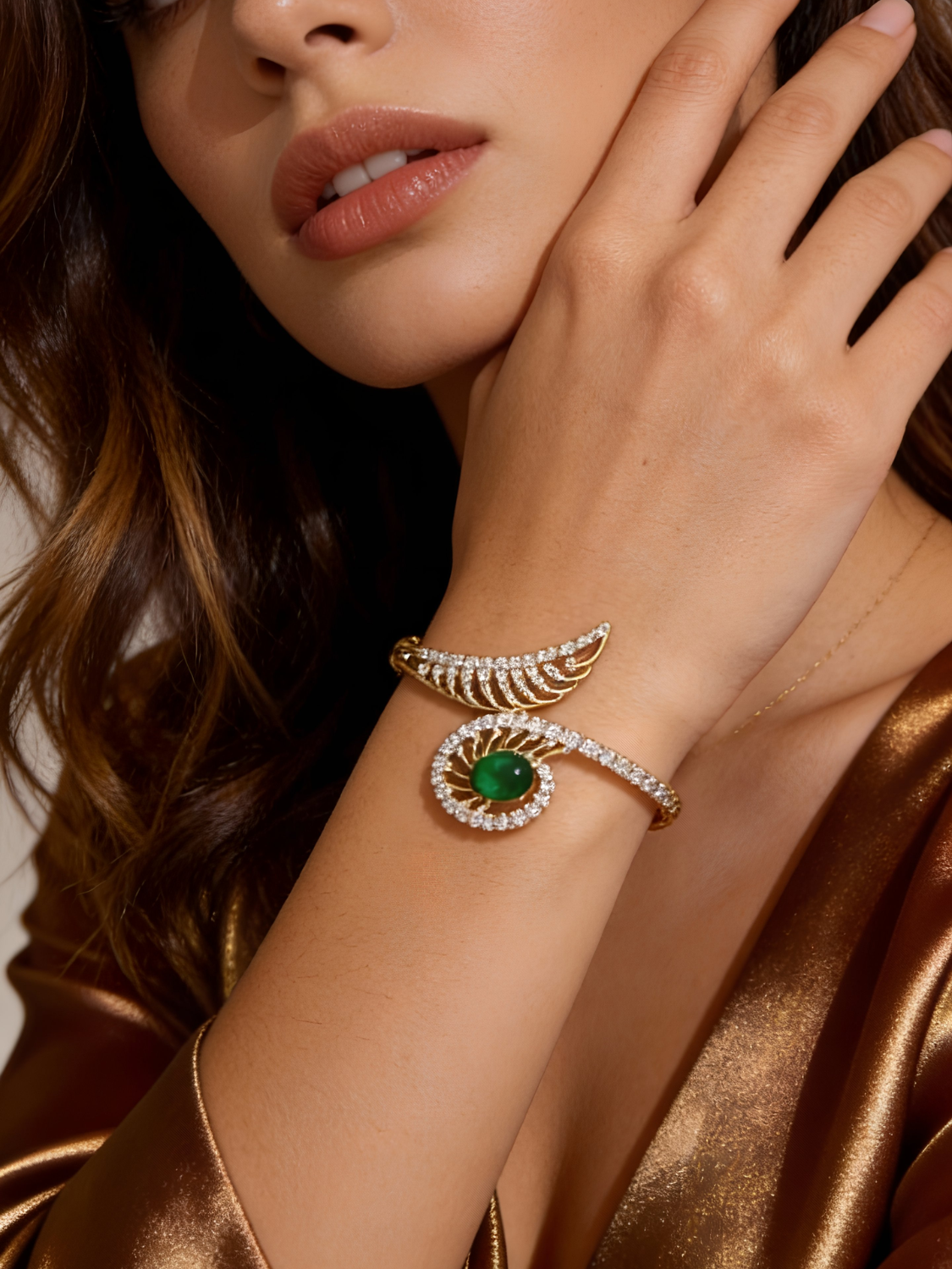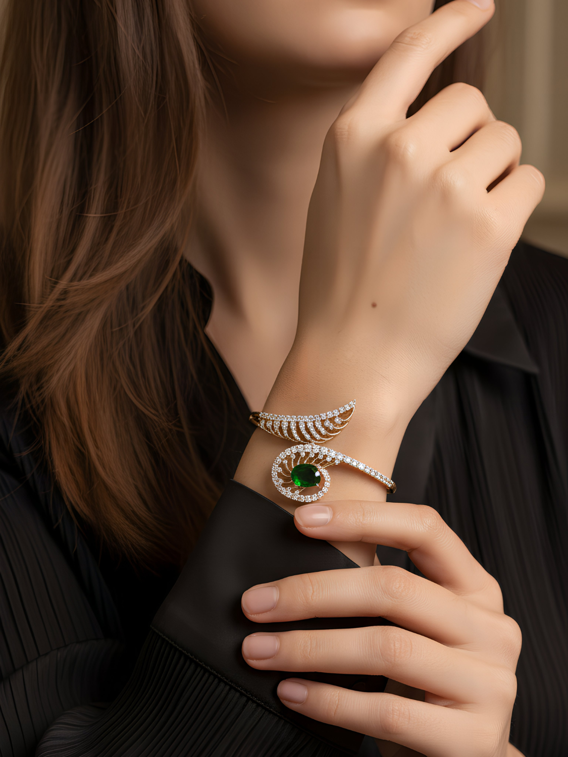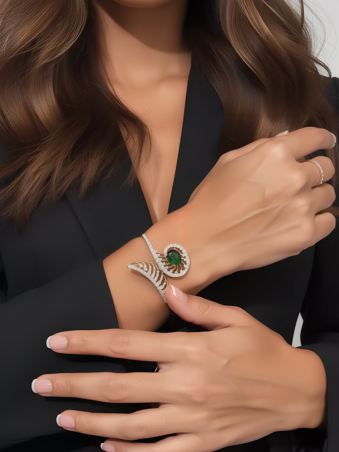 Το βραχιόλι Graceful Bloom προσφέρει μια μοναδική σύνθεση κομψότητας και διαχρονικής ομορφιάς. Κατασκευασμένο από οικολογικό χαλκό σε απόχρωση χρυσού 18Κ, αυτό το κομψό αξεσουάρ διαθέτει έναν κεντρικό λίθο από συνθετική Κυβική Ζιρκόνια (CZ) διαστάσεων 9x7 mm, που αιχμαλωτίζει το φως με κάθε κίνηση. Η λεπτή σχεδίασή του και οι απαλοί κυματισμοί του το καθιστούν ιδανικό για καθημερινή χρήση, αλλά και για ξεχωριστές περιστάσεις. Με βάρος 13,67 γραμμάρια, προσφέρει μια ελαφριά αλλά εντυπωσιακή πινελιά σε κάθε εμφάνιση.