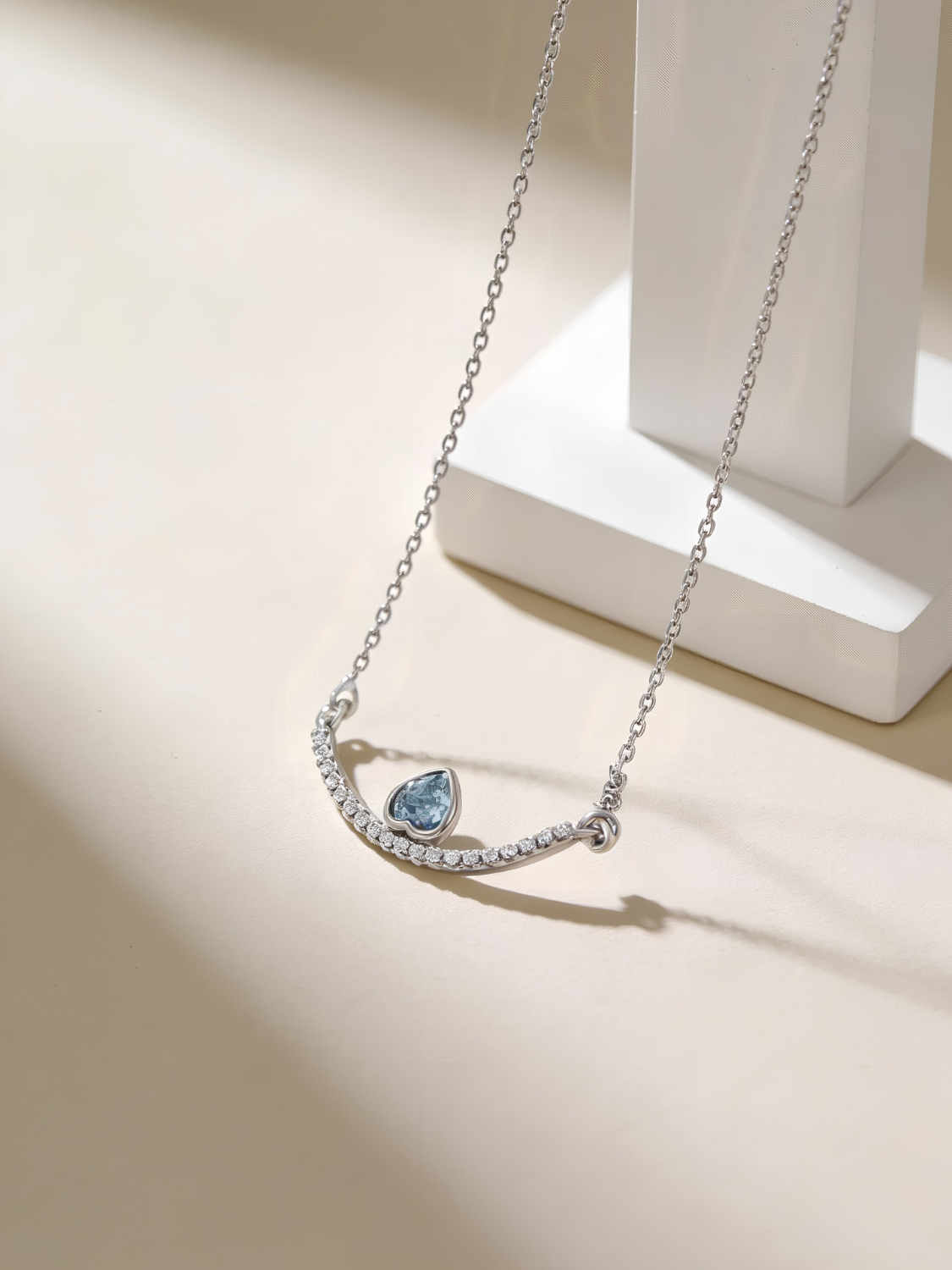 Το Blue Drop είναι ένα κομψό και διαχρονικό κολιέ που αποπνέει φινέτσα και κοριτσιστική χάρη. Διαθέτει ένα εκλεπτυσμένο τόξο με διαφανείς πέτρες ζιρκόν που αγκαλιάζουν μία σταγόνα από μπλε κρύσταλλο σε σχήμα δάκρυ, αποπνέοντας μία αύρα κομψότητα και ρομαντισμό. Ιδανικό για καθημερινές αλλά και βραδινές εμφανίσεις, προσθέτει μια διακριτική λάμψη σε κάθε look. Η επιμετάλλωση πλατίνας αναδεικνύει ακόμη περισσότερο την καθαρότητα των λίθων.