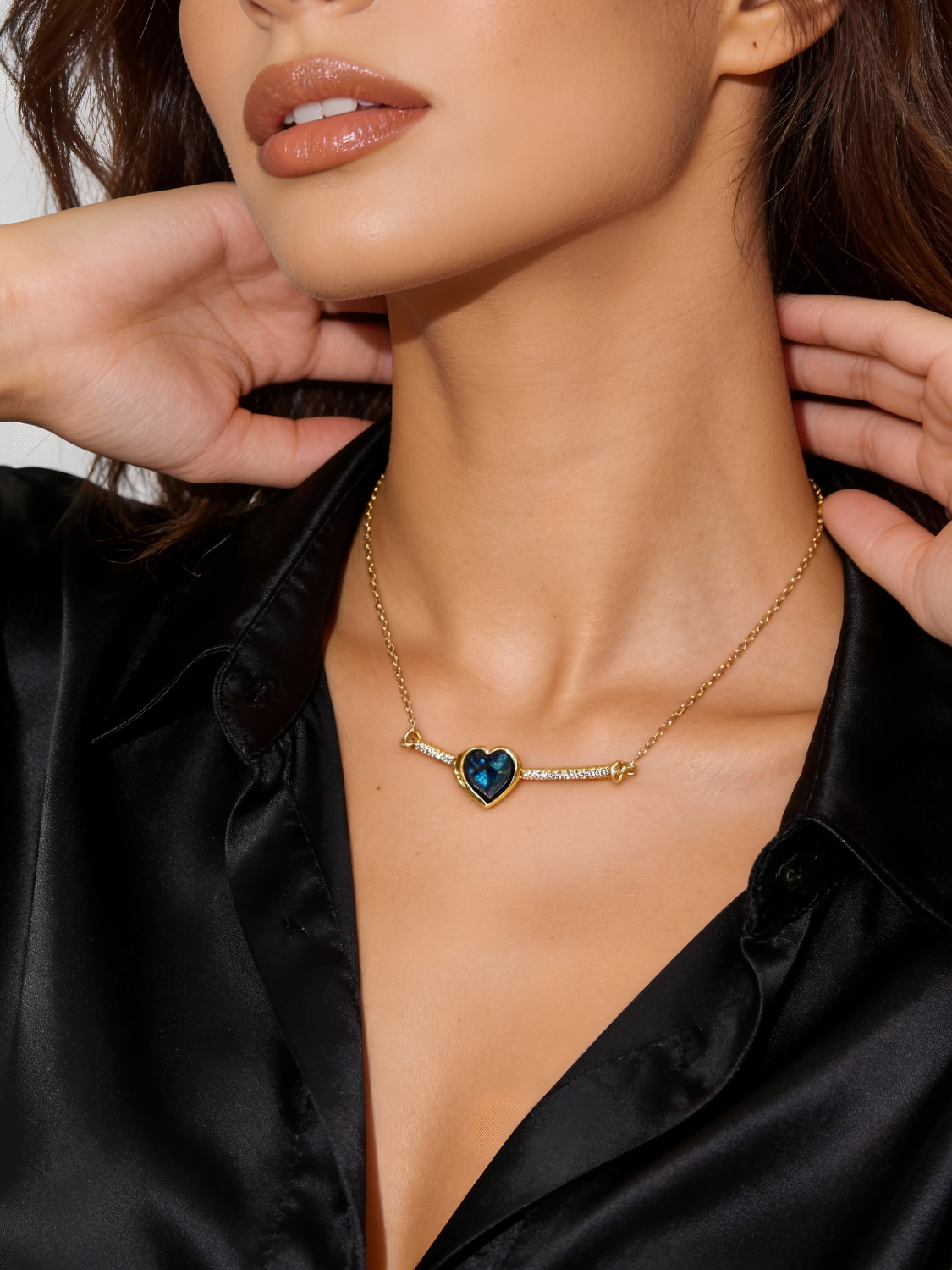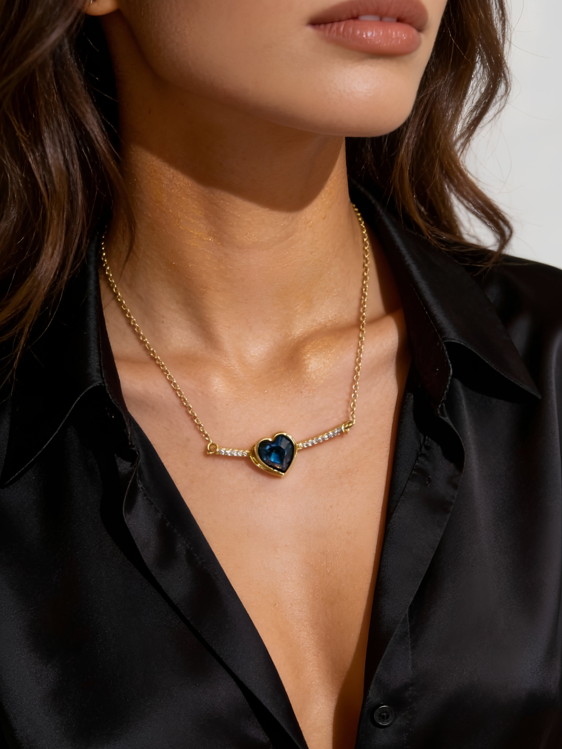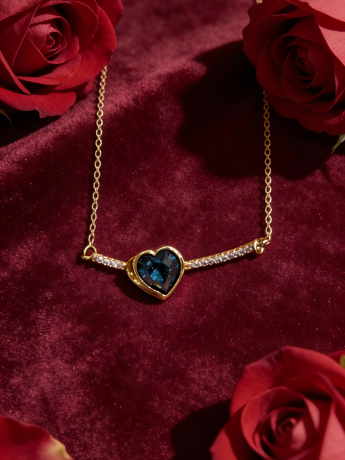 Το Midnight Heart είναι ένα ρομαντικό και εκλεπτυσμένο κολιέ που αιχμαλωτίζει την καρδιά με την πρώτη ματιά. Το εντυπωσιακό μπλε κρυστάλλινο σε σχήμα καρδιάς στοιχείο αγκαλιάζεται από λεπτή επίχρυση αλυσίδα και διακριτικά ζιρκόν κατά μήκος της καμπυλωτής βάσης, προσδίδοντας λάμψη και κομψότητα. Ιδανικό για ιδιαίτερες περιστάσεις, δώρα αγάπης ή για να προσθέσεις μία πολυτελή πινελιά σε κάθε εμφάνιση.