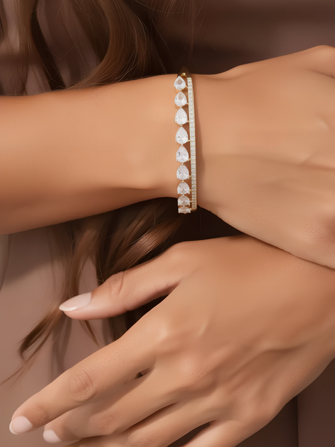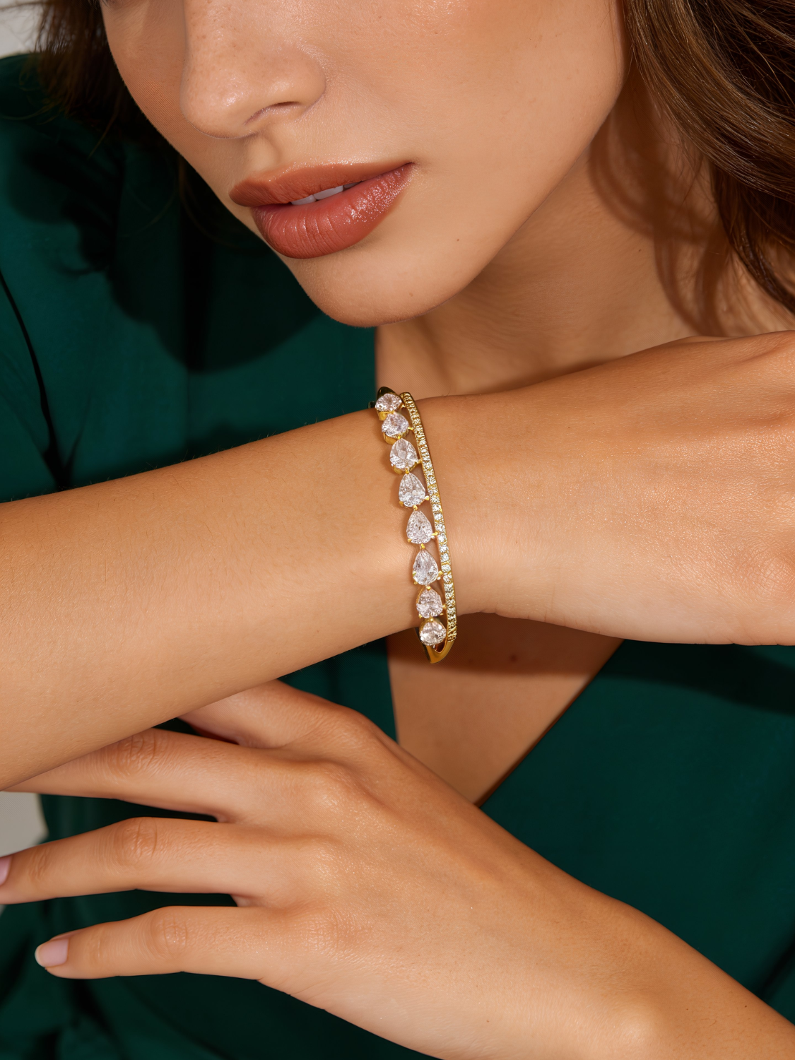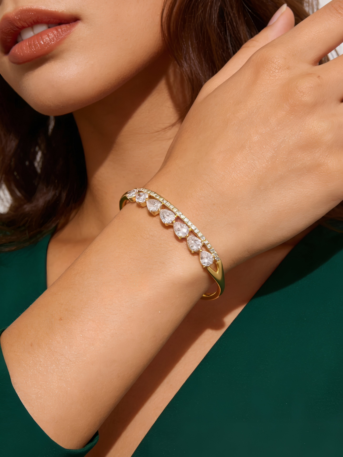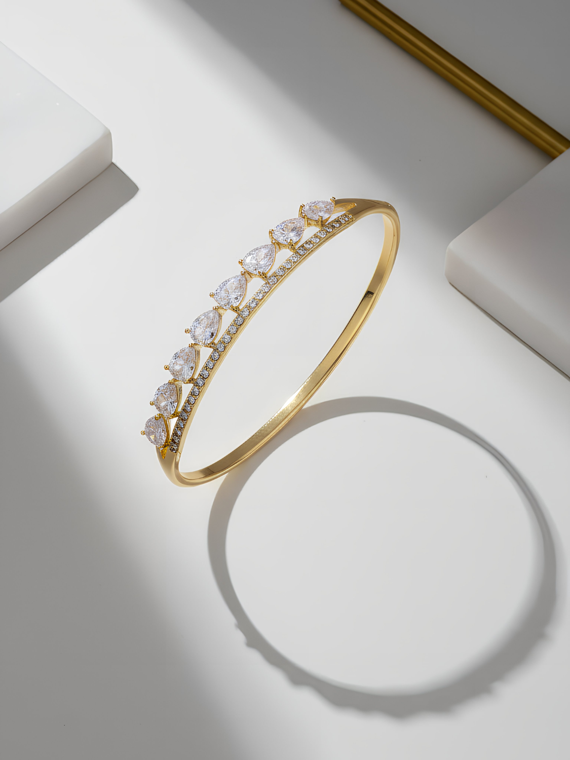 Γυναικείο Χρυσό Βραχιόλι με Λευκές Πέτρες σε Σχέδιο Δάκρυ