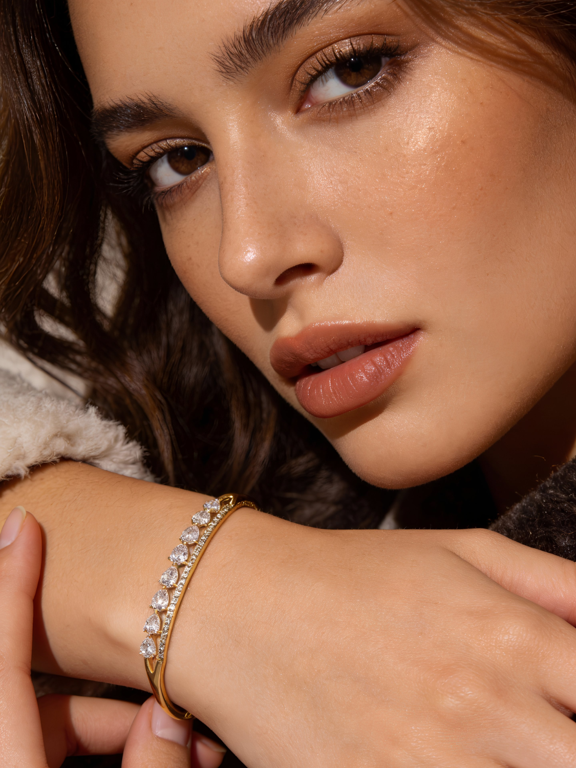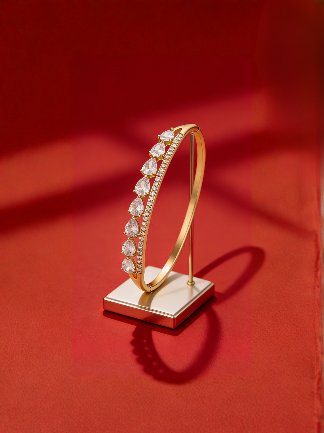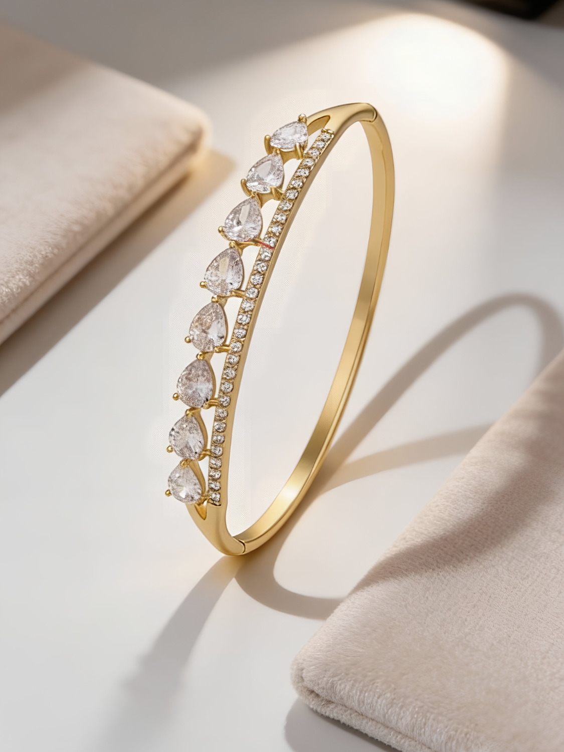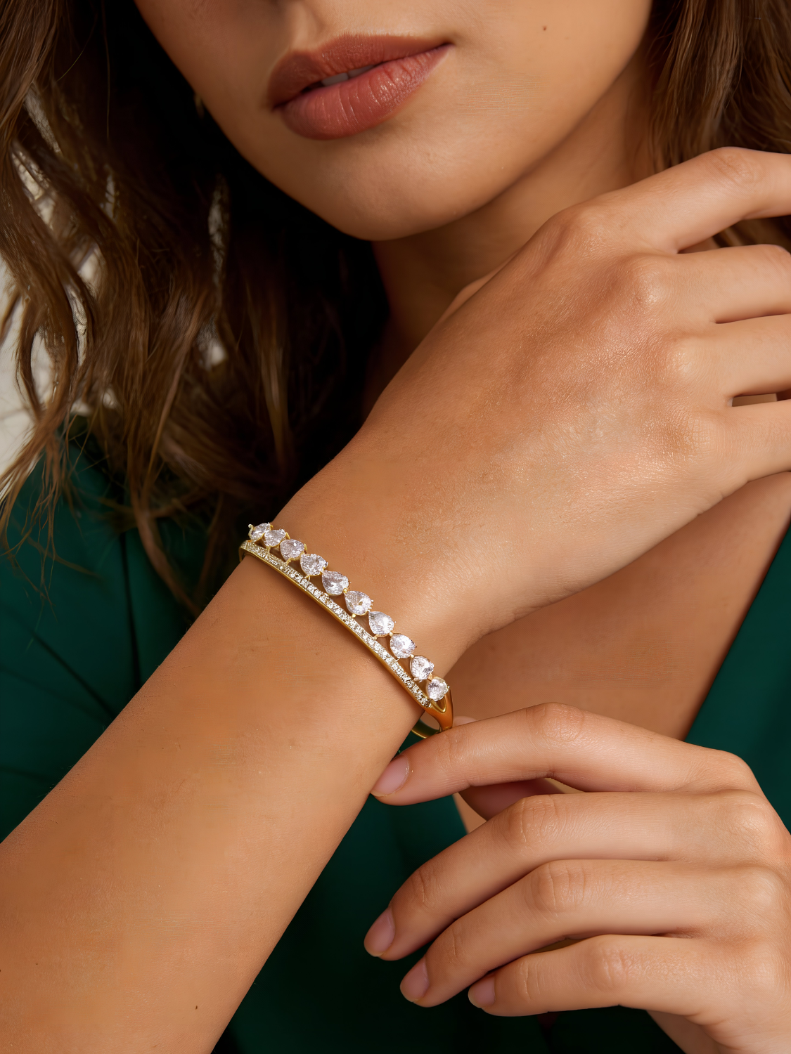 Γυναικείο Χρυσό Βραχιόλι με Λευκές Πέτρες σε Σχέδιο Δάκρυ