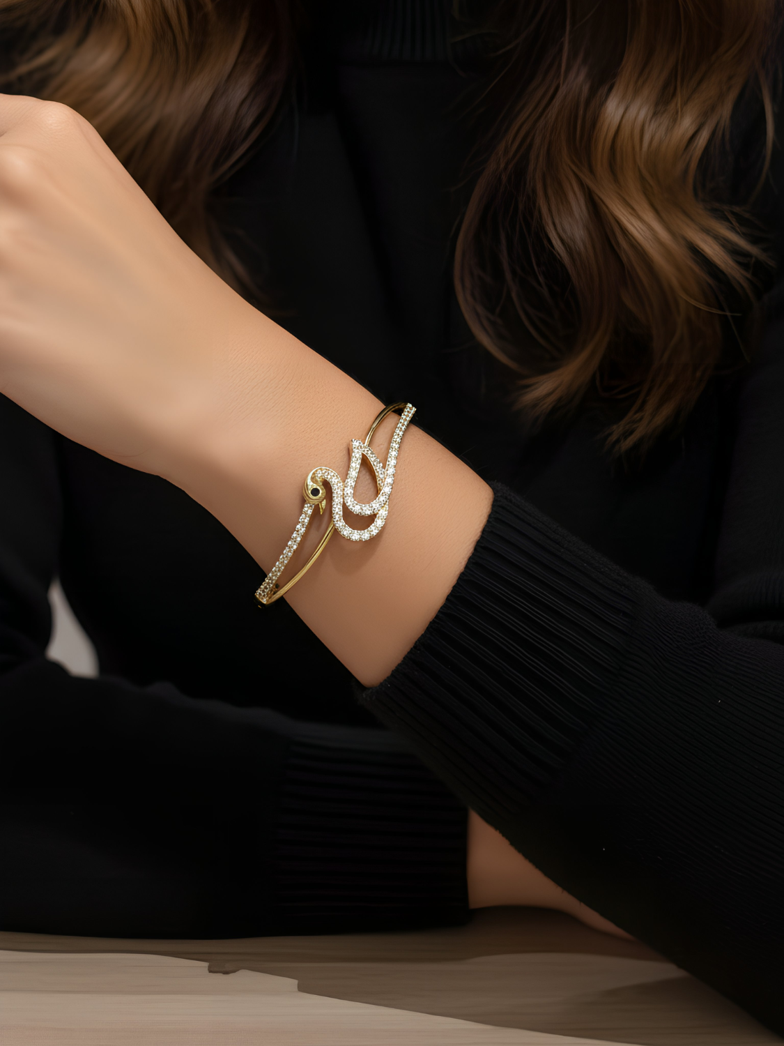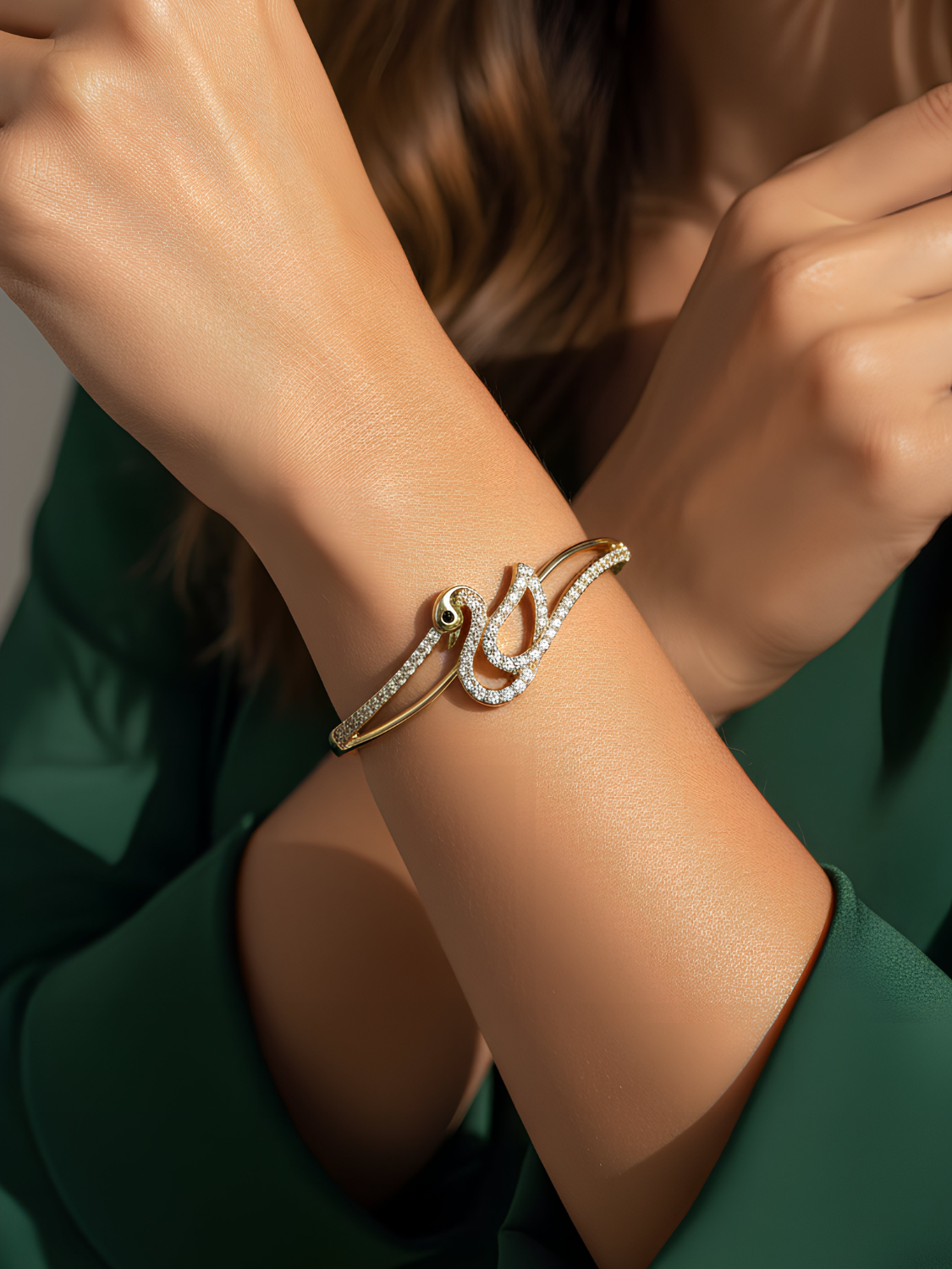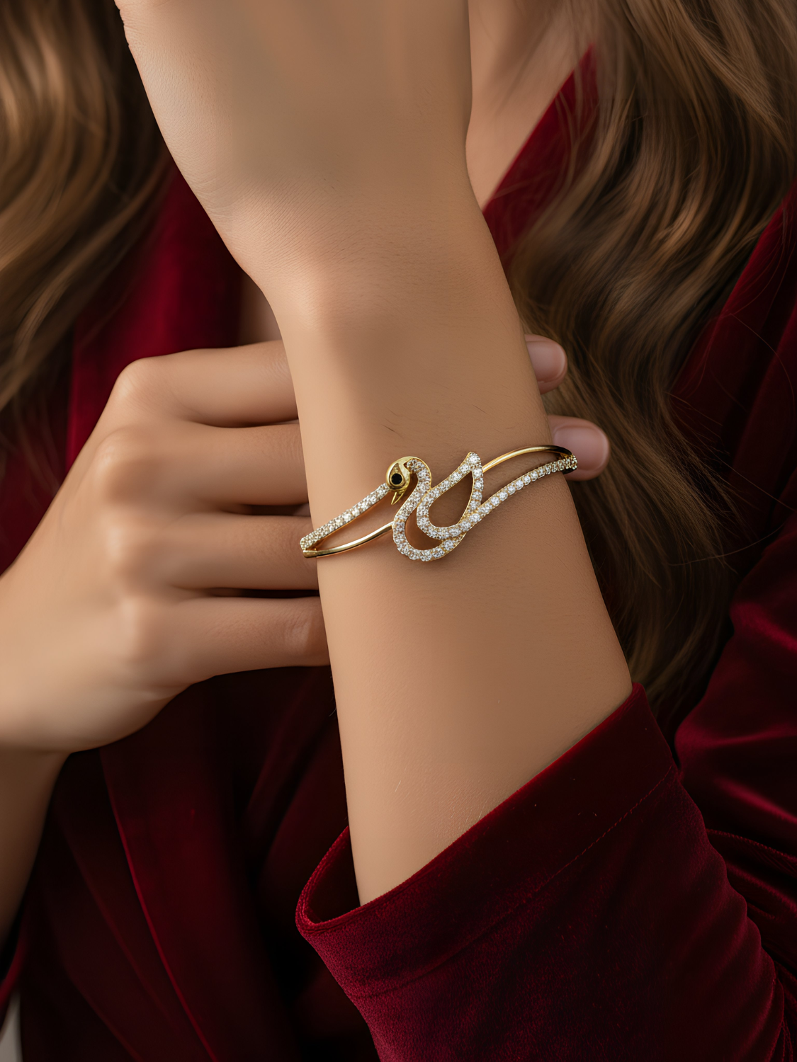 Γυναικείο Χρυσό Βραχιόλι με Σχέδιο και Ζιργκόν για Λαμπερές Εμφανίσεις