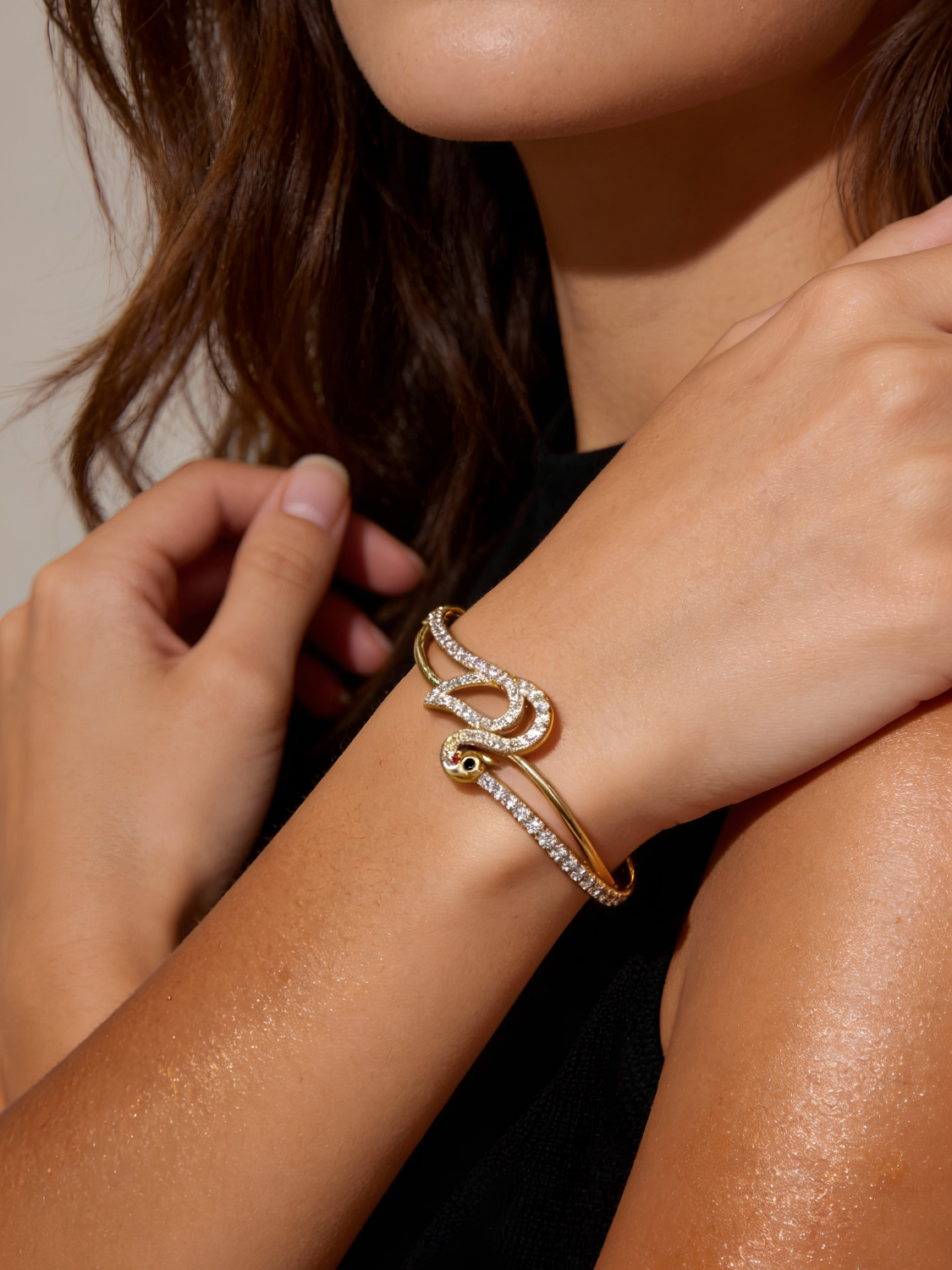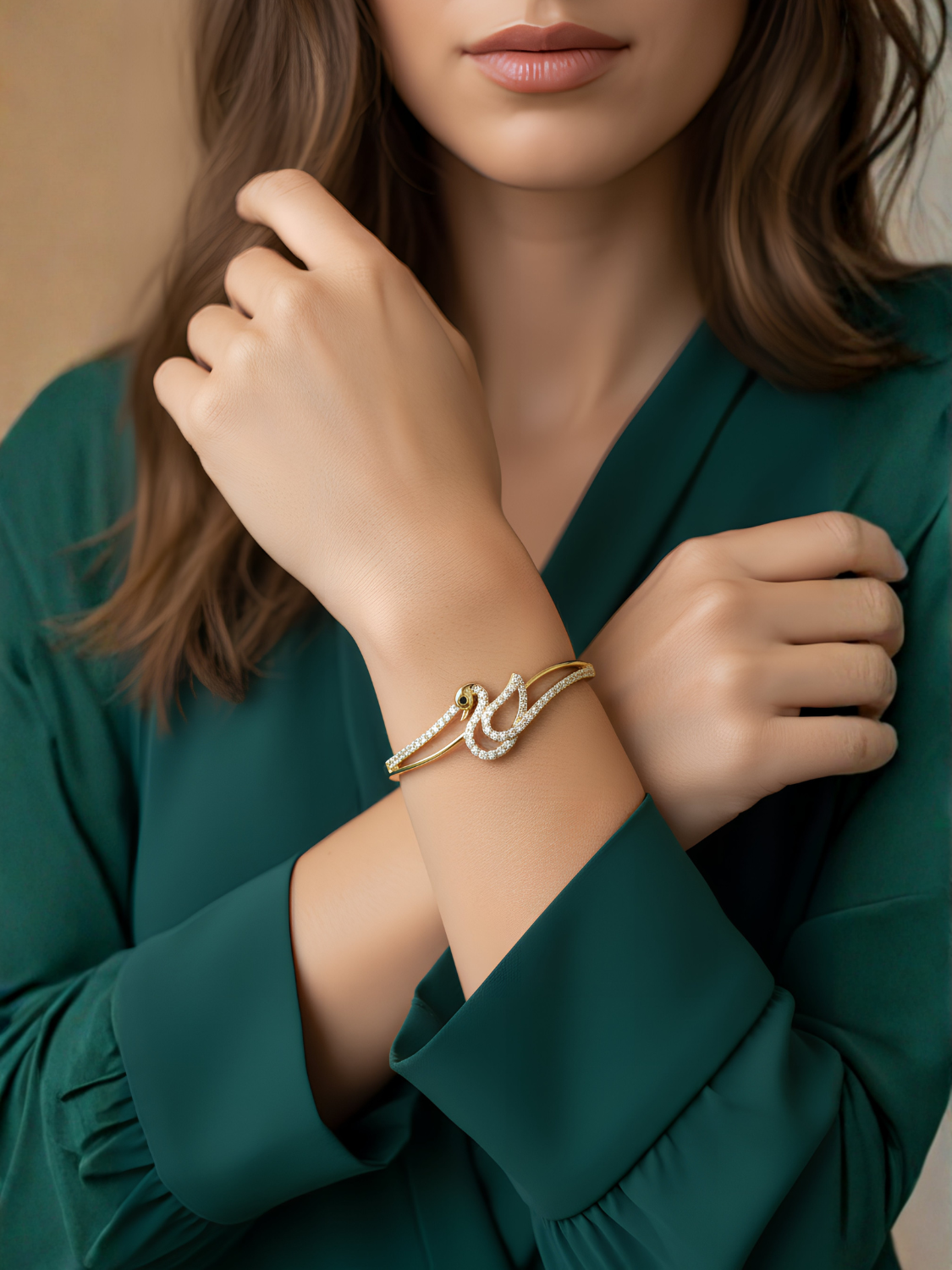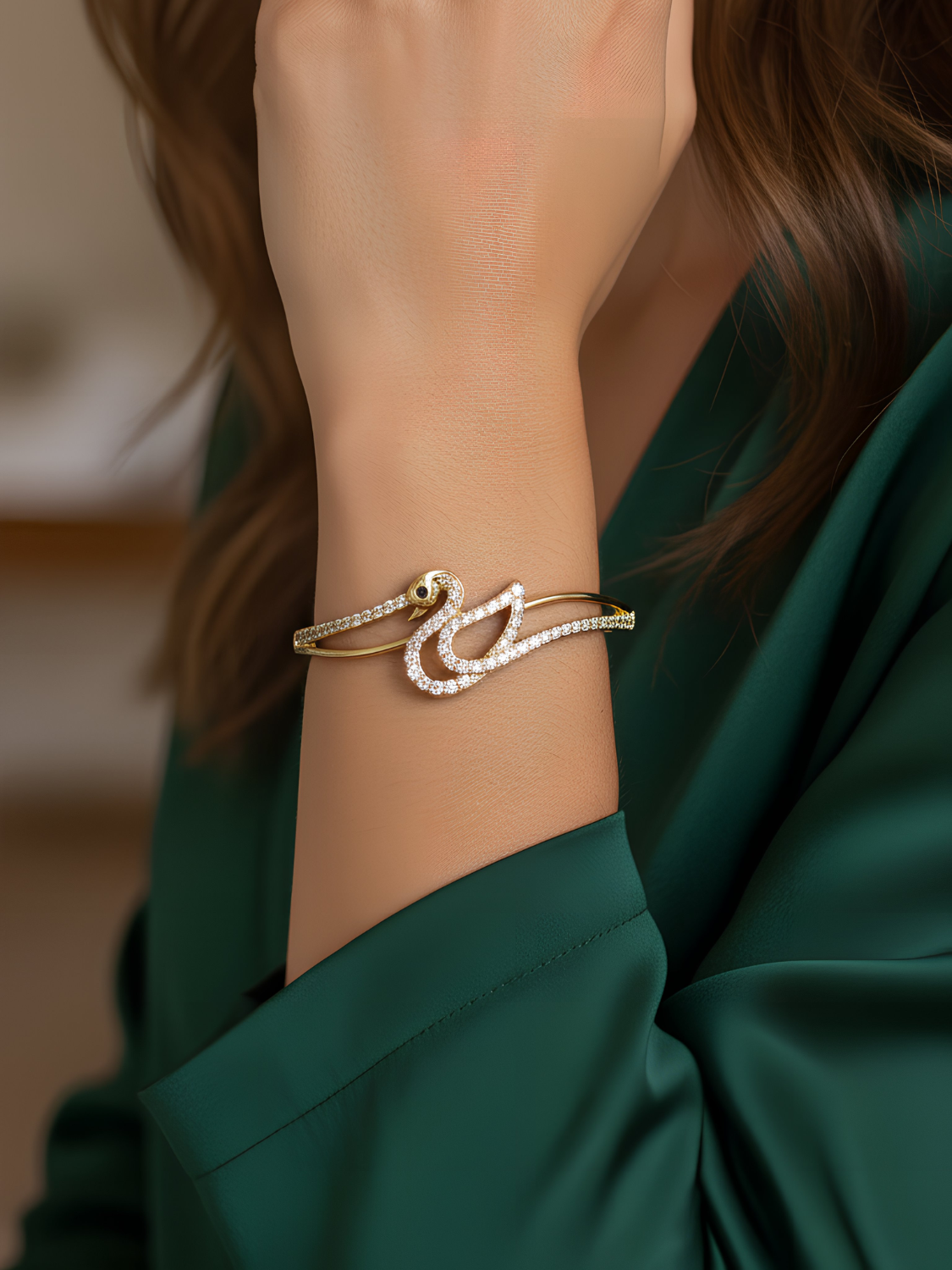 Γυναικείο Χρυσό Βραχιόλι με Σχέδιο και Ζιργκόν για Λαμπερές Εμφανίσεις