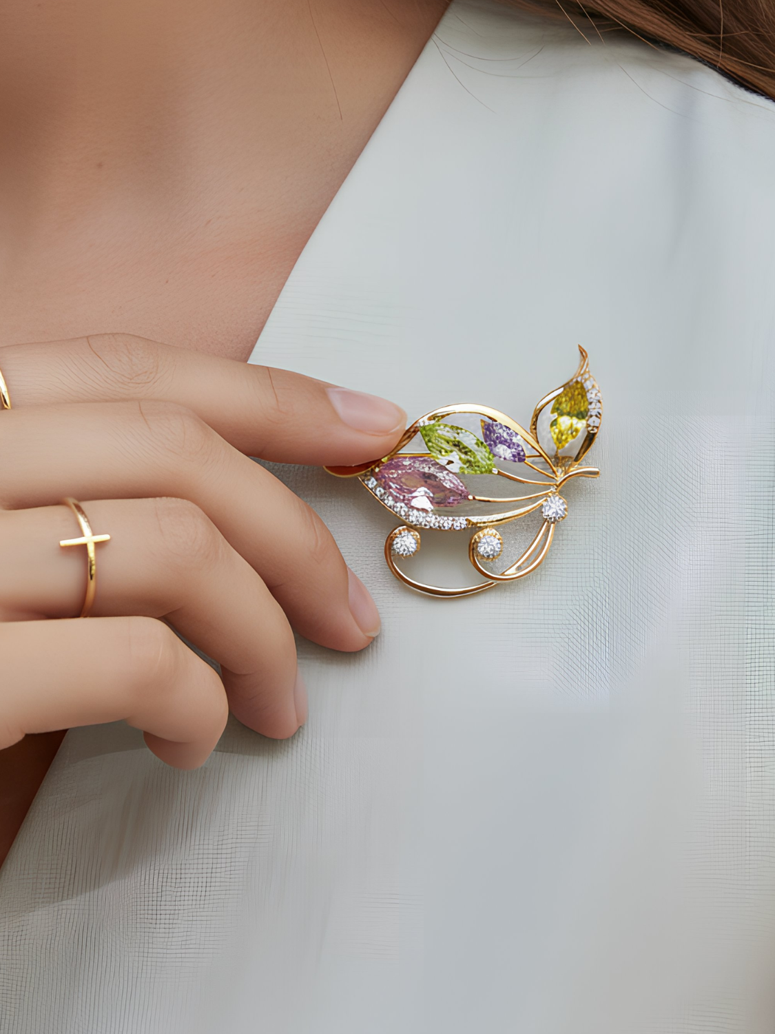 Γυναικεία καρφίτσα πεταλούδα με πολύχρωμα ζιρκόνια