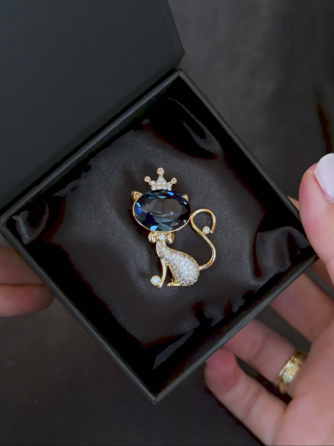 Γυναικεία καρφίτσα γάτας με μπλε κρύσταλλο