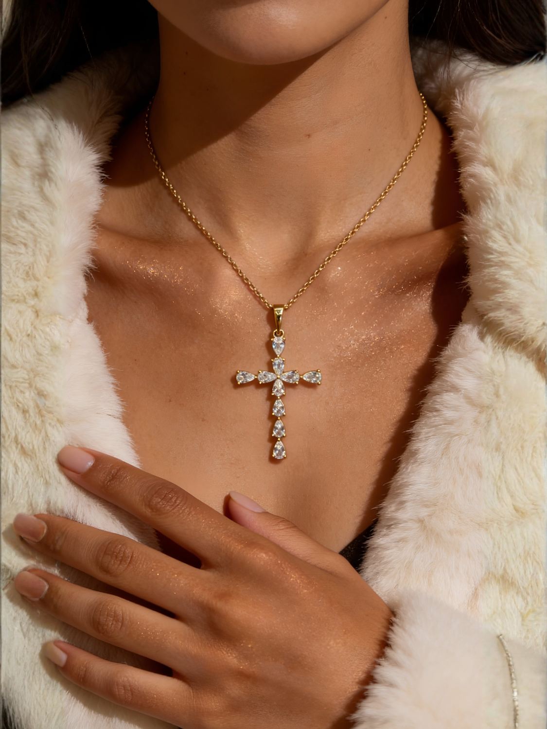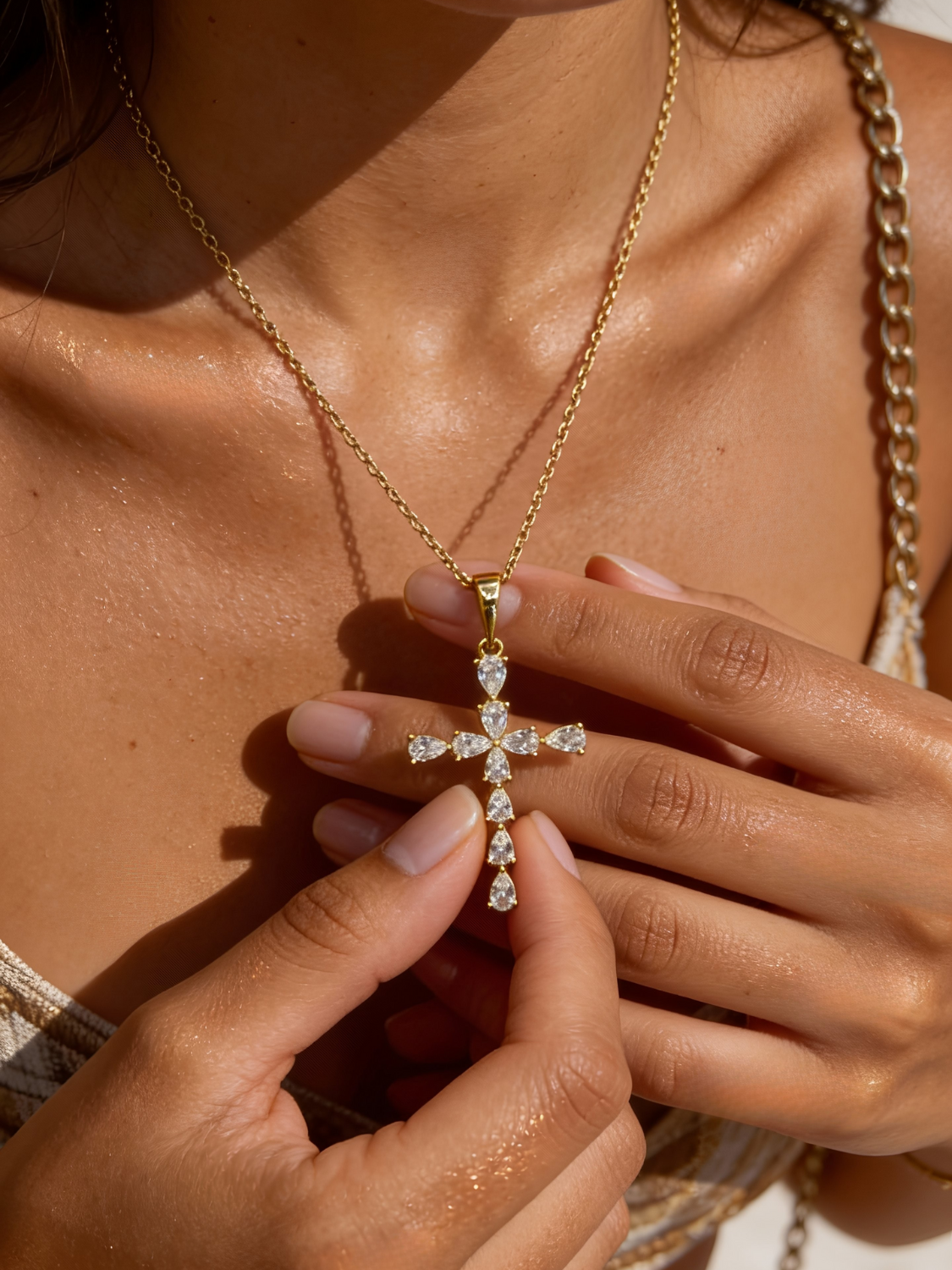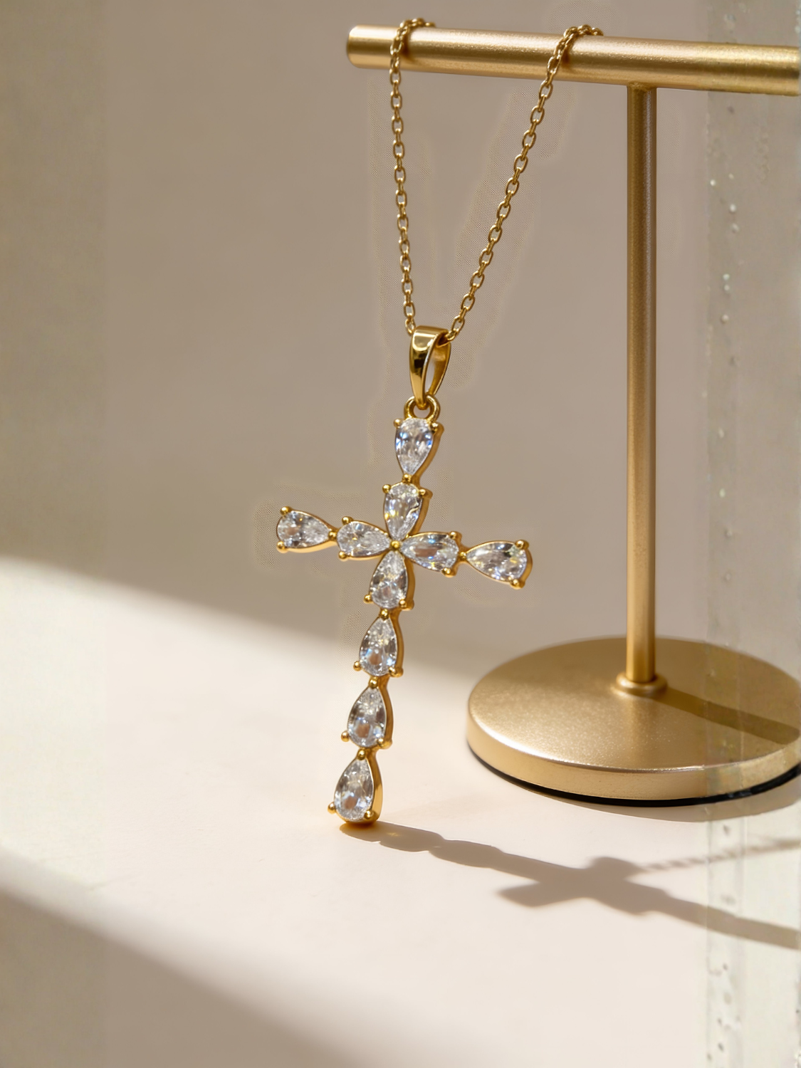 Γυναικείος Χρυσός Σταυρός με Λαμπερά Ζιργκόν