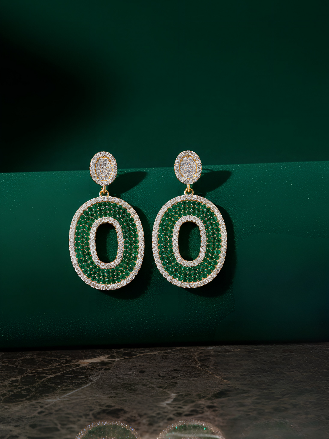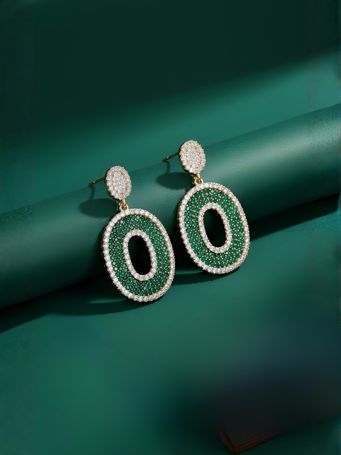 Γυναικεία οβάλ σκουλαρίκια με πράσινα και λευκά ζιργκόν