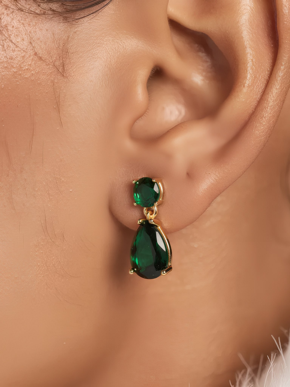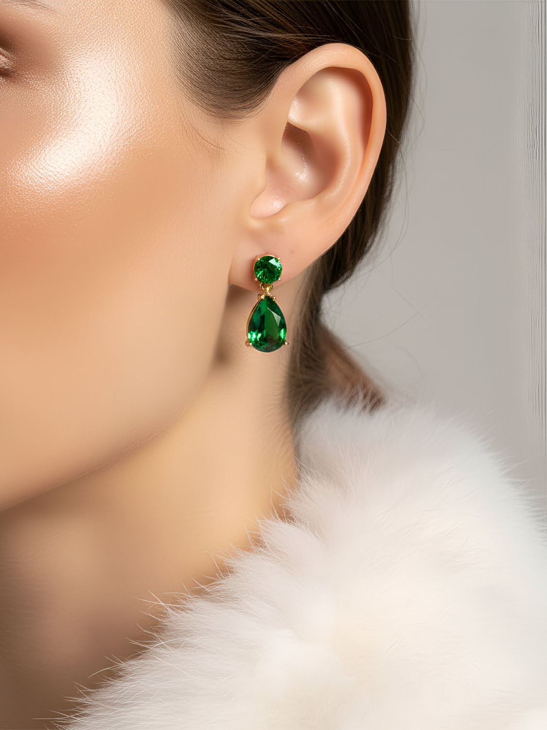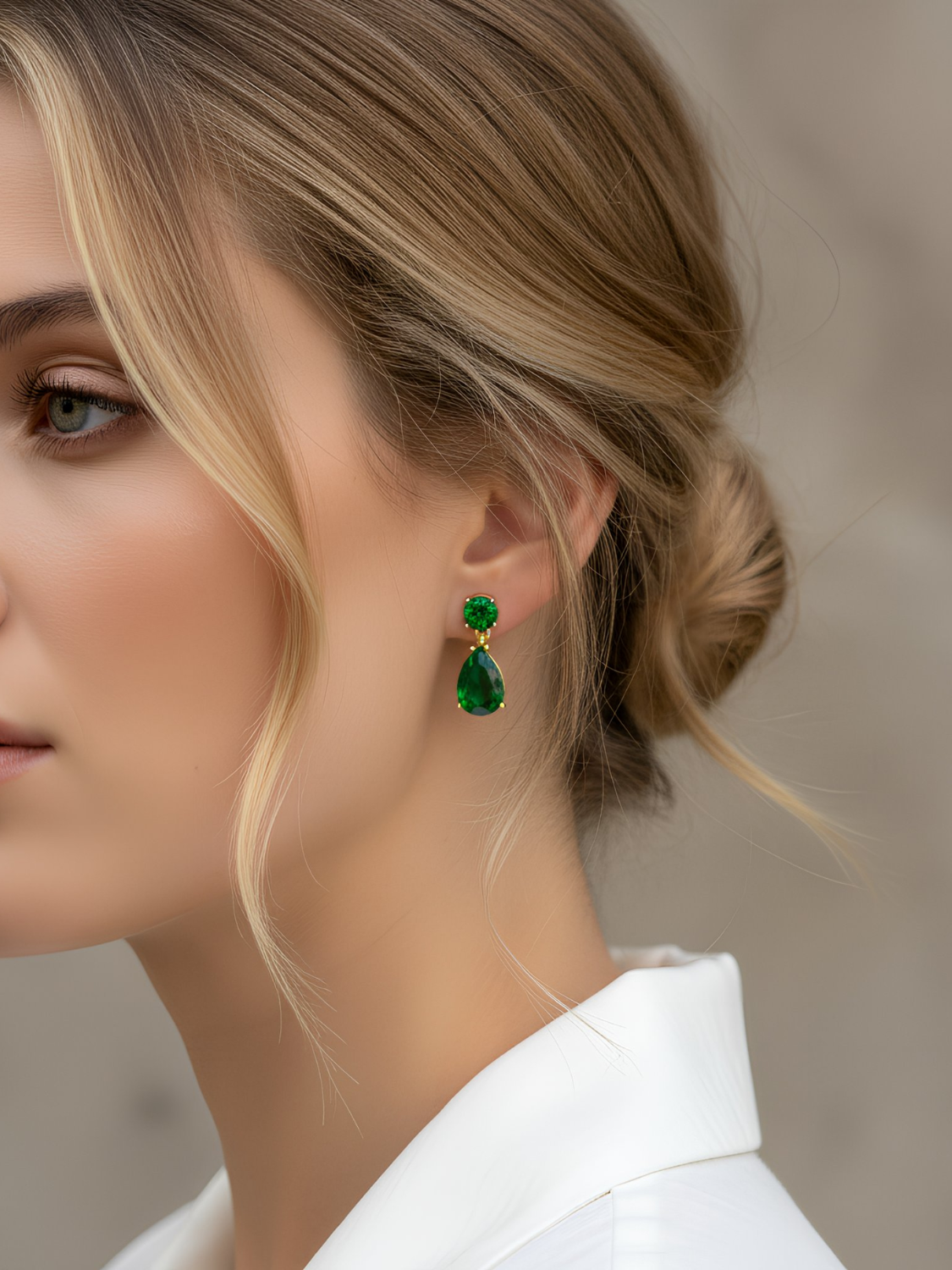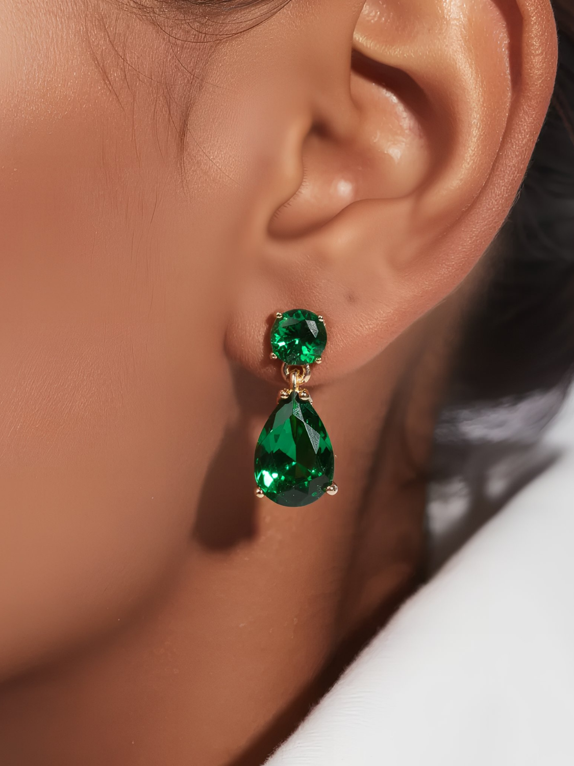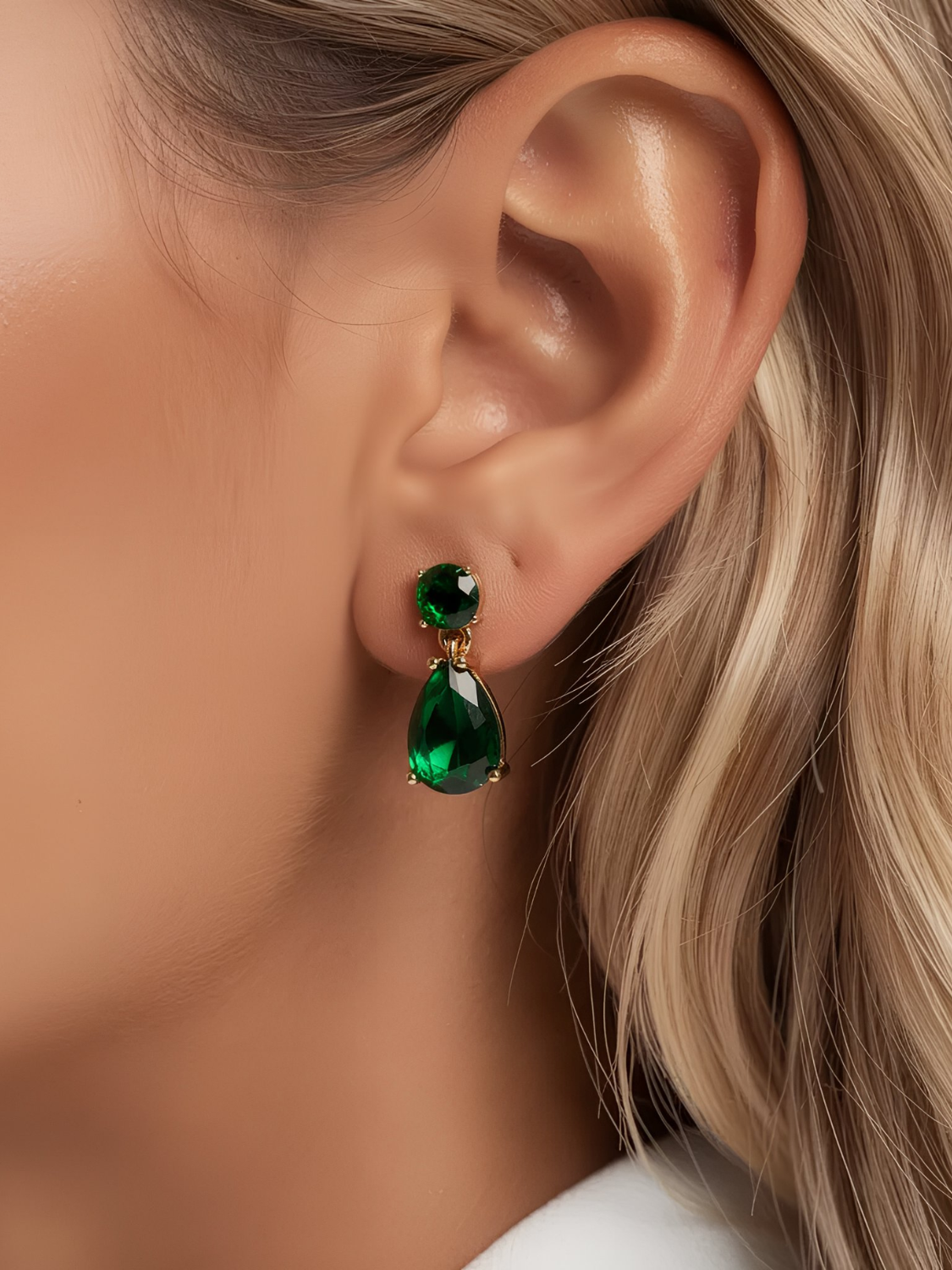 Γυναικεία πράσινα σκουλαρίκια σε σχήμα δάκρυ, με χρυσό φινίρισμα για κομψές εμφανίσεις