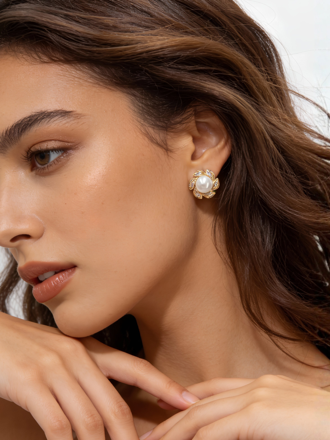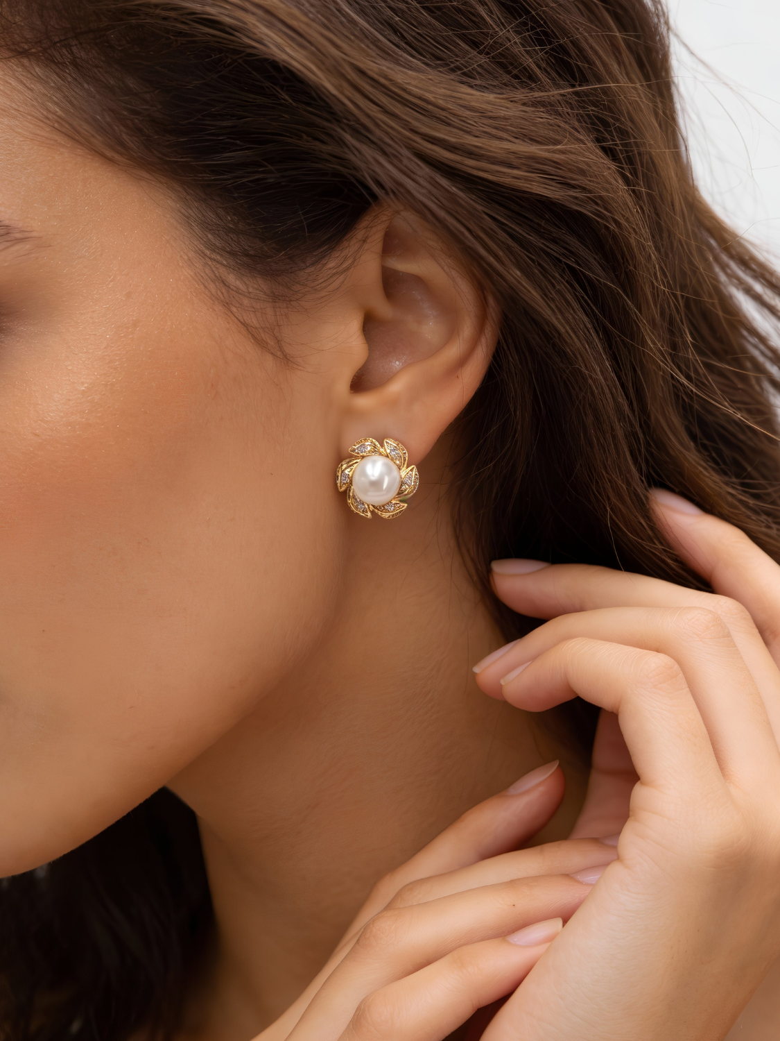 Γυναικεία Σκουλαρίκια με Χάντρες και Λουλουδάτο Σχέδιο