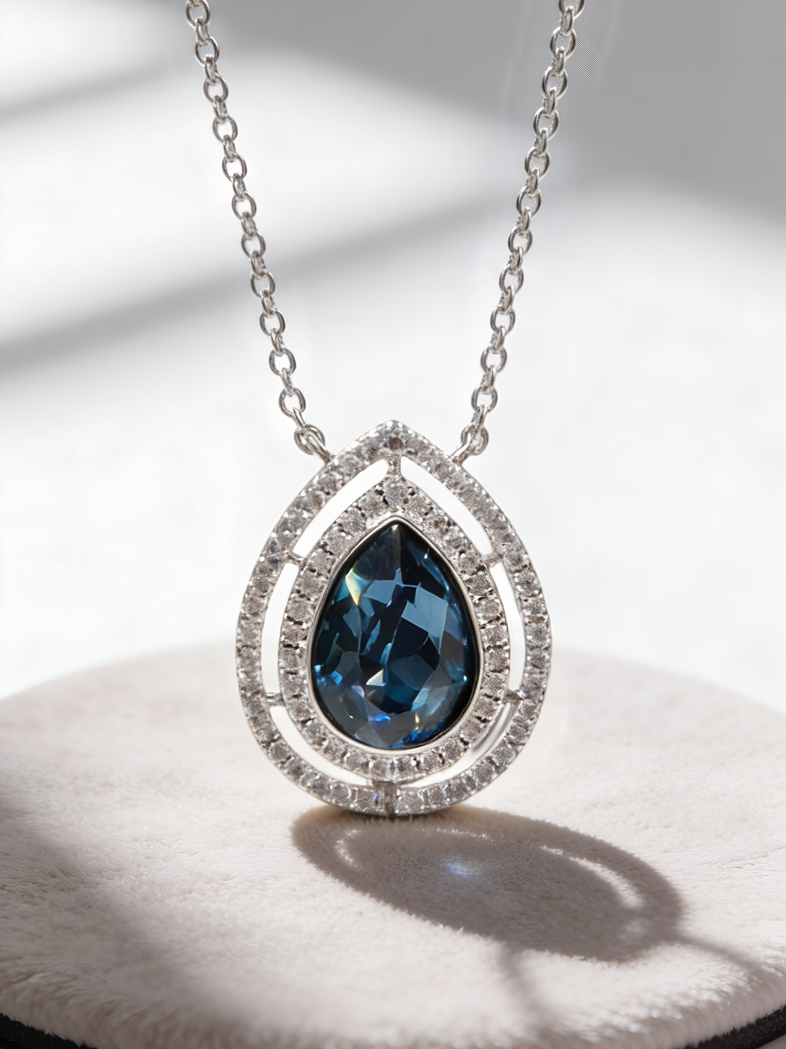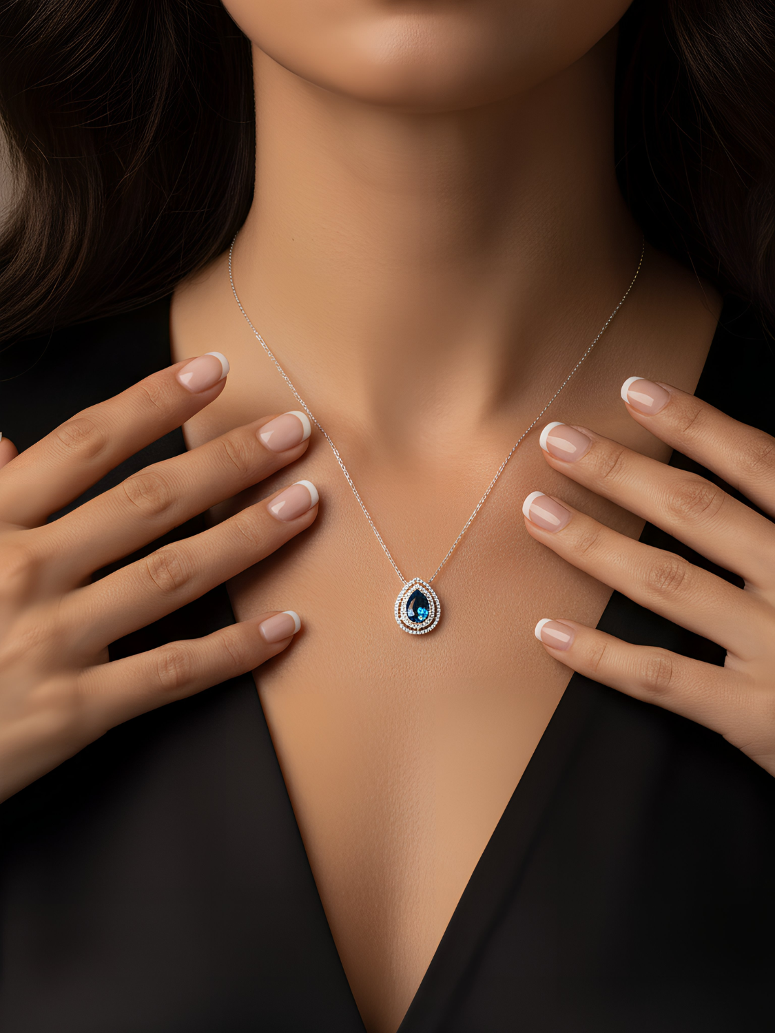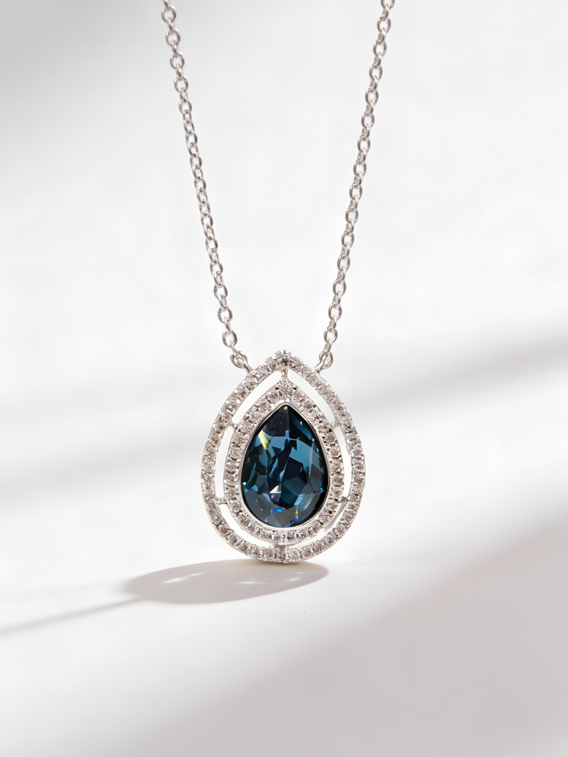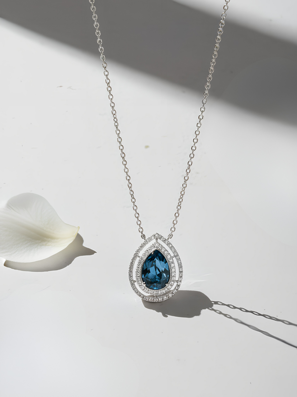 Γυναικείο Κολιέ με Πλατινένιο Στυλό Δάκρυ σε Σκούρο Μπλε Απόχρωση