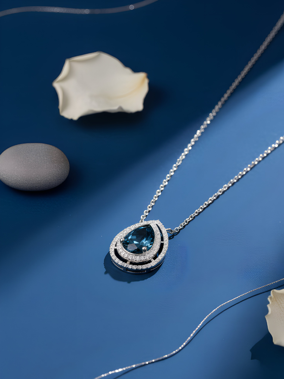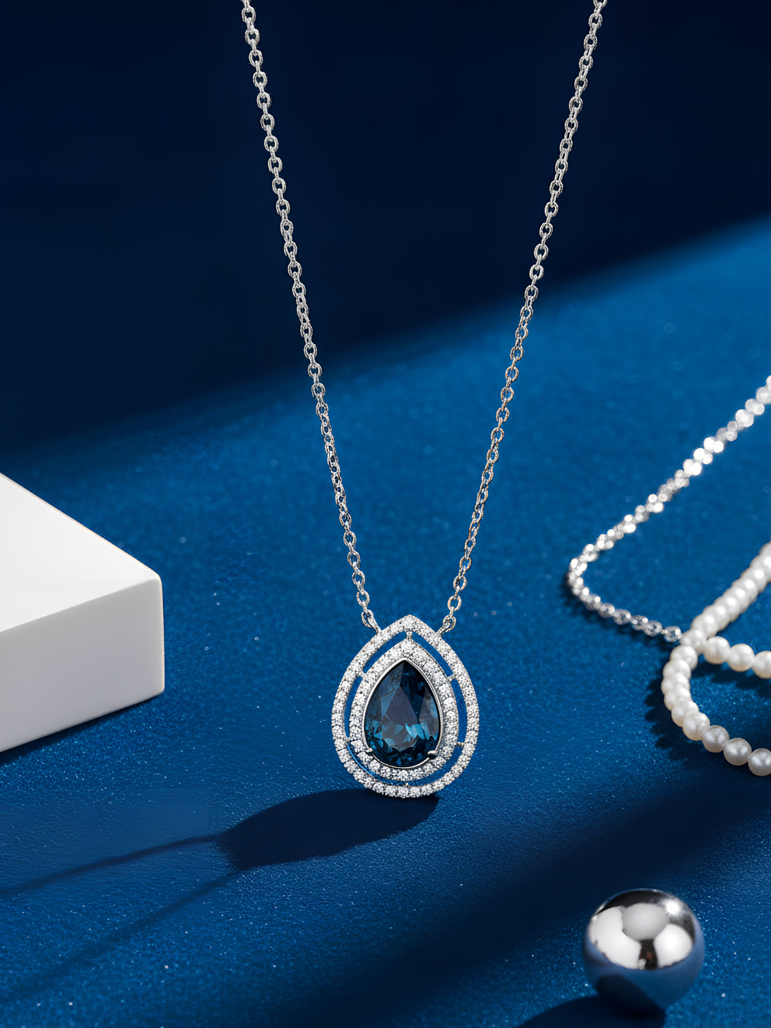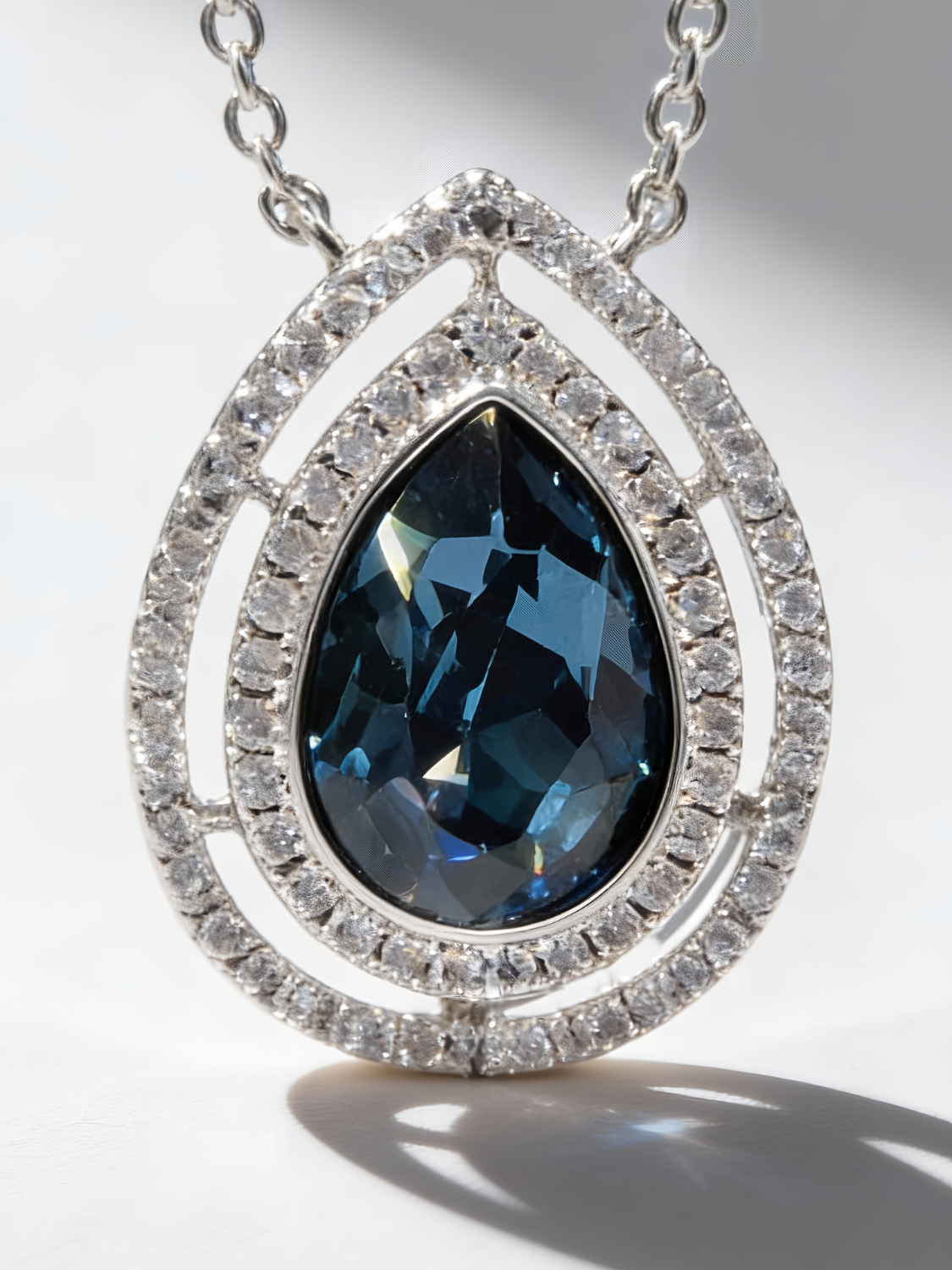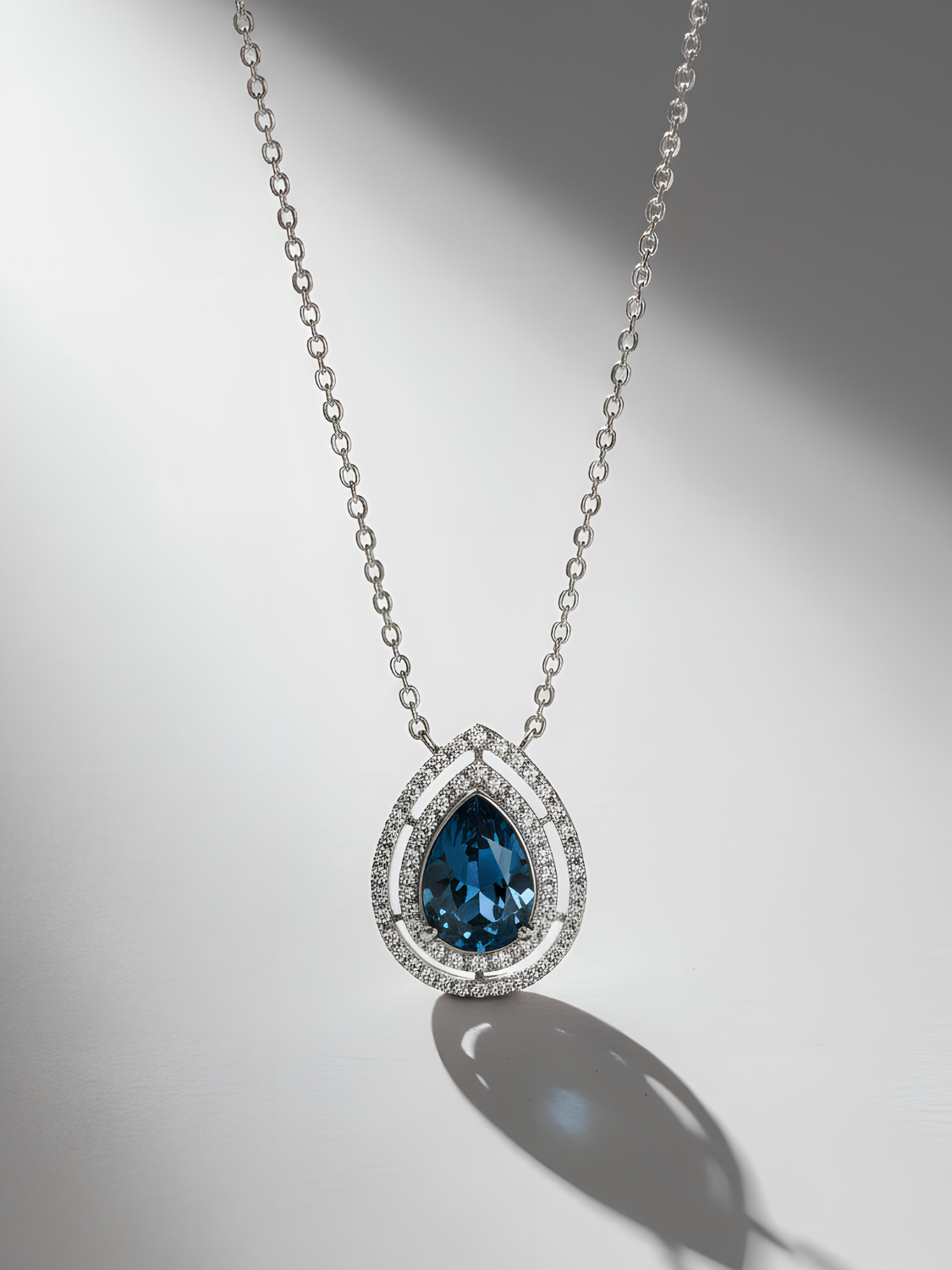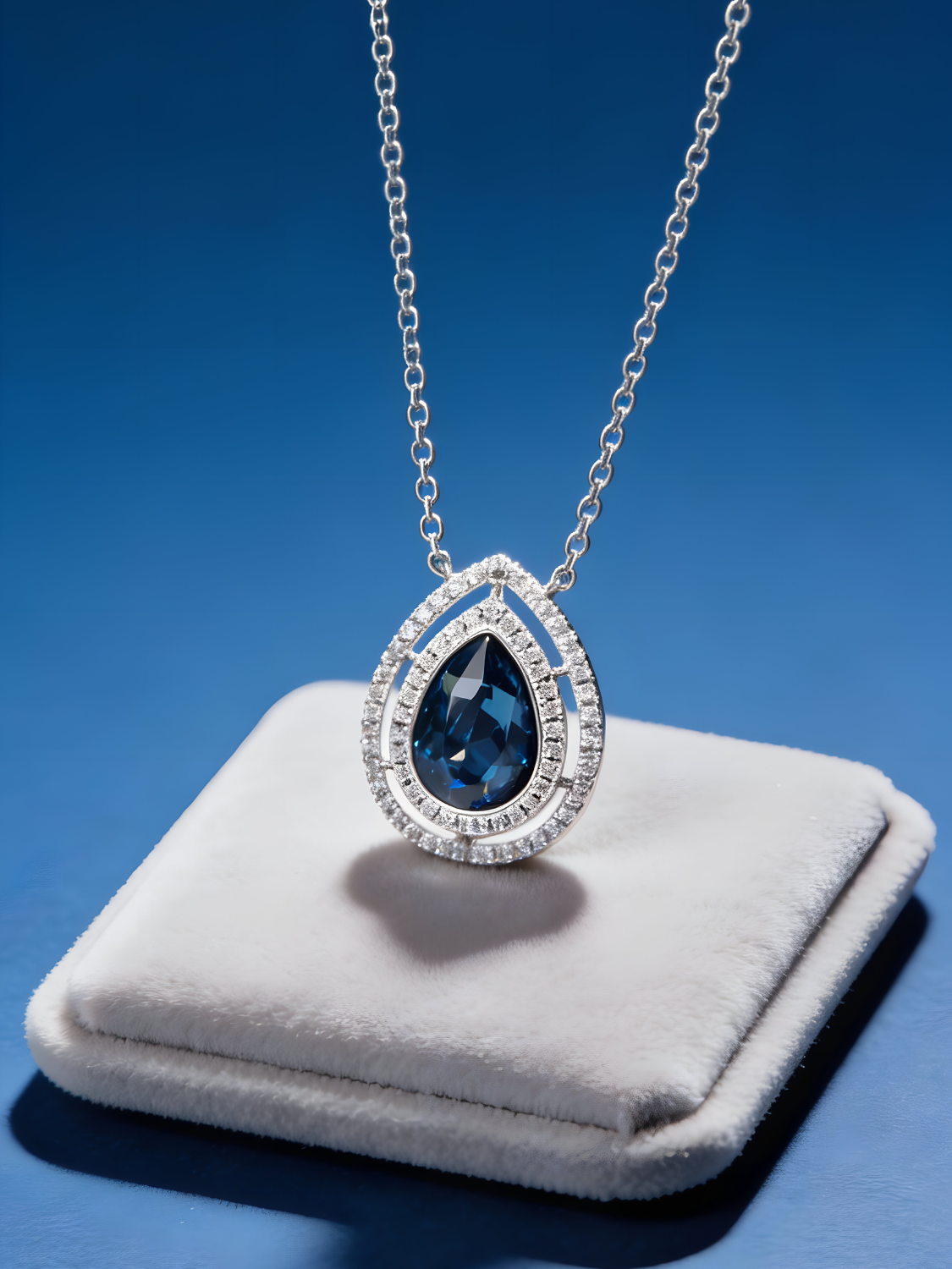 Γυναικείο Κολιέ με Πλατινένιο Στυλό Δάκρυ σε Σκούρο Μπλε Απόχρωση
