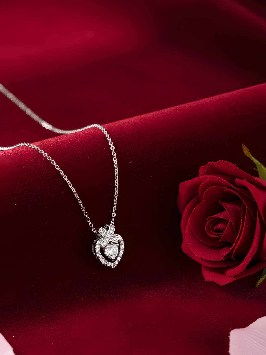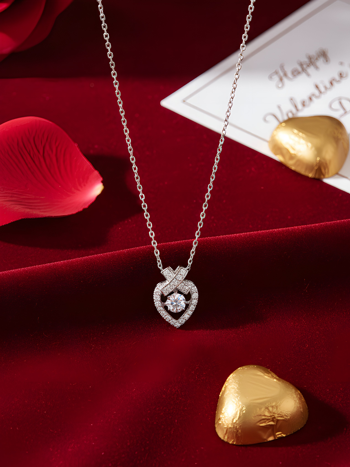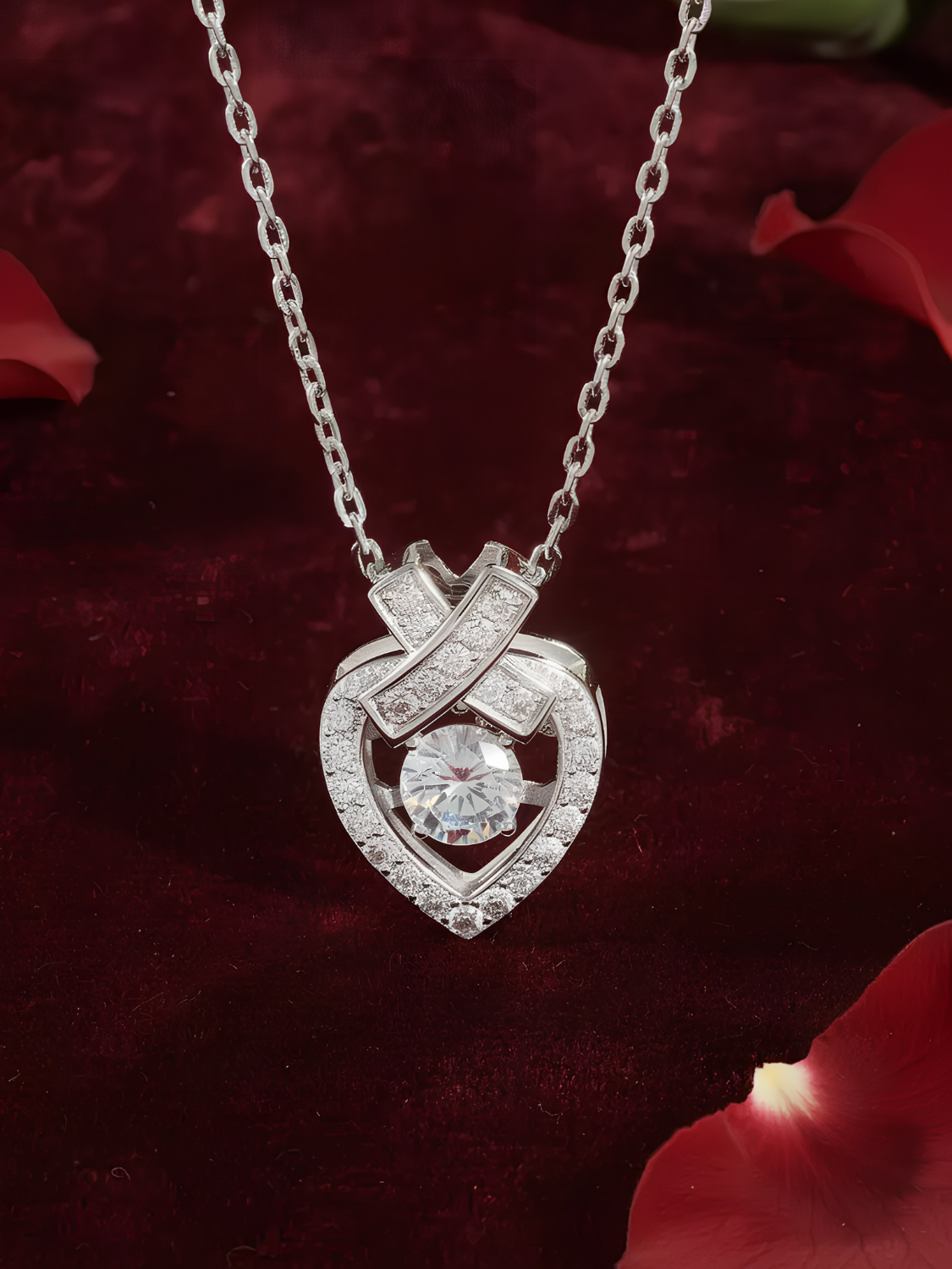 Γυναικείο Κολιέ σε σχήμα καρδιάς, επιπλατινωμένο
