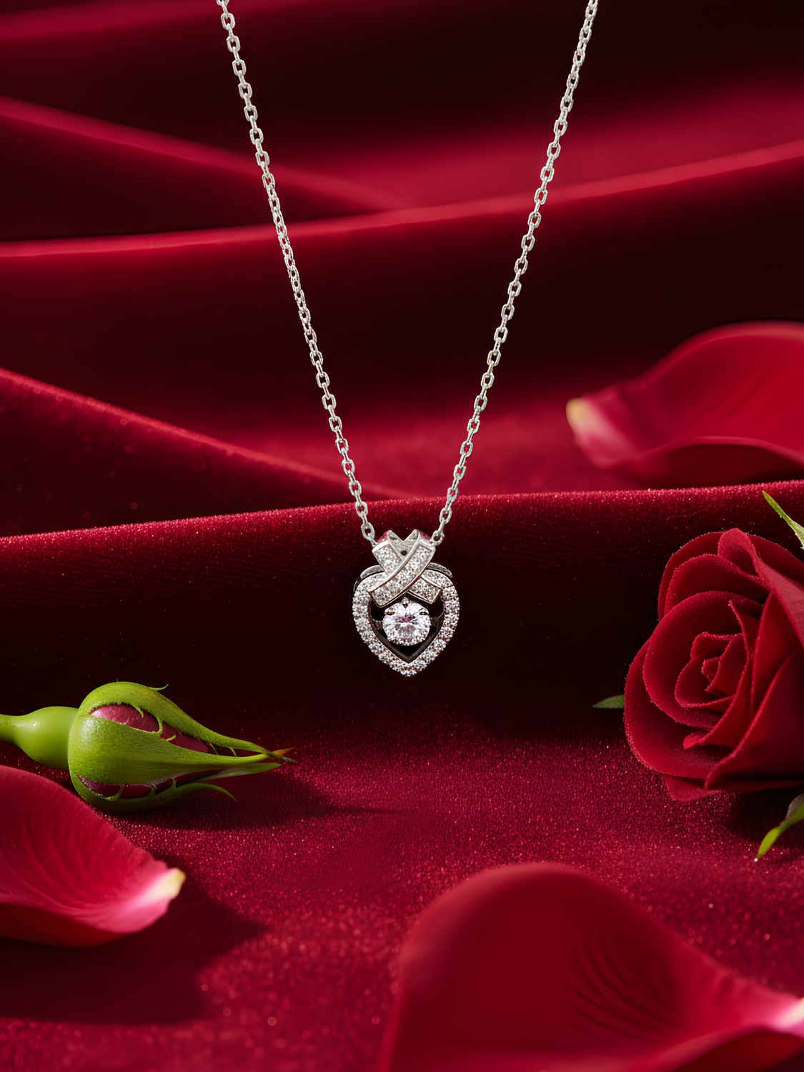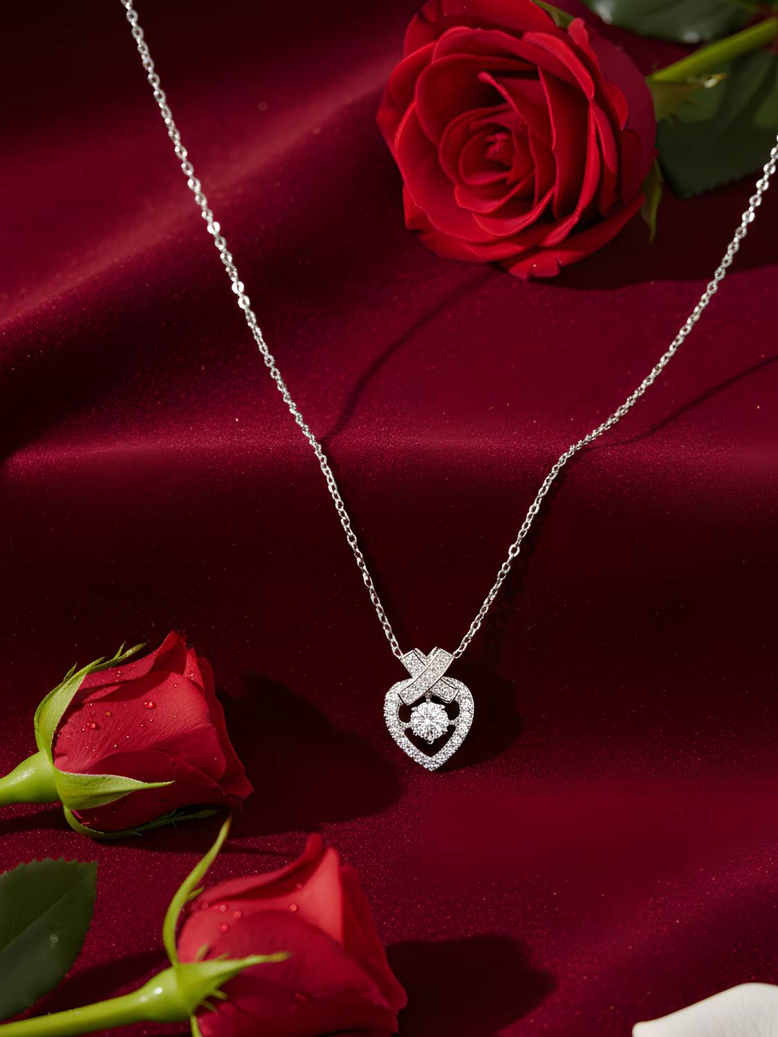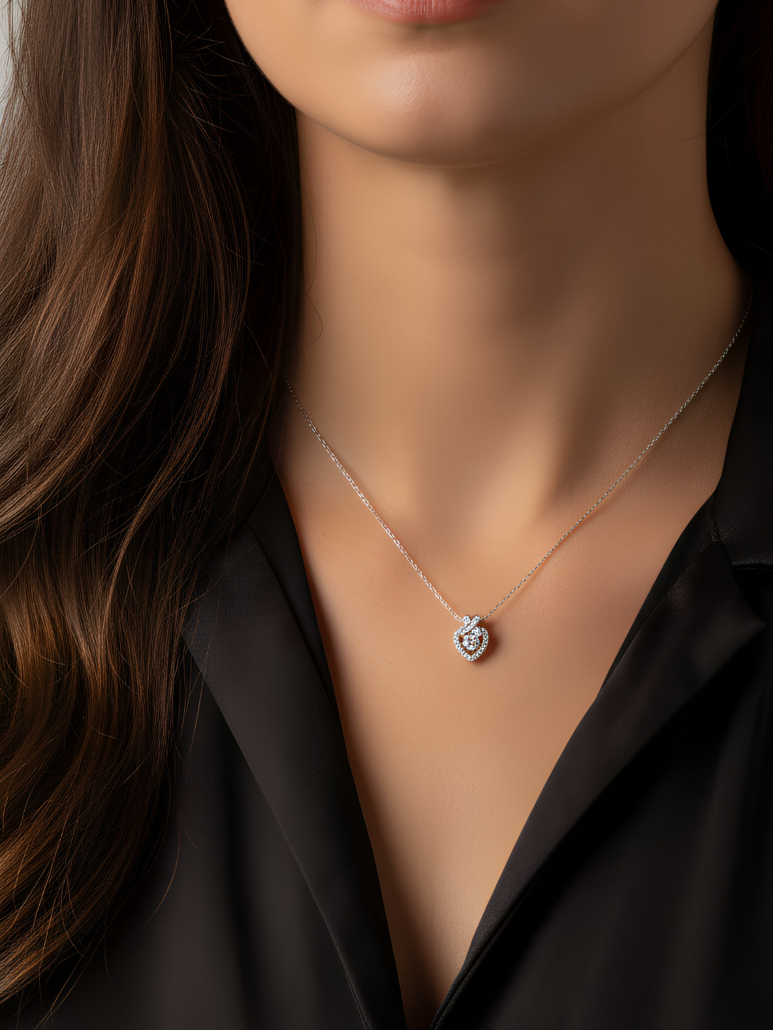 Γυναικείο Κολιέ σε σχήμα καρδιάς, επιπλατινωμένο