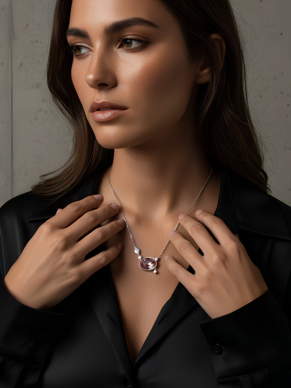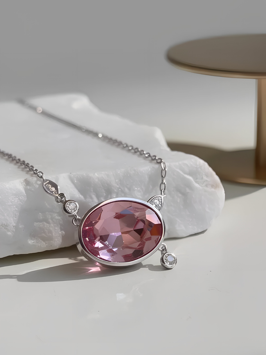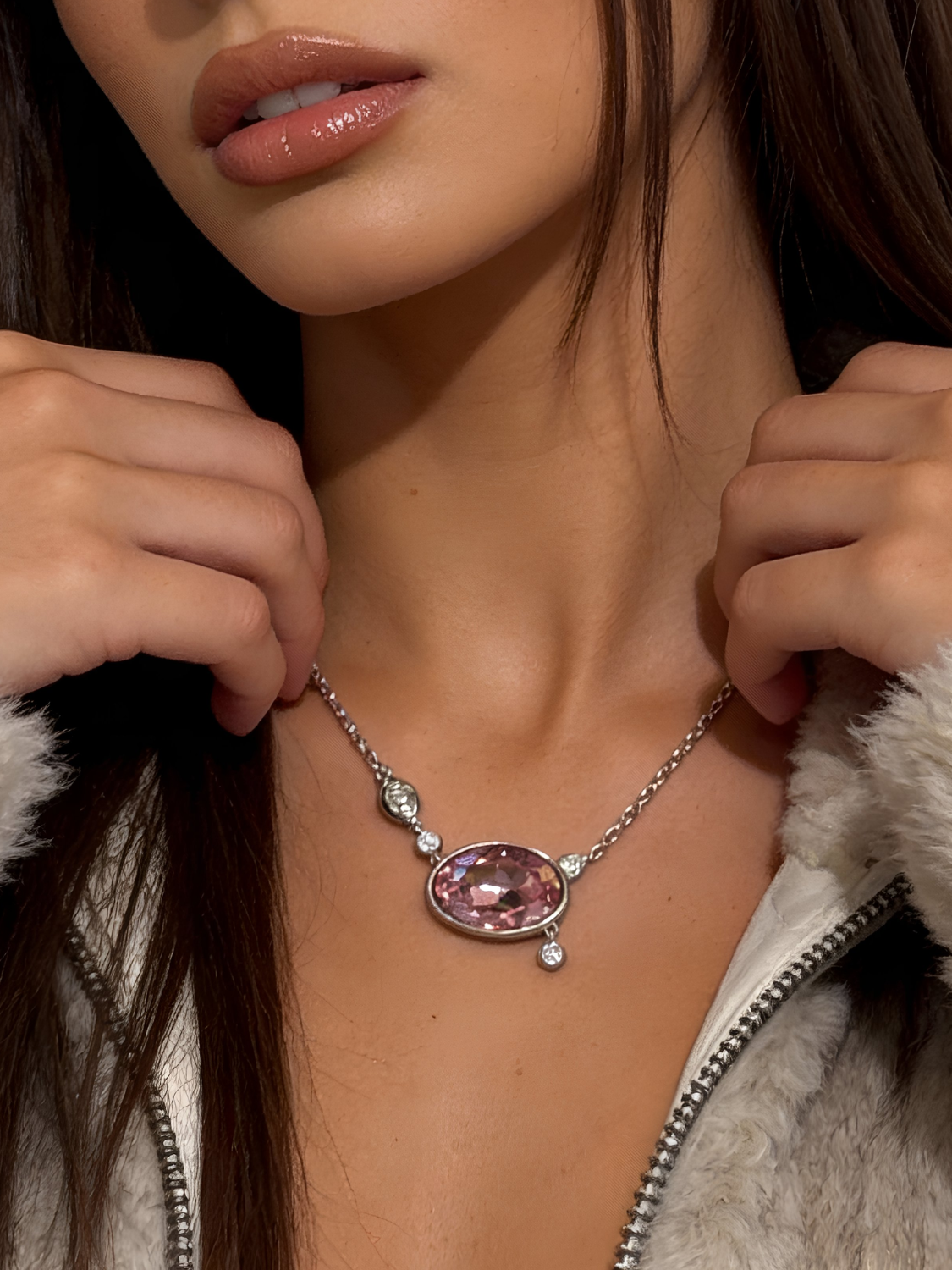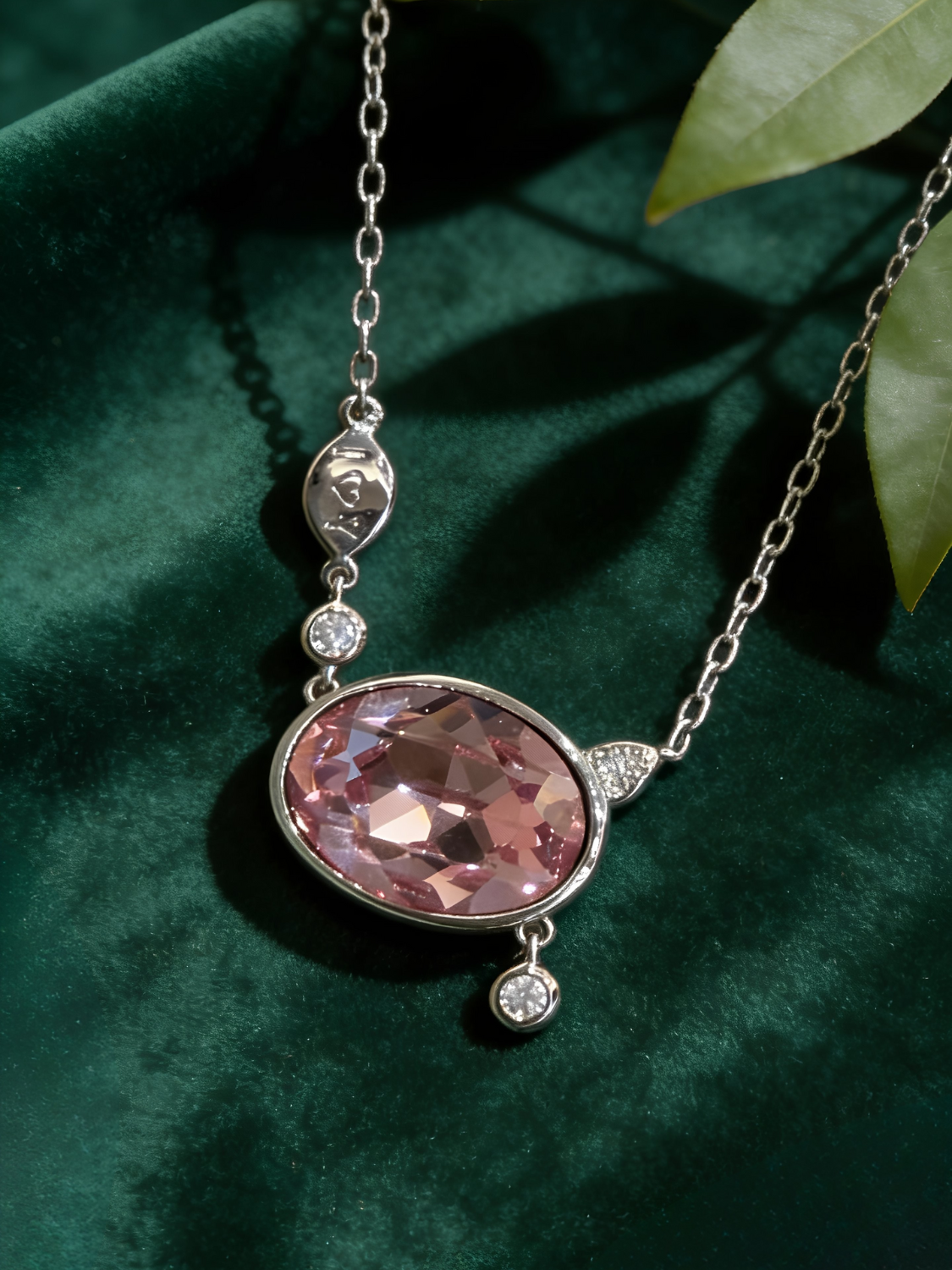 Γυναικείο Κολιέ Επιπλατινωμένο με Οβάλ Ροζ Κρύσταλλο