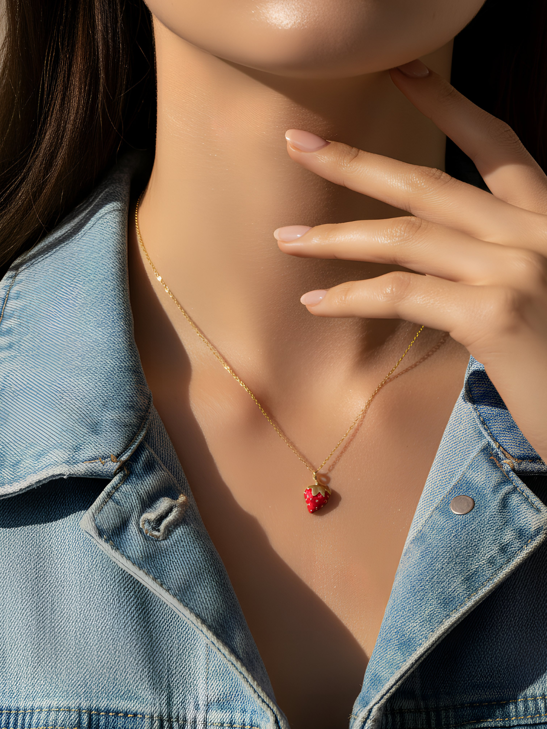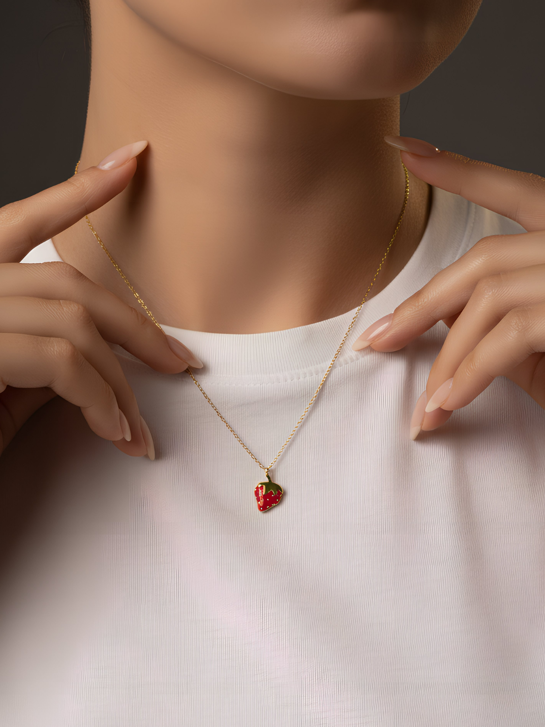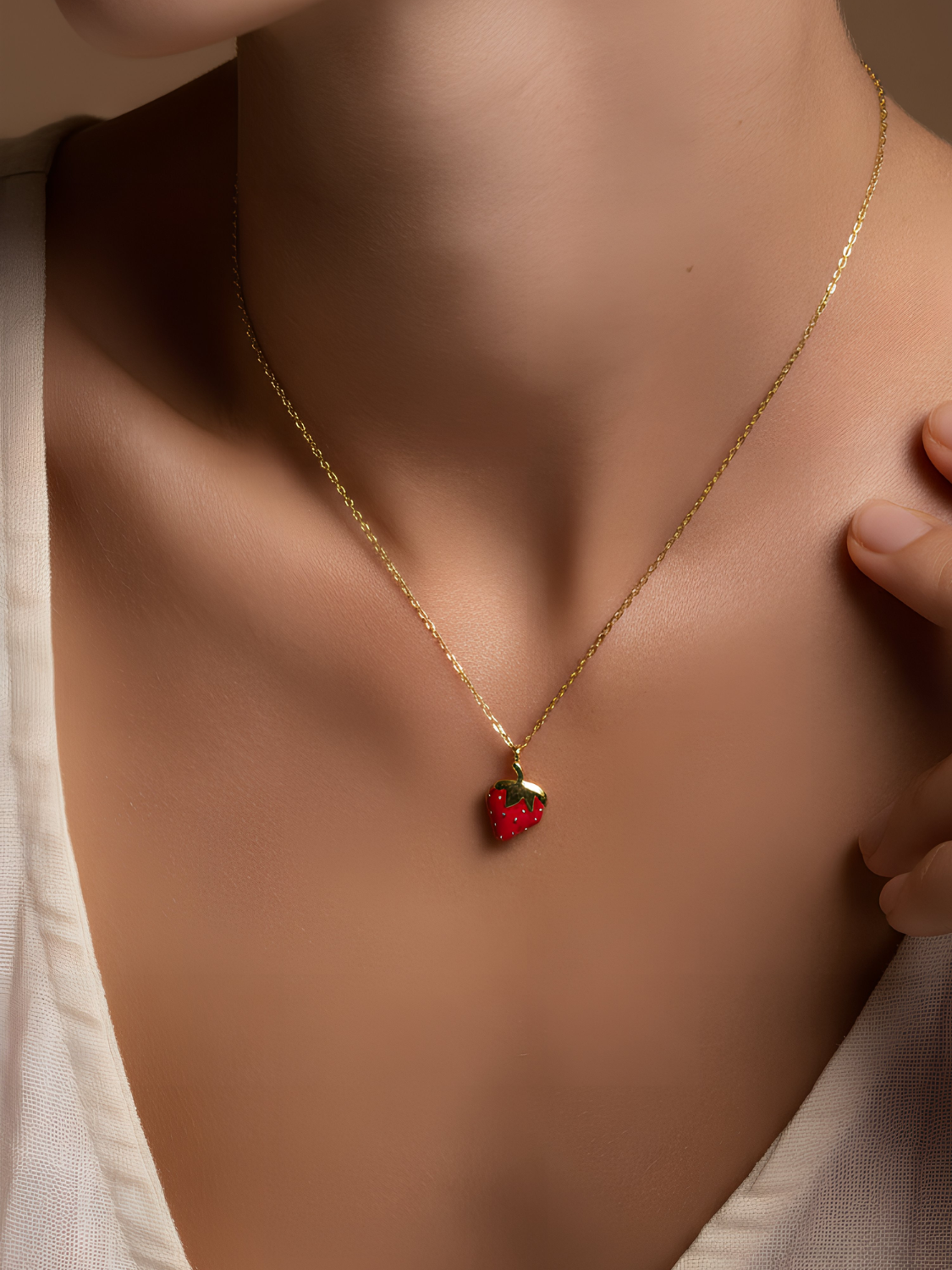 Γυναικείο κολιέ φράουλα σε χρυσό χρώμα για νεανική εμφάνιση