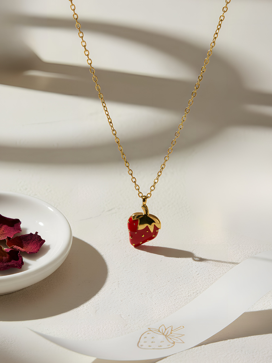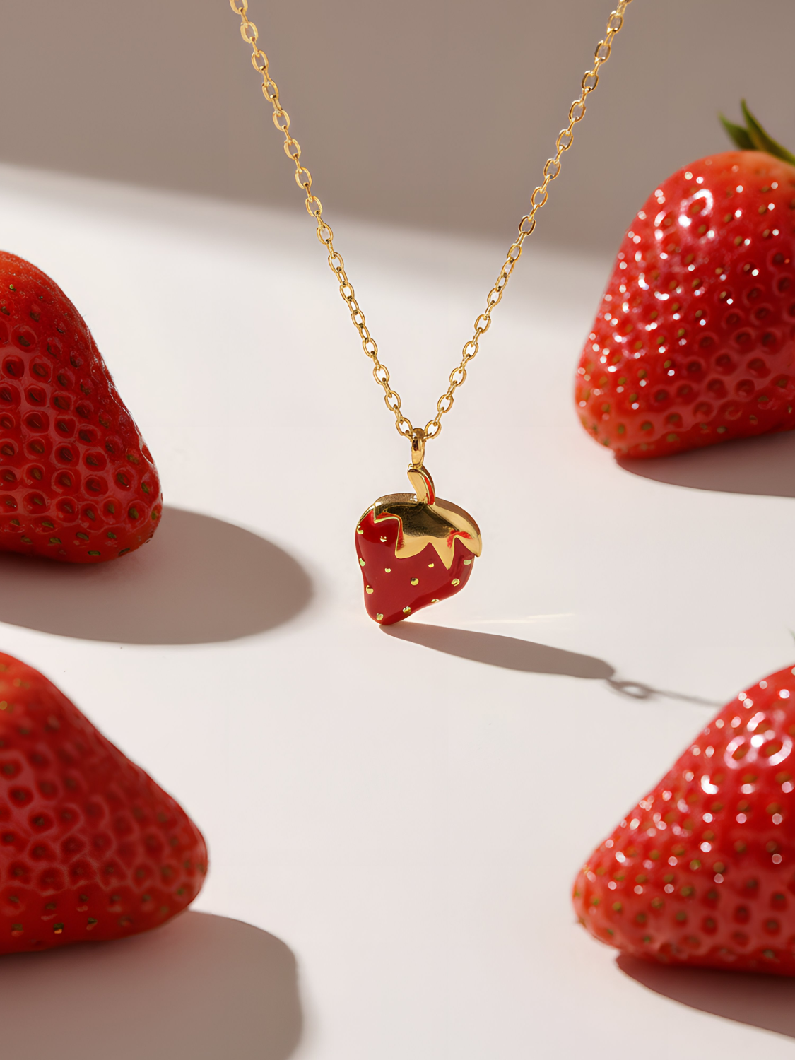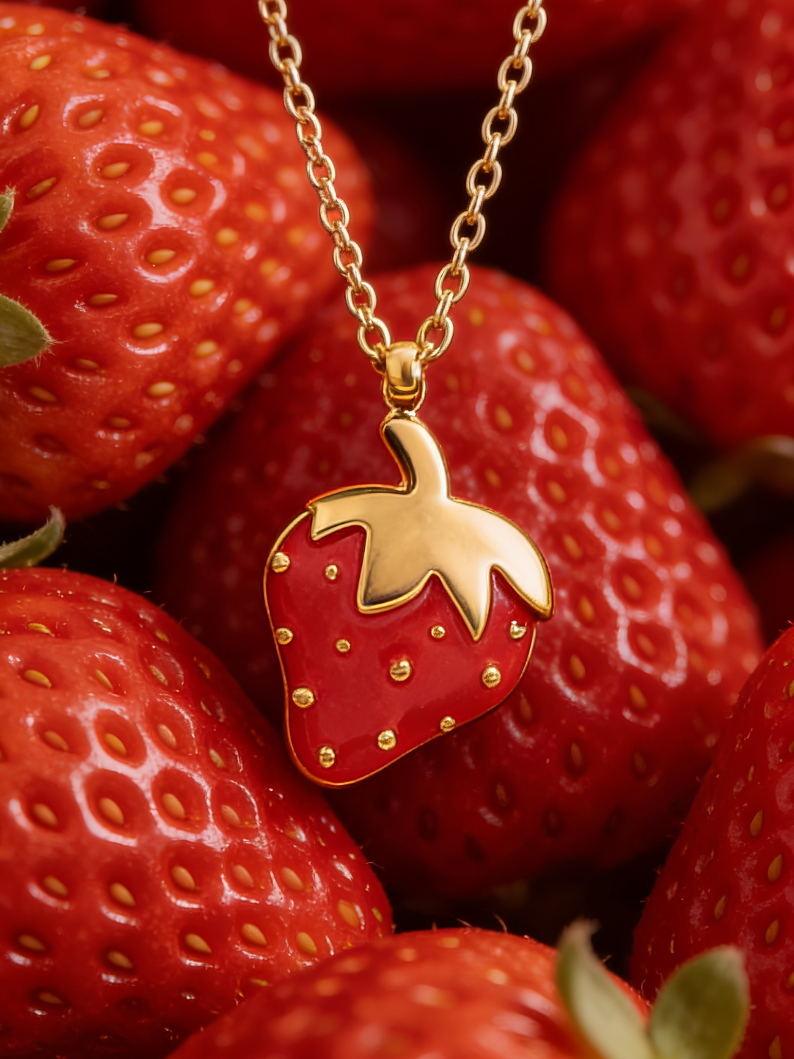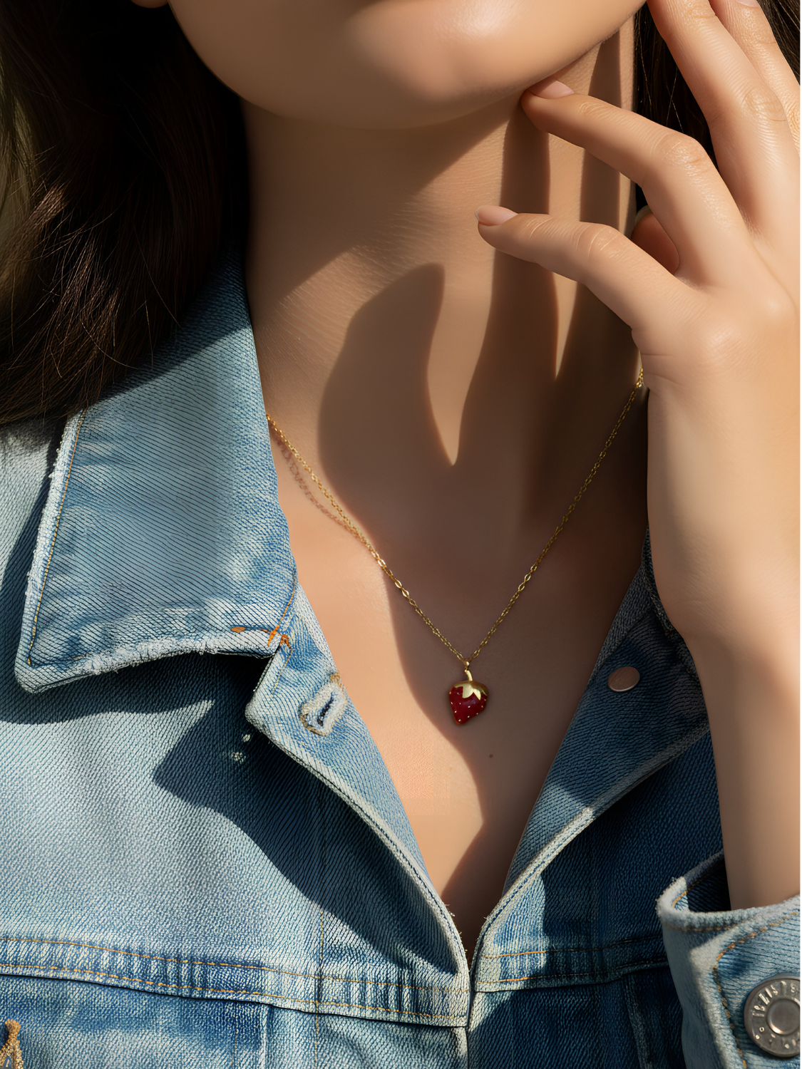 Γυναικείο κολιέ φράουλα σε χρυσό χρώμα για νεανική εμφάνιση