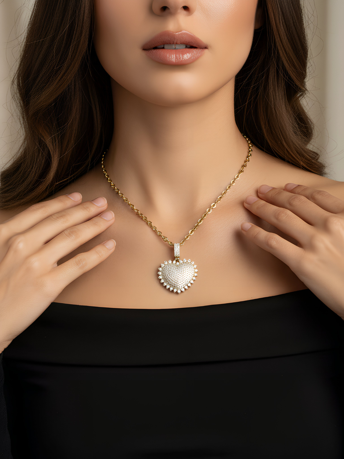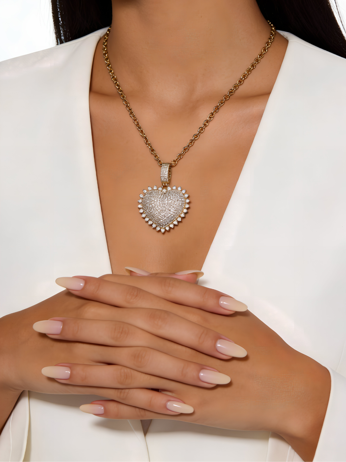 Γυναικείο κολιέ με καρδιά και λευκά ζιργκόν