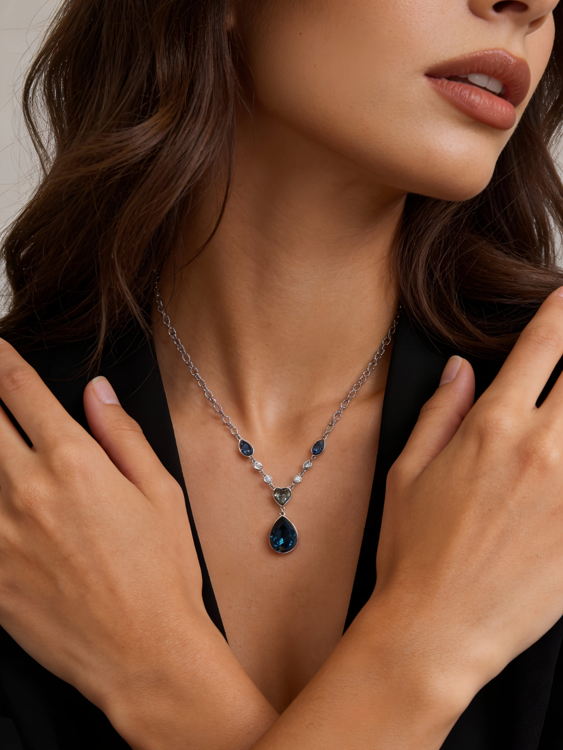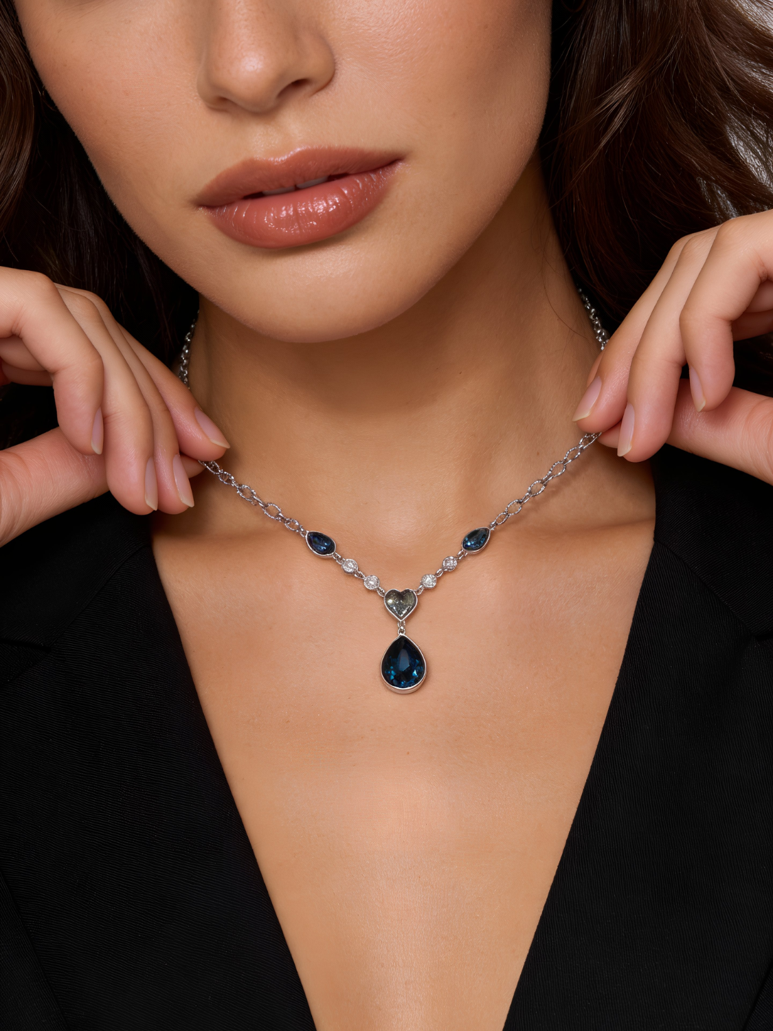 Γυναικείο Κολιέ με Σκούρο Μπλε Κρύσταλλο & Καρδιά