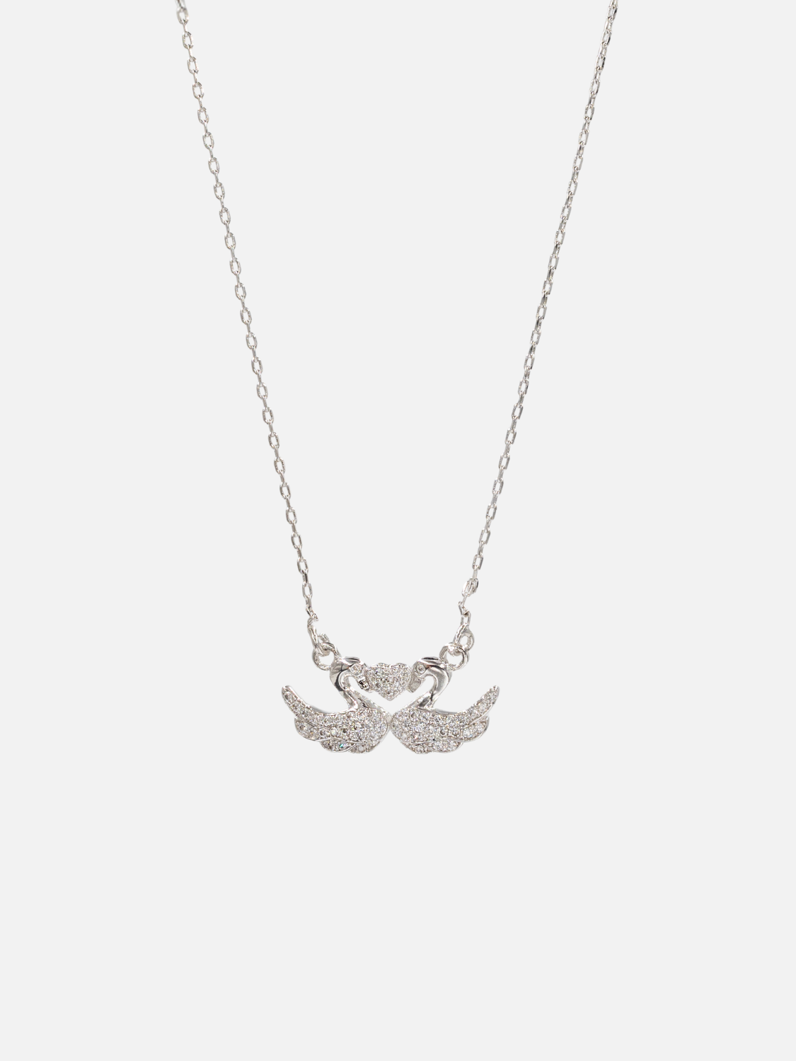 Γυναικείο Κολιέ με Δύο Κύκνους & Καρδιά Ζιργκόν