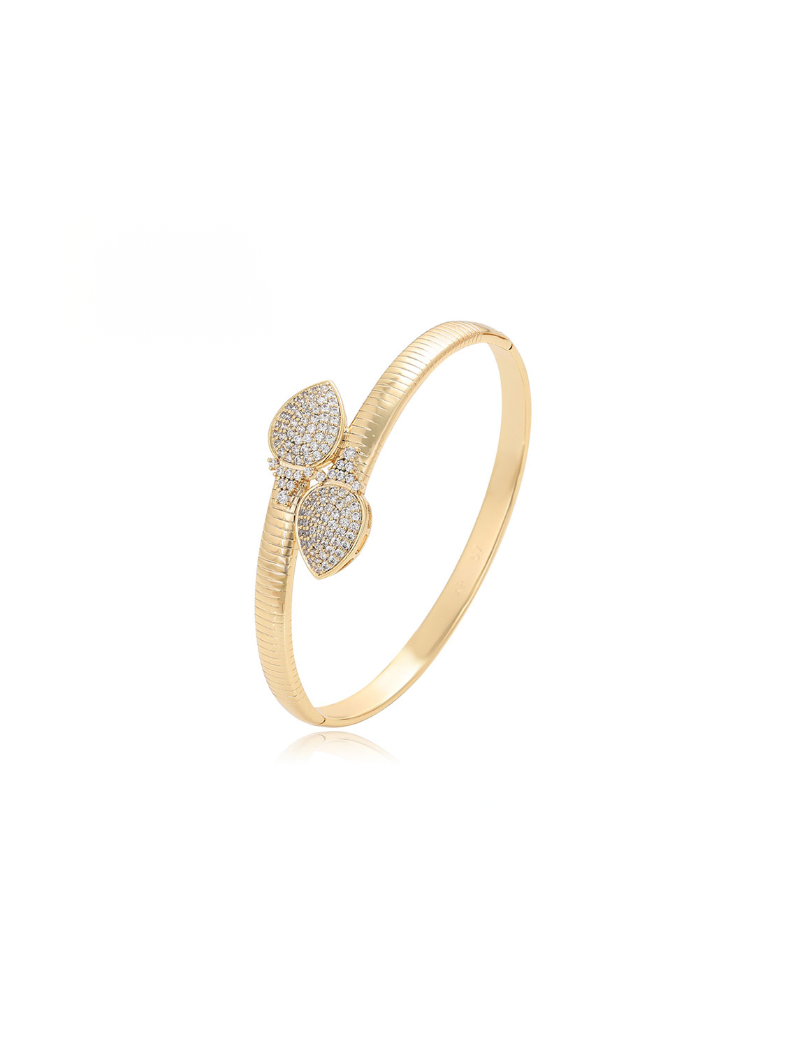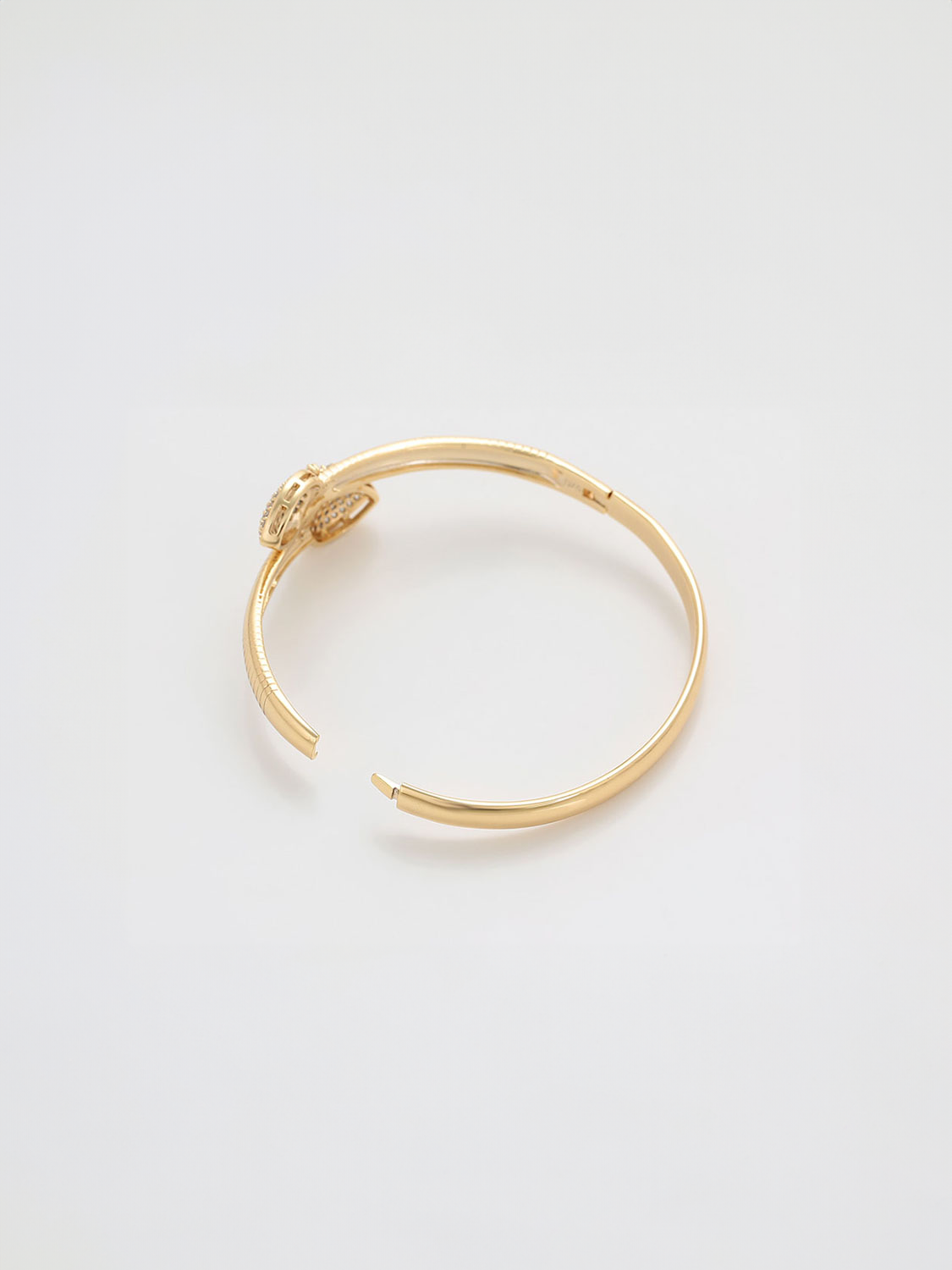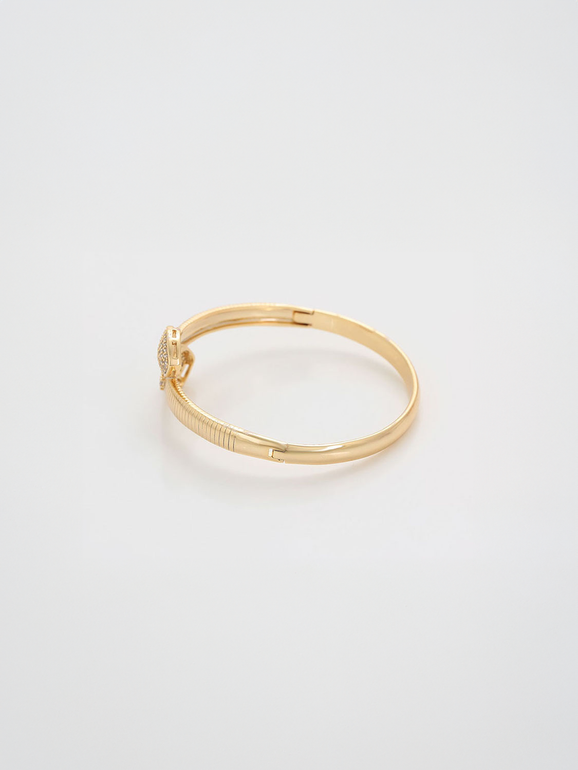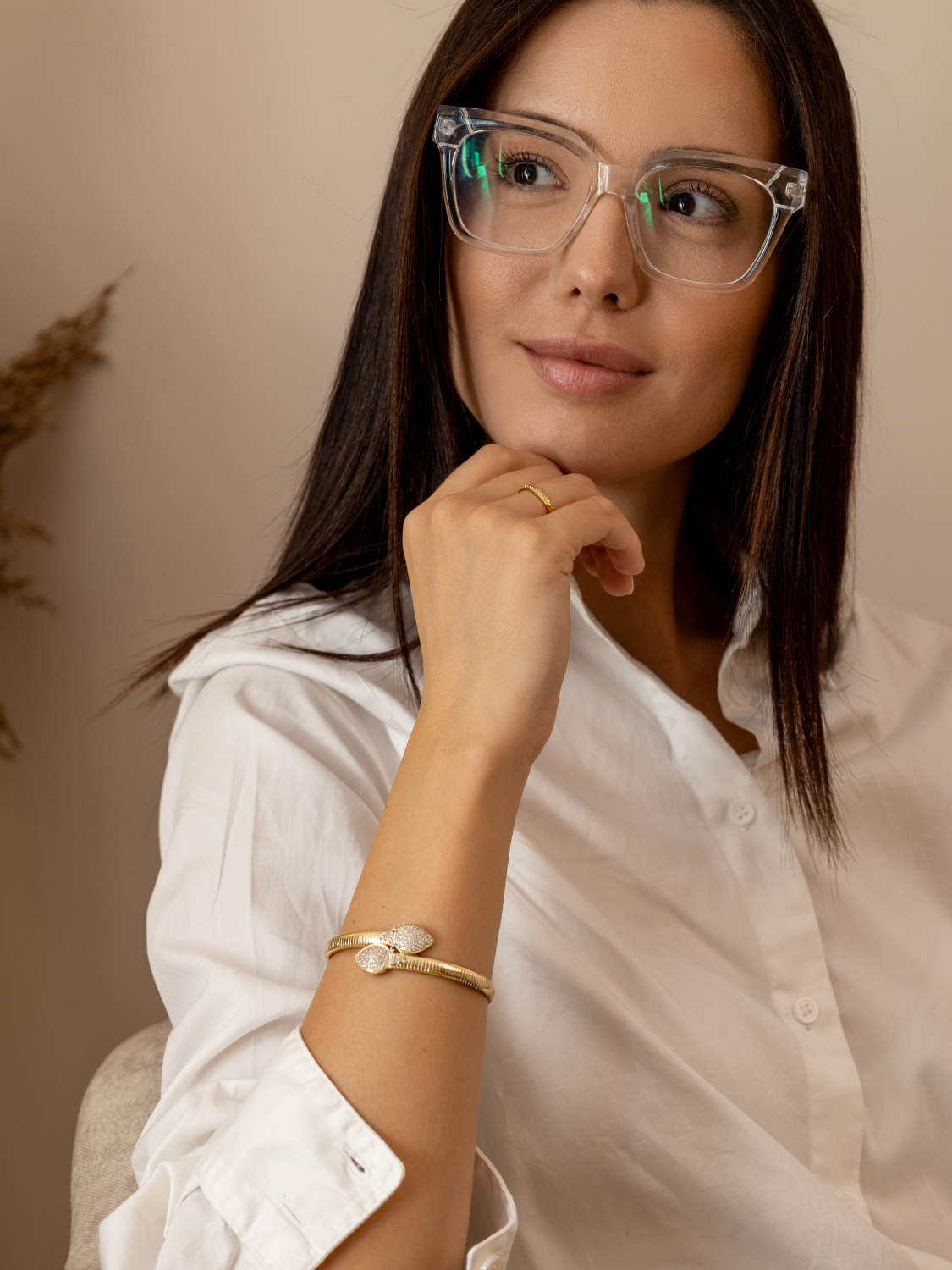 Αναδείξτε την κομψότητα και την εκλεπτυσμένη σας λάμψη με το άκαμπτο βραχιόλι "Amara" . Κατασκευασμένο από οικολογικό χαλκό και επιχρυσωμένο με 14Κ χρυσό, αυτό το βραχιόλι διακοσμείται με συνθετικές πέτρες ζιργκόν (CZ), προσφέροντας διακριτική λάμψη και πολυτέλεια για κάθε εμφάνιση. Το σχήμα του βραχιολιού και η λάμψη των πετρών το καθιστά ιδανικό για κάθε περίσταση, αναδεικνύοντας τη φυσική σας χάρη.