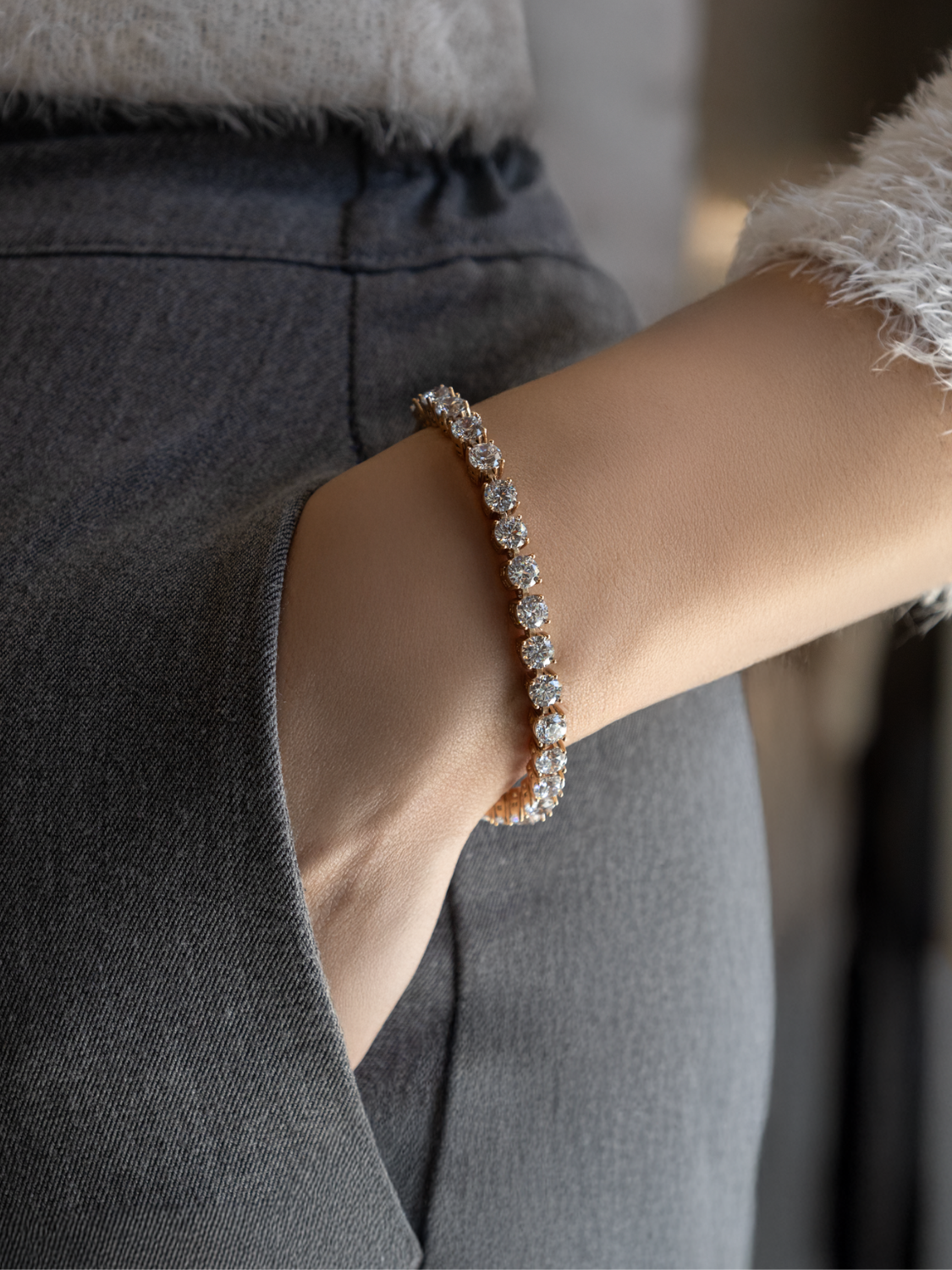 Το Aurora Glow είναι ένα εκθαμβωτικό βραχιόλι που δείχνει την κομψότητα και το διαχρονικό στυλ. Κατασκευασμένο από οικολογικό χαλκό σε απόχρωση 18Κ χρυσού, διαθέτει μια σειρά από λαμπερά συνθετικά ζιργκόν που ακτινοβολούν φως και χάρη. Με μήκος 190 mm (+2 cm επέκταση) και βάρος 18,84 γραμμάρια, αυτό το κόσμημα θα συμπληρώσει ιδανικά κάθε σας εμφάνιση, προσθέτοντας φινέτσα και λάμψη.