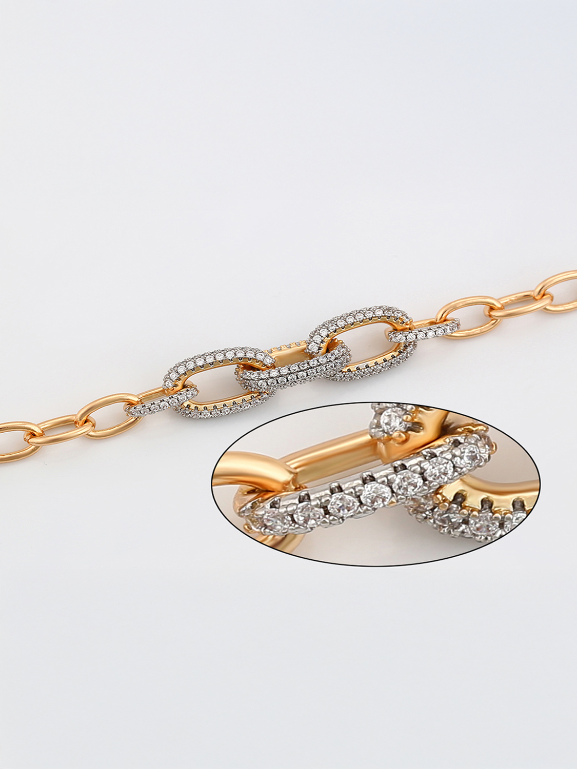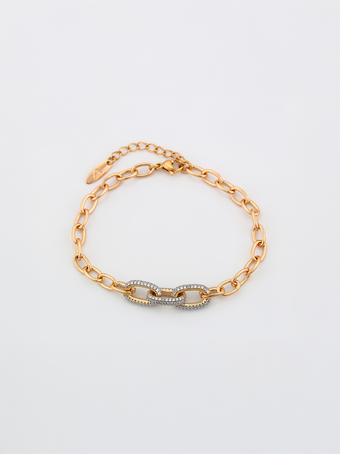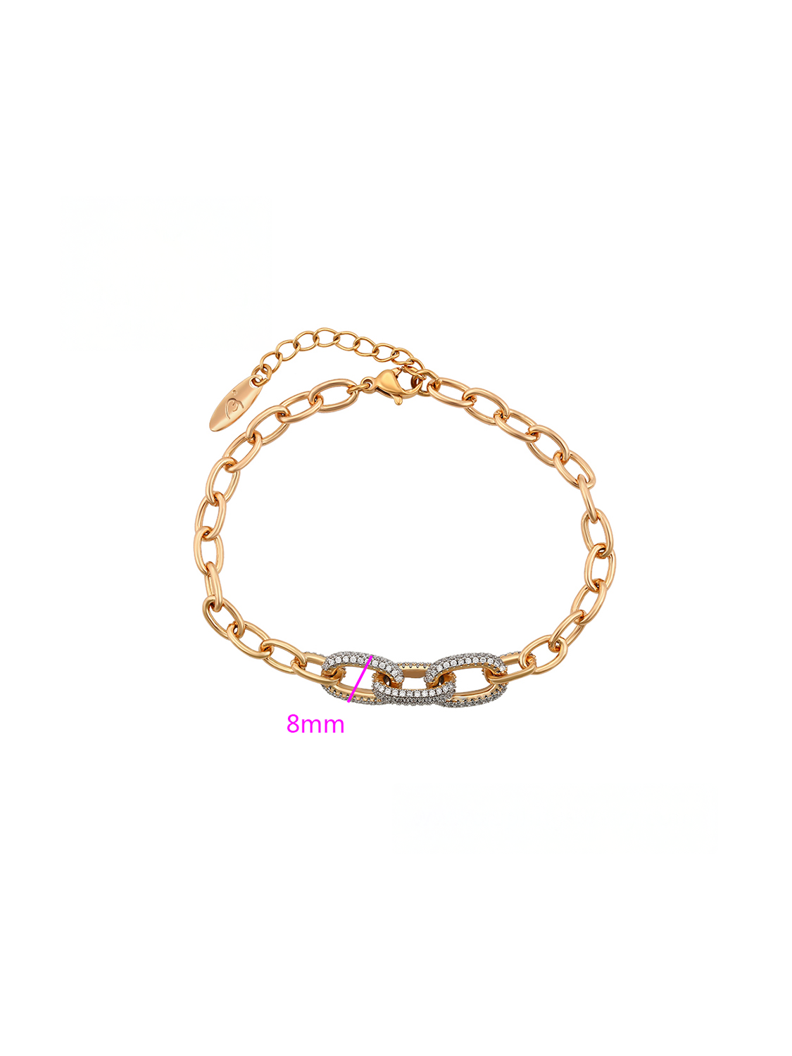 Το Βραχιόλι Chain Spark είναι η τέλεια συνάντηση κομψότητας και τόλμης. Αυτό το βραχιόλι διαθέτει εντυπωσιακό σχέδιο αλυσίδας με κρίκους διακοσμημένους με λαμπερά λευκά ζιργκόν. Κατασκευασμένο από οικολογικό χαλκό και επιμεταλλωμένο σε πολυχρωμία, προσφέρει πολυτέλεια με διακριτική λάμψη. Το μήκος του είναι 19cm και συνοδεύεται από επέκταση για άνετη εφαρμογή. Ιδανικό για μοντέρνα looks που ξεχωρίζουν μέρα ή νύχτα.
