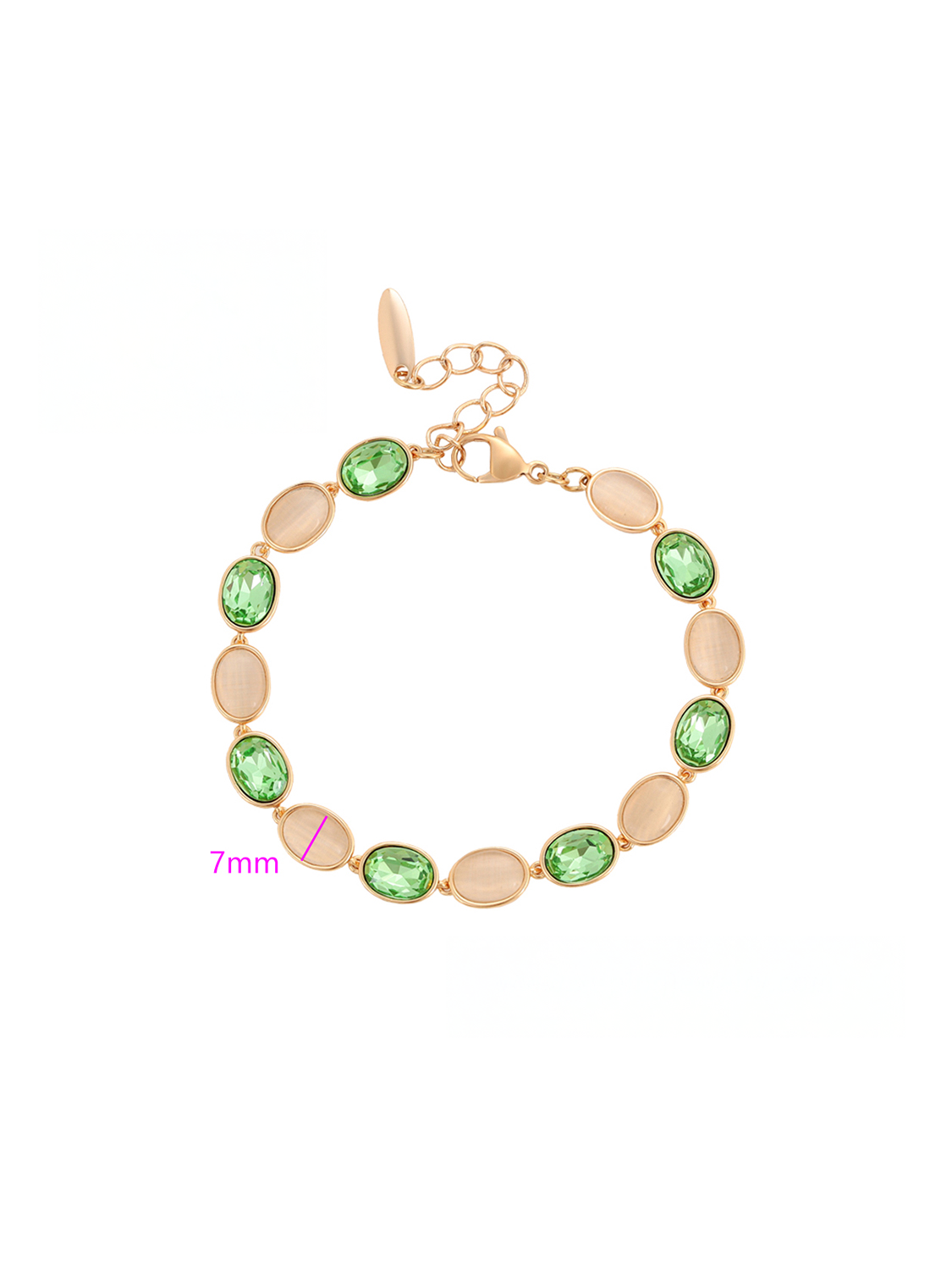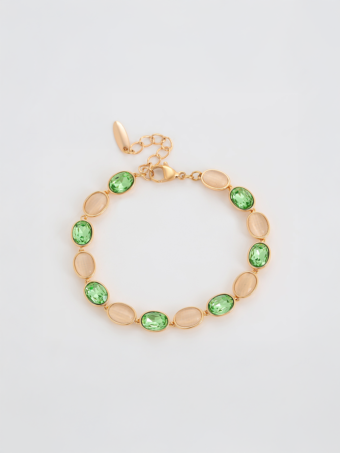 Το Βραχιόλι Emerald Garden αποπνέει τη φρεσκάδα μιας καταπράσινης ανοιξιάτικης όασης. Με εναλλαγές από λαμπερά πράσινα κρύσταλλα και απαλά, γαλακτερά charms, αυτό το βραχιόλι συνδυάζει τη ζωντάνια της φύσης με τη διακριτική κομψότητα του χρυσού. Η επίχρυση βάση 18K χρυσού χρώματος και η επιμελώς τοποθετημένη αλυσίδα προσθέτει μία νότα πολυτέλειας στο φυσικό του στυλ. Ένα εντυπωσιακό κόσμημα που αναδεικνύει κάθε εμφάνιση — από το πρωί στο γραφείο μέχρι το βράδυ στο δείπνο.