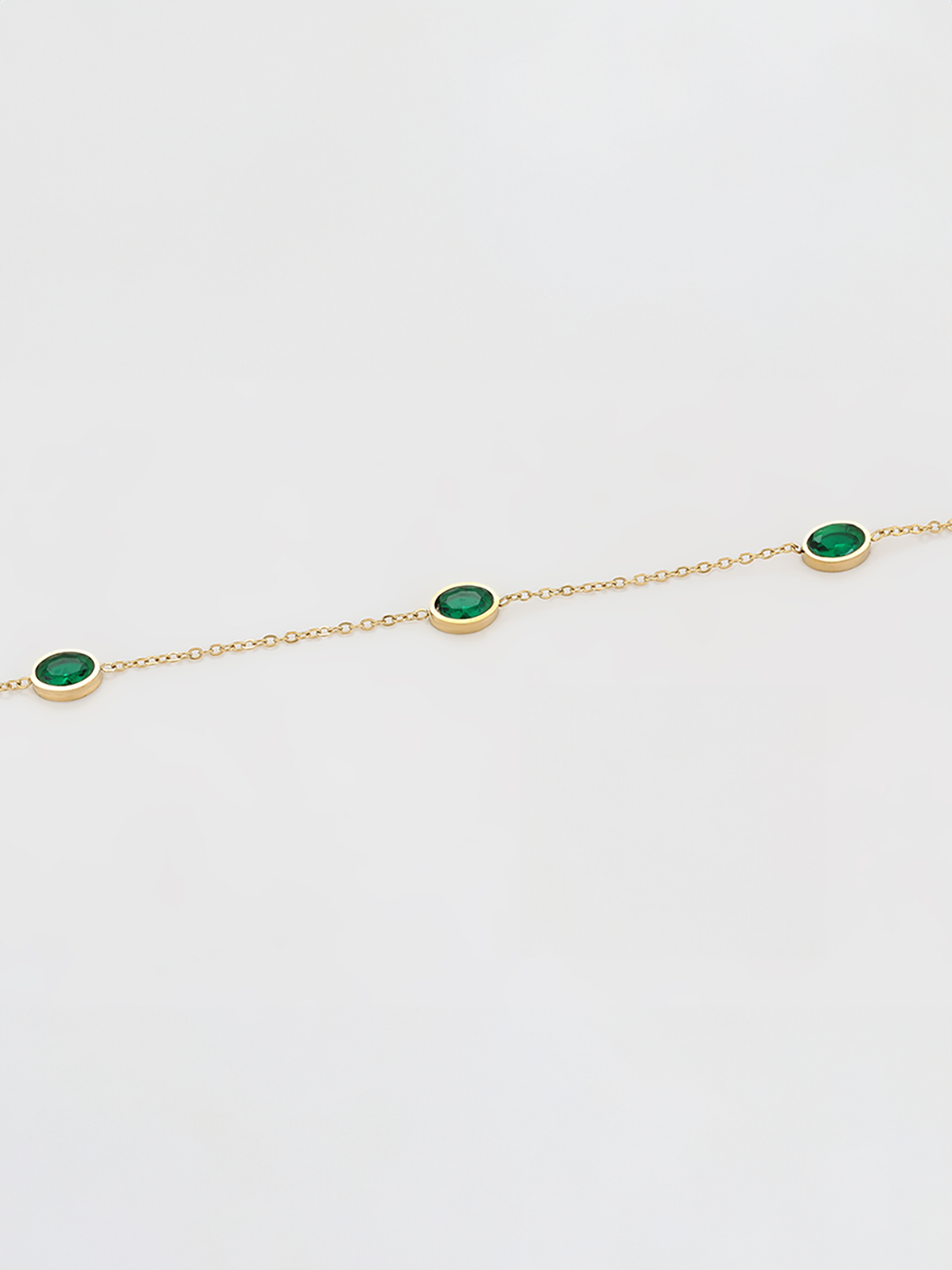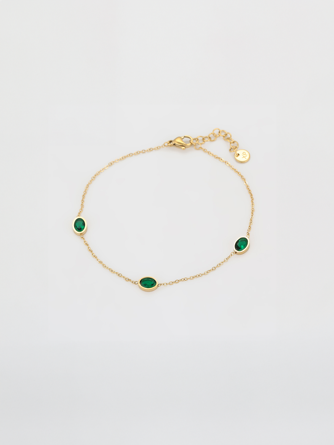 Ανακαλύψτε την κομψότητα και τη διαχρονική ομορφιά του Emerald Grace Bracelet , ενός γυναικείου βραχιολιού από ανοξείδωτο ατσάλι, ιδανική για καθημερινή χρήση και ειδικές περιστάσεις. Αυτό το λεπτό και κομψό βραχιόλι διαθέτει τρεις σμαραγδένιες κρυστάλλινες πέτρες μεγέθους 6*4mm, που προσθέτουν μια διακριτική και πολυτελή λάμψη στον καρπό σας.