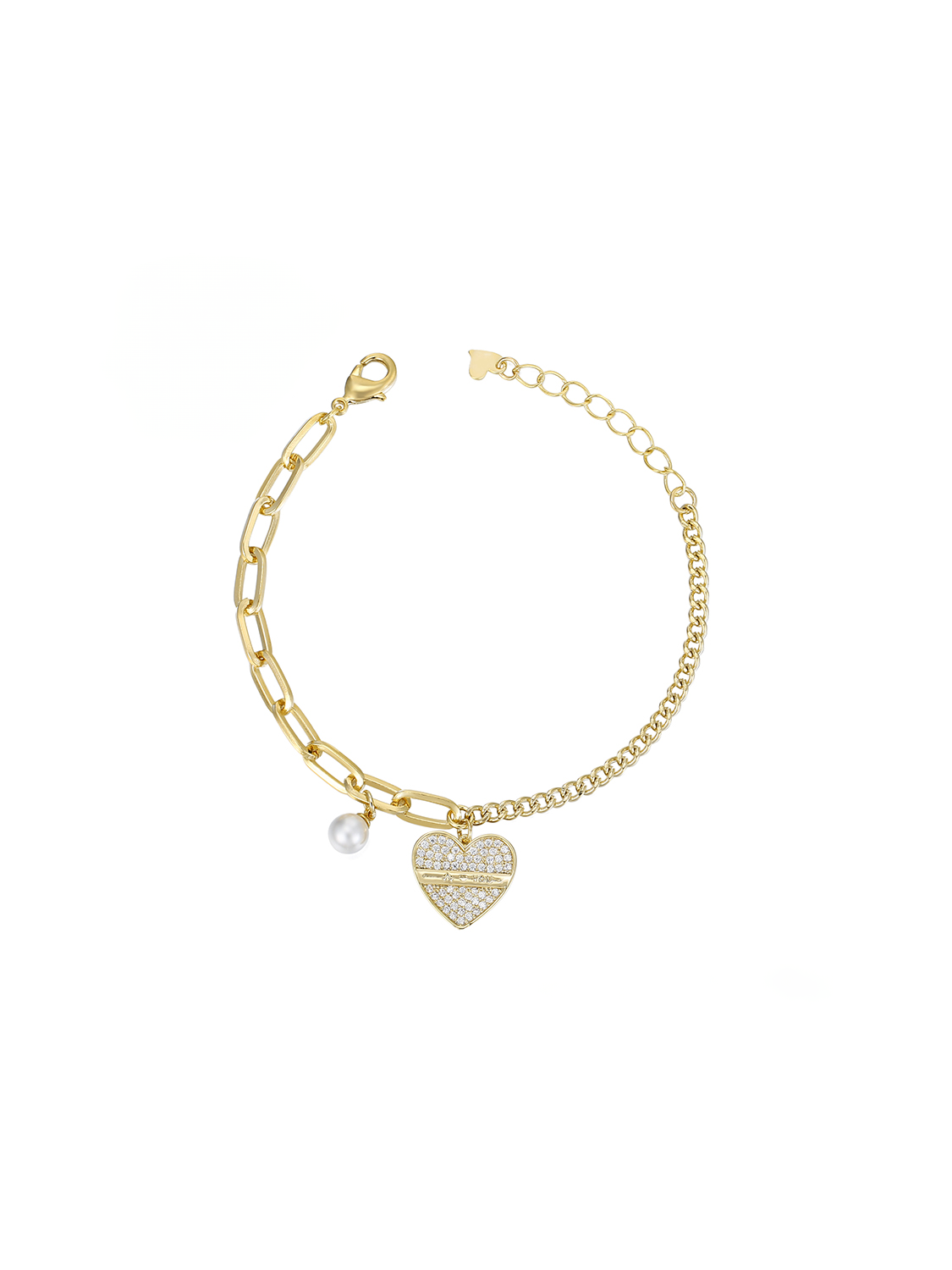 Αναδείξτε την κομψότητα και την πολυτέλεια σας με το βραχιόλι "Heart's Desire". Το βραχιόλι διαθέτει μια λαμπερή καρδιά, διακοσμημένη με λαμπερές πέτρες, που προσδίδουν μια εκθαμβωτική λάμψη. Το κόσμημα αυτό είναι κατασκευασμένο από οικολογικό χαλκό και επιχρυσωμένο με χρώμα 14Κ χρυσού, δημιουργώντας ένα κομψό και μοντέρνο αποτέλεσμα.