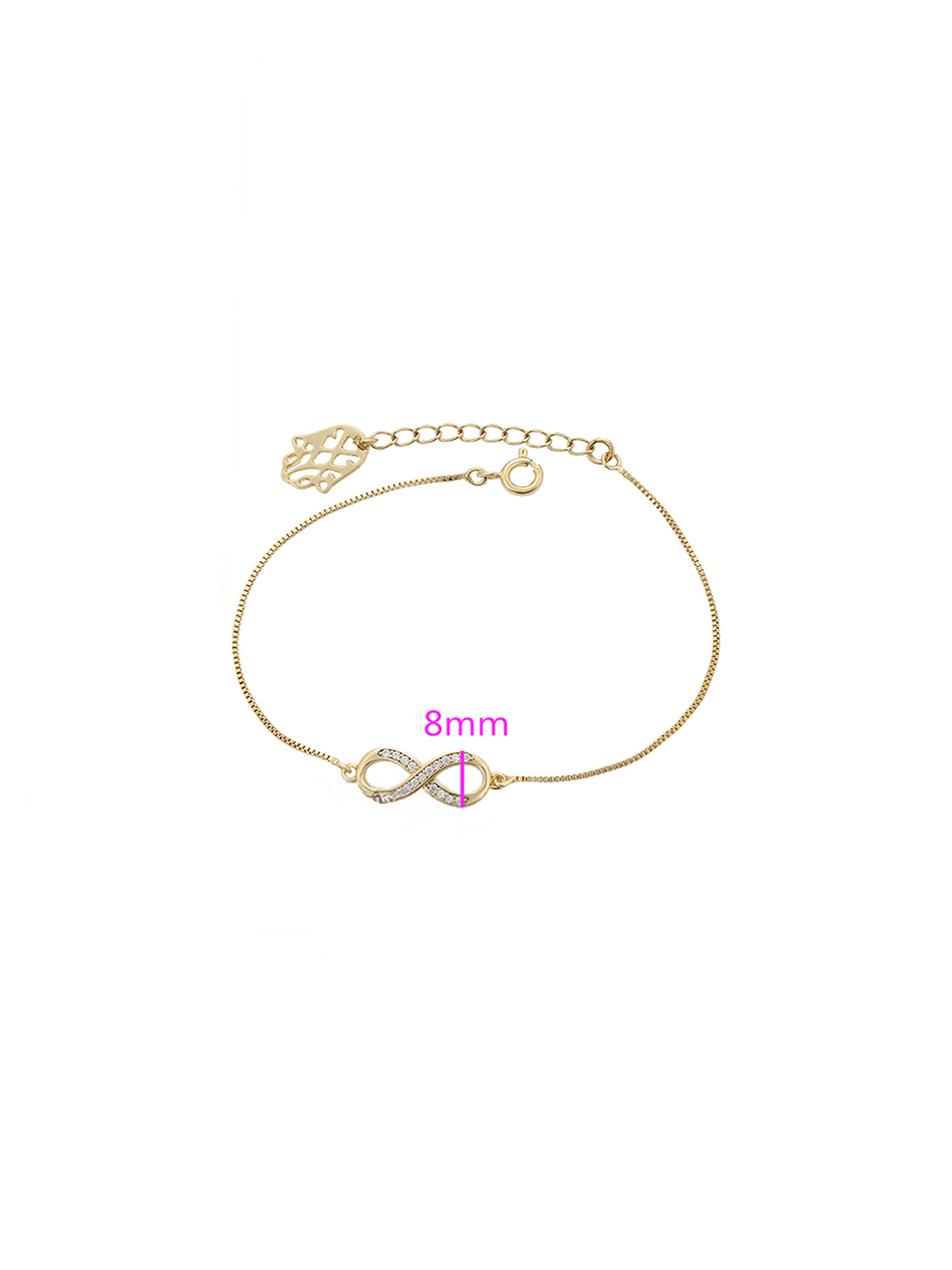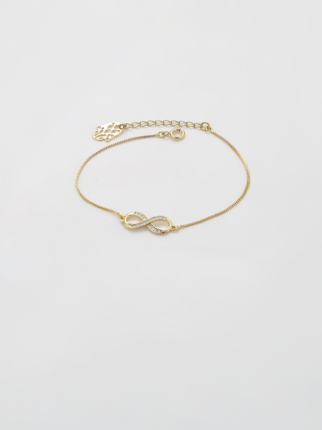 Το βραχιόλι Infinity Pulse συνδυάζει διαχρονική κομψότητα με νόημα. Το χρυσό του χρώμα και οι λαμπερές πέτρες ζιργκόν αναδεικνύουν το σύμβολο της αιώνιας σύνδεσης. Φόρεσε το μόνο του ή συνδύασε το με το αντίστοιχο κολιέ και τα σκουλαρίκια για ένα αρμονικό σετ.