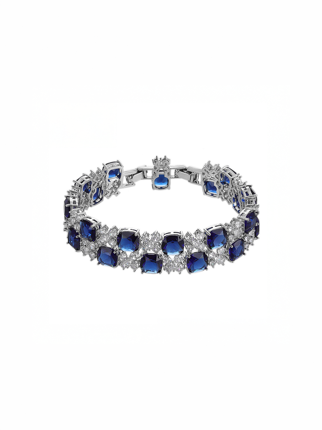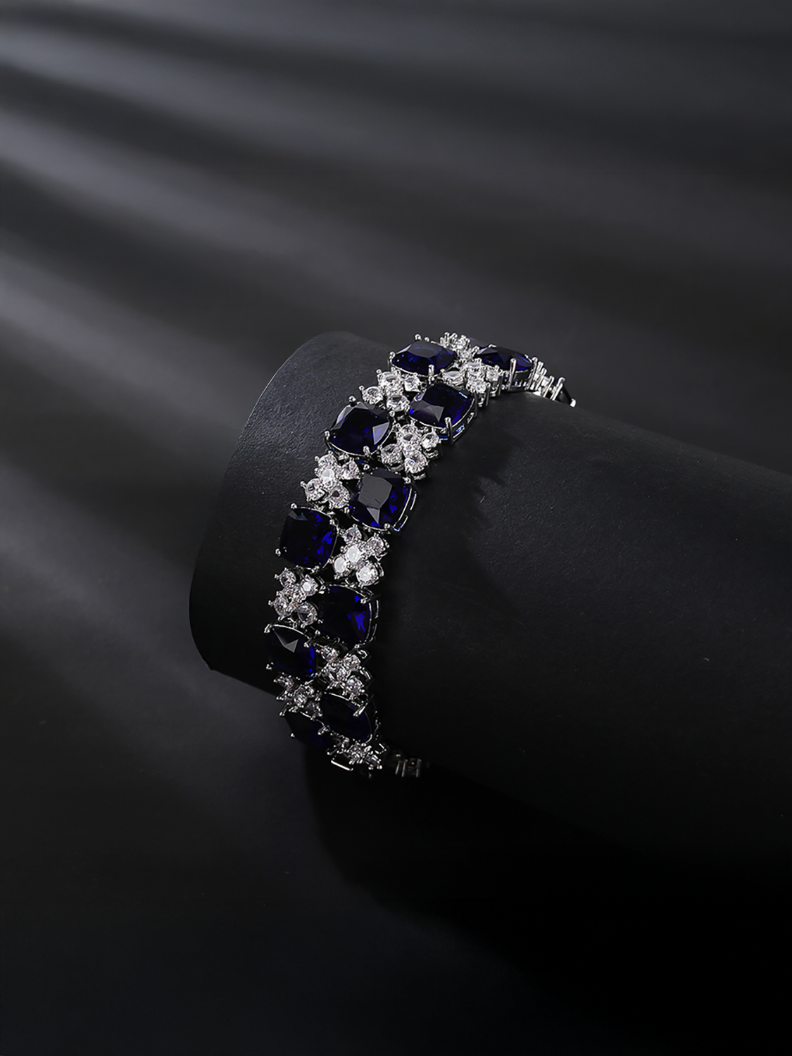 Το Blue Sapphire είναι ένα κομψό και πολυτελές βραχιόλι που μαγνητίζει τα βλέμματα. Κατασκευασμένο από οικολογικό χαλκό με επικάλυψη πλατίνας, διαθέτει εκθαμβωτικά μπλε συνθετικά ζιργκόν που περιβάλλονται από λαμπερές μικρές CZ πέτρες. Το μοναδικό του design προσδίδει κομψότητα και λάμψη, ιδανικές για γυναίκες που εκτιμούν τη φινέτσα και το στυλ στις εμφανίσεις τους. Το εντυπωσιακό βάρος των 40.0 γρ προσδίδει αίσθηση πολυτέλειας και αντοχής.