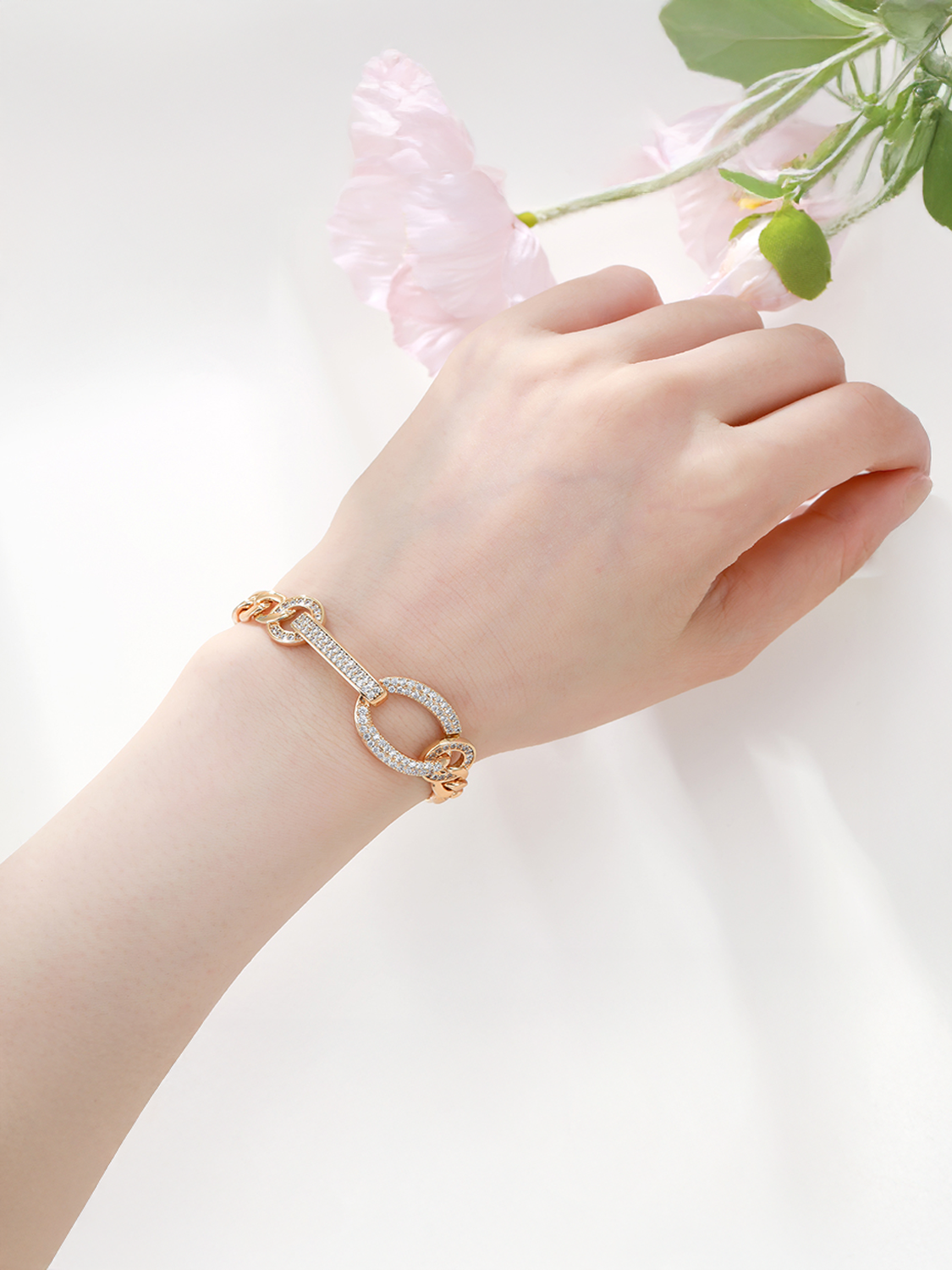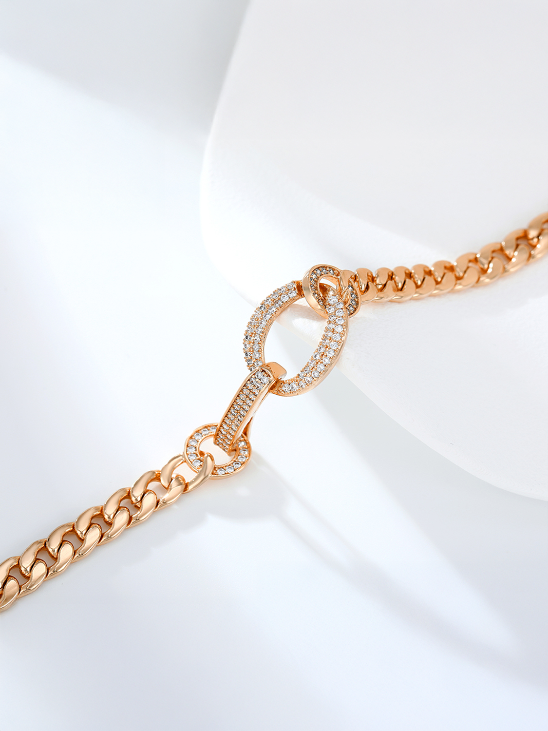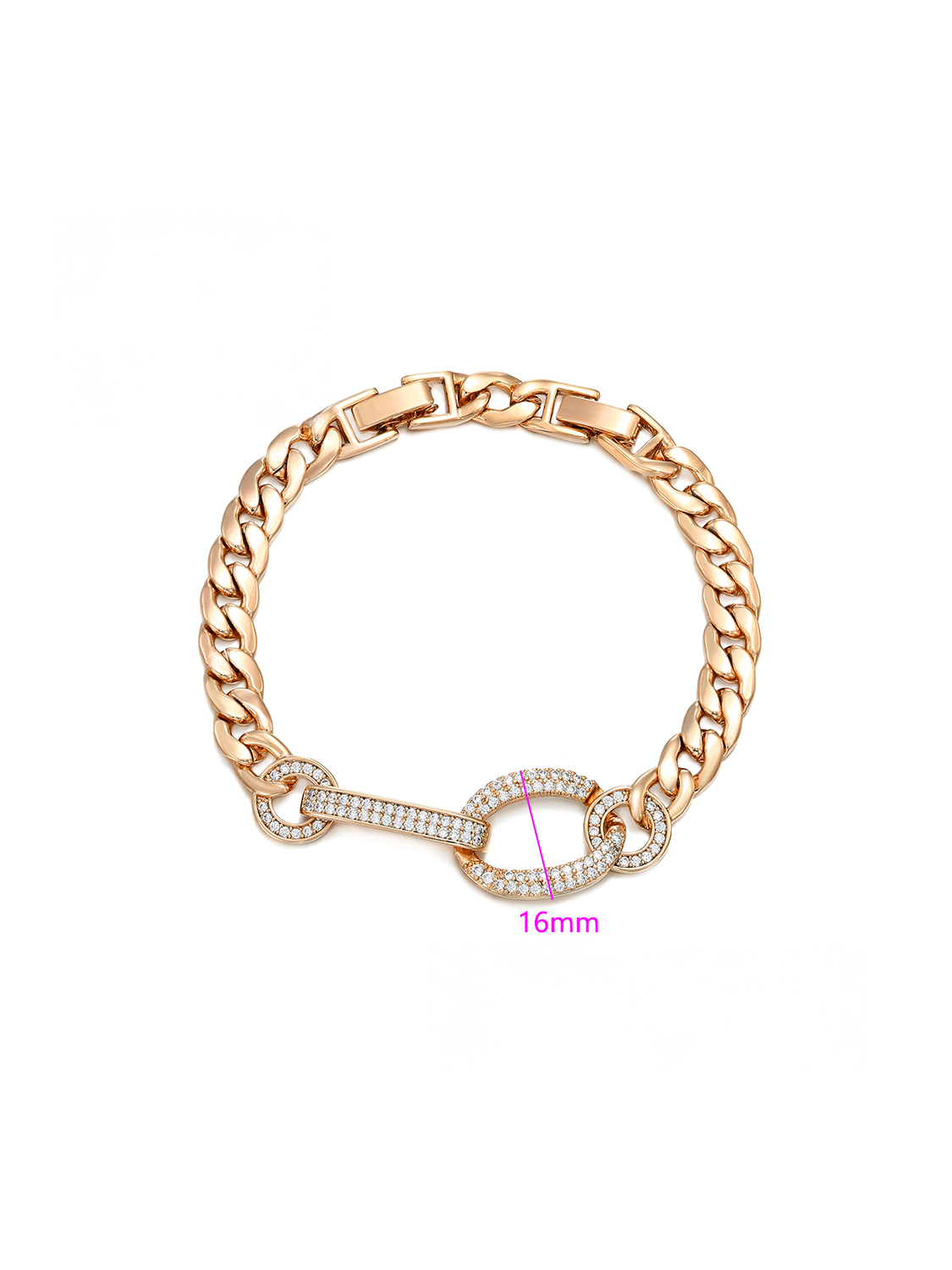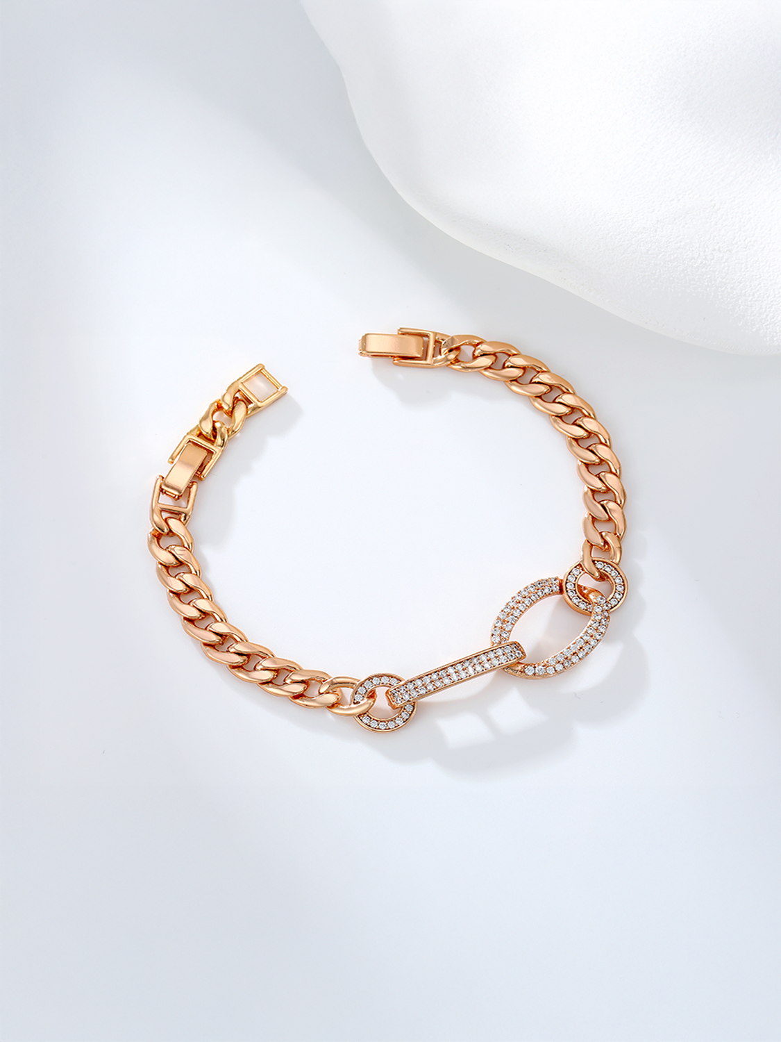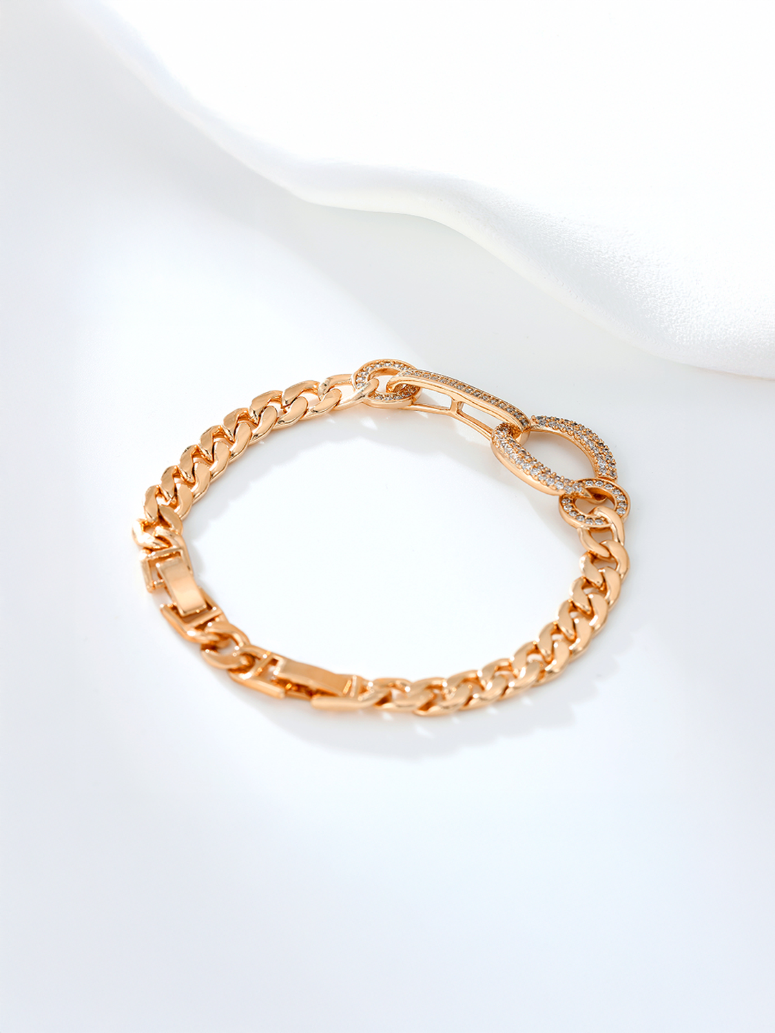 Το Royal Loop είναι ένα πολυτελές βραχιόλι με εντυπωσιακό σχέδιο αλυσίδας και λαμπερά ζιργκόν. Ο μοντέρνος κρίκος του στο κέντρο, διακοσμημένος με πέτρες ζιργκόν, προσθέτει λάμψη και κομψότητα, καθιστώντας τις καλύτερες γυναίκες που αγαπούν το εκλεπτυσμένο στυλ. Το επιχρυσωμένο φινίρισμα 18Κ σε συνδυασμό με την ανθεκτική κατασκευή από κράμα μετάλλου το καθιστά ιδανικό για κάθε περίσταση.