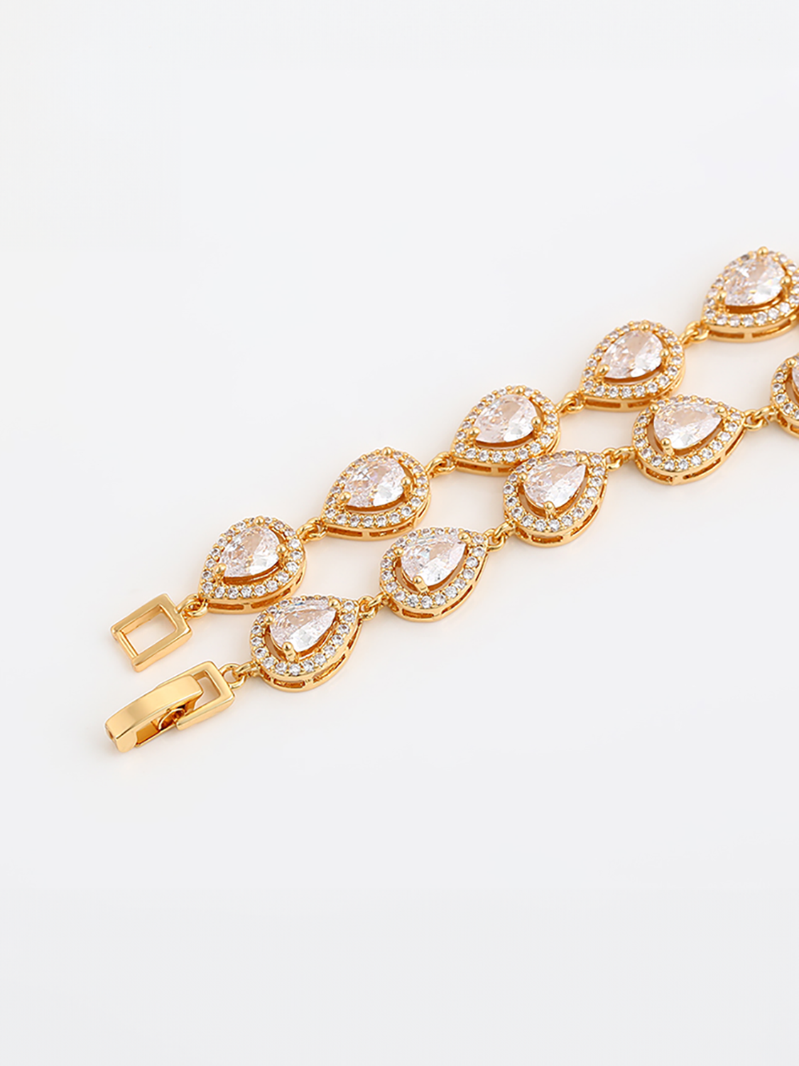 Με μέγεθος περίπου 180*9 mm (±2cm) και βάρος 12.11 g, το Teardrop Elegance Bracelet συνδυάζει την άνεση με την αισθητική τελειότητα. Είναι η επιλογή για γυναίκες που εκτιμούν εκλεπτυσμένα κοσμήματα και θέλουν να προσθέσουν μια πινελιά λάμψης σε κάθε τους εμφάνιση.