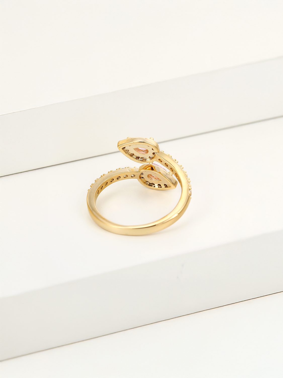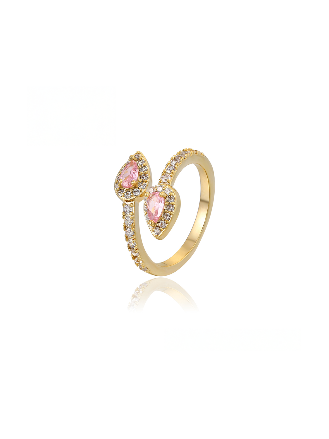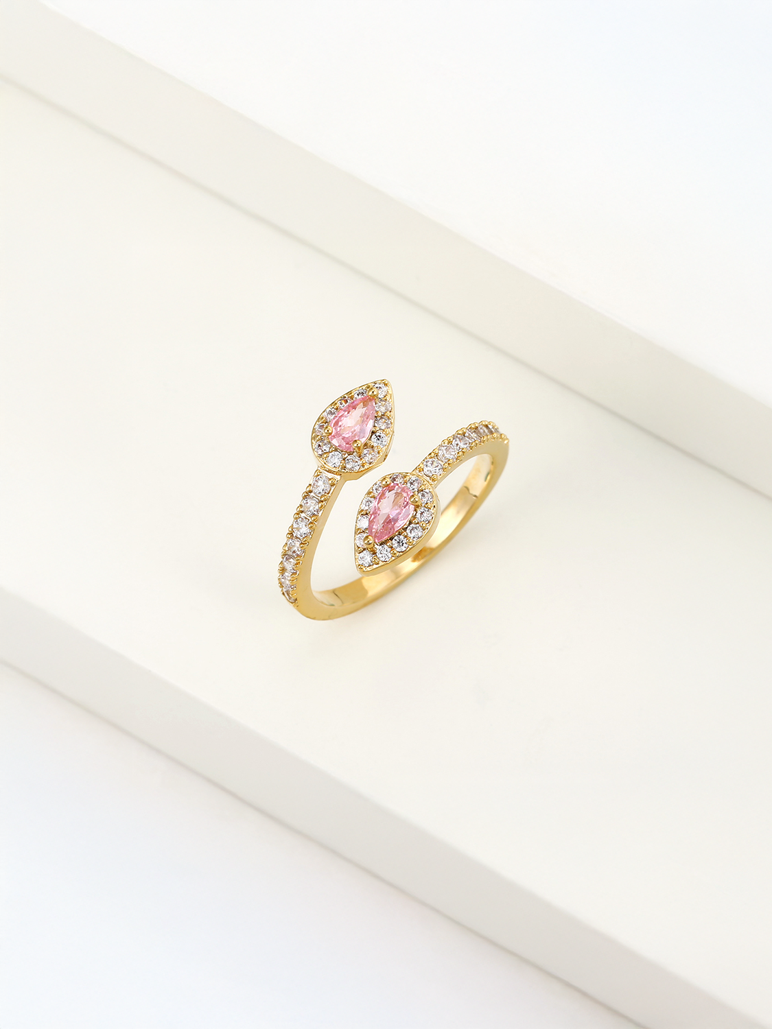 Το δαχτυλίδι Blossom Sparkle είναι ένα κομψό δαχτυλίδι που συνδυάζει τη διαχρονική γοητεία με μοντέρνες πινελιές. Κατασκευασμένο από οικολογικό χαλκό με χρώμα 14Κ χρυσού, διαθέτει δύο εντυπωσιακές συνθετικές πέτρες σε σχήμα δάκρυ, διακοσμημένες περιμετρικά με λαμπερά ζιργκόν. Το μοναδικό ανοιχτό σχέδιο του δαχτυλιδιού προσδίδει κομψότητα και πολυτέλεια, καθιστώντας το ιδανικό για καθημερινές ή επίσημες εμφανίσεις. Με συνολικό βάρος 2,51 γραμμαρίων, το δαχτυλίδι Blossom Sparkle υπόσχεται να γίνει το νέο αγαπημένο σας κόσμημα.