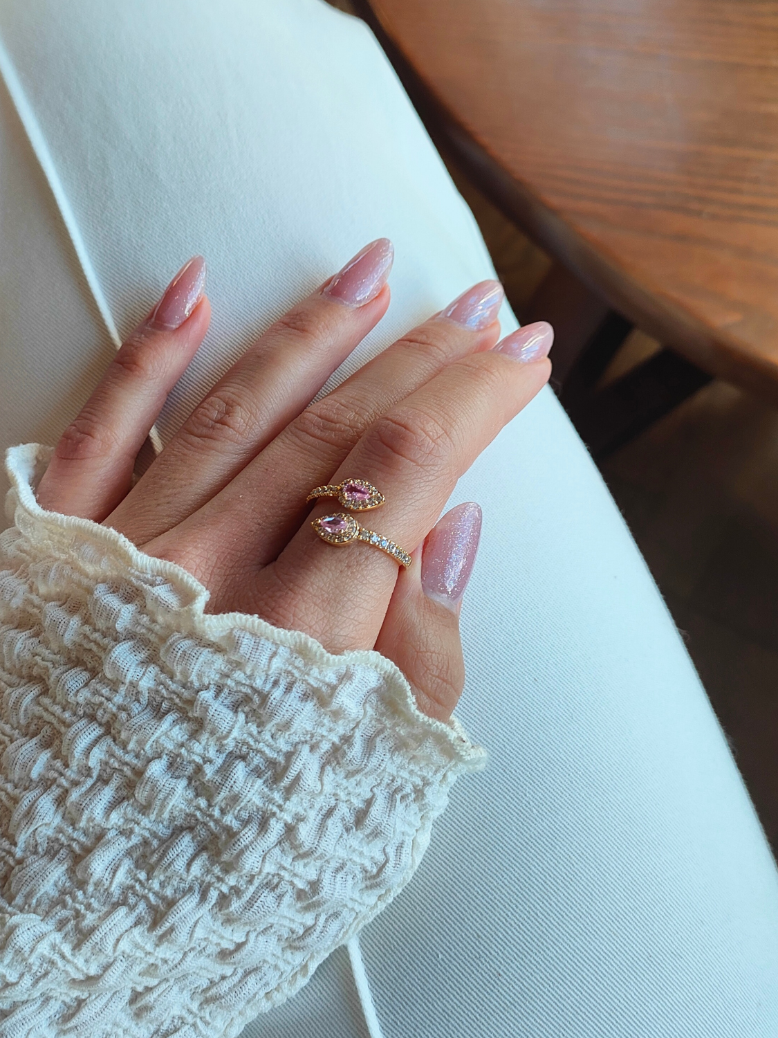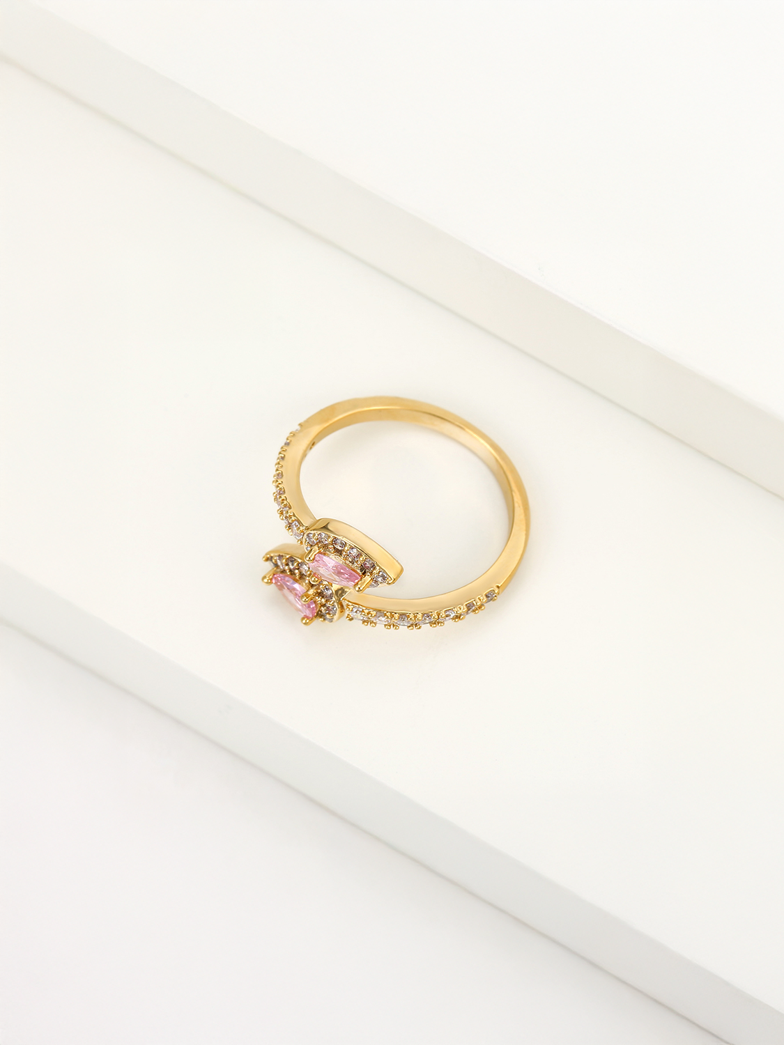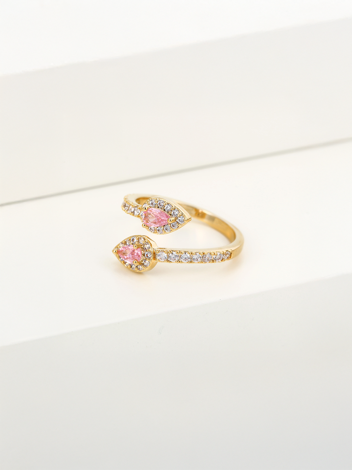 Το δαχτυλίδι Blossom Sparkle είναι ένα κομψό δαχτυλίδι που συνδυάζει τη διαχρονική γοητεία με μοντέρνες πινελιές. Κατασκευασμένο από οικολογικό χαλκό με χρώμα 14Κ χρυσού, διαθέτει δύο εντυπωσιακές συνθετικές πέτρες σε σχήμα δάκρυ, διακοσμημένες περιμετρικά με λαμπερά ζιργκόν. Το μοναδικό ανοιχτό σχέδιο του δαχτυλιδιού προσδίδει κομψότητα και πολυτέλεια, καθιστώντας το ιδανικό για καθημερινές ή επίσημες εμφανίσεις. Με συνολικό βάρος 2,51 γραμμαρίων, το δαχτυλίδι Blossom Sparkle υπόσχεται να γίνει το νέο αγαπημένο σας κόσμημα.