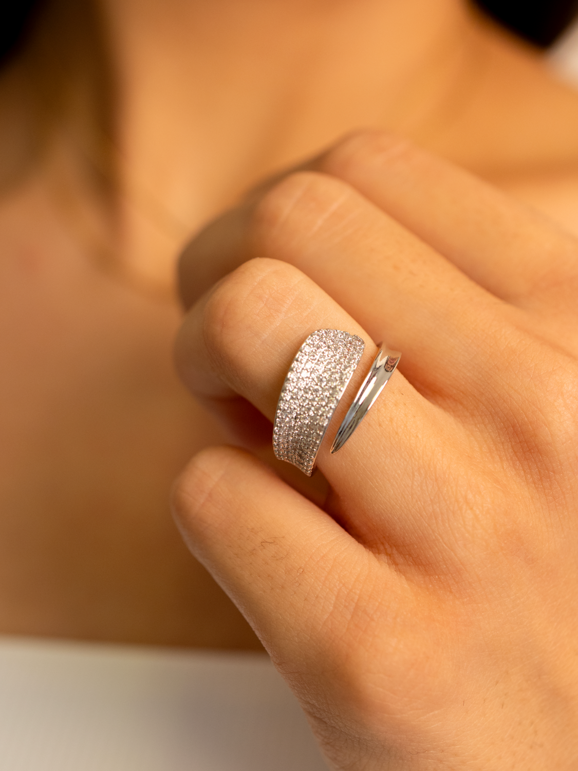 Το Δαχτυλίδι Elysian Wave είναι η τέλεια επιλογή για τη γυναίκα που θέλει να προσθέσει μια διακριτική αλλά εκθαμβωτική λάμψη στα στυλ της, με ένα κόσμημα που συνδυάζει την αρχοντική αισθητική με τη μοντέρνα πολυτέλεια.
