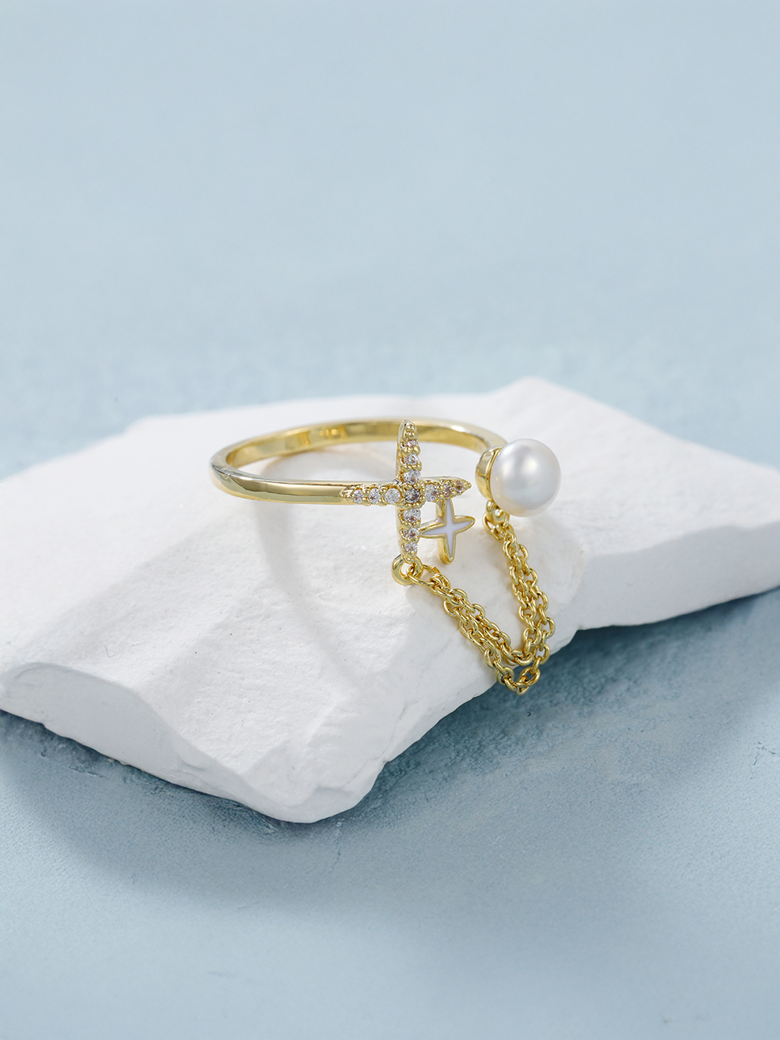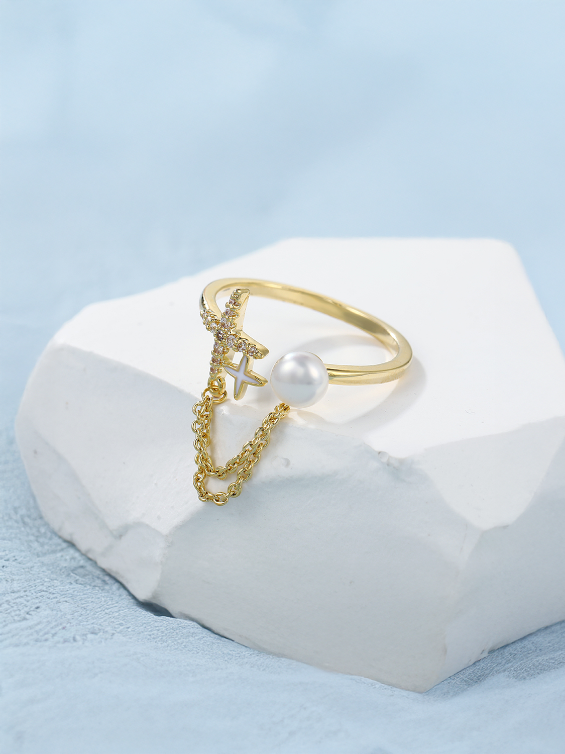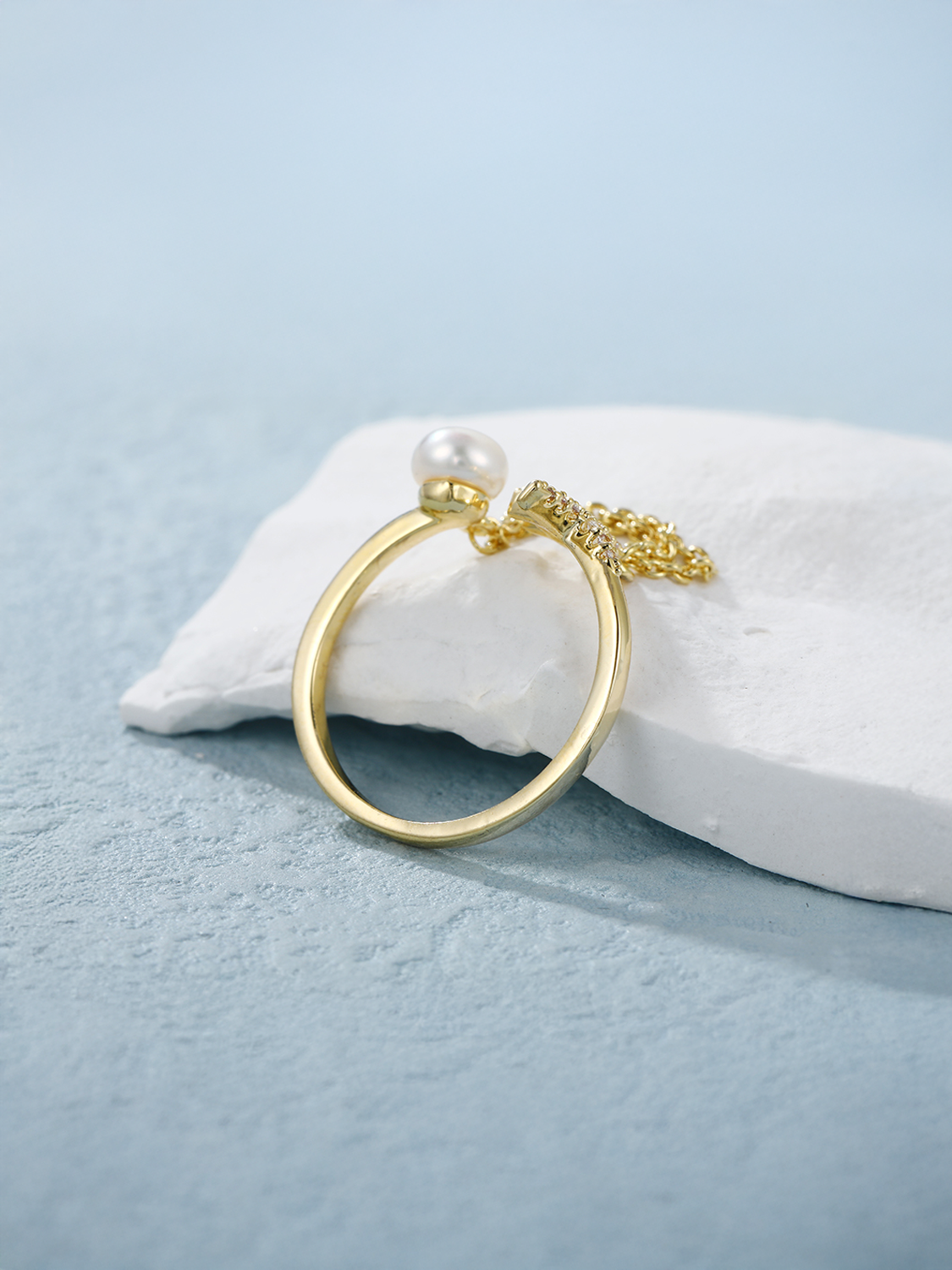 Το Faith & Pearl είναι ένα κομψό και μοντέρνο δαχτυλίδι με σταυρό, που συνδυάζει την πίστη με τη φινέτσα. Η λαμπερή επίστρωση 14Κ χρυσού χρώματος, οι διακριτικές λευκές πέτρες σε κάθε σταυρό και η κομψή πέρλα που συνδέεται με διακριτική χρυσή αλυσίδα, δημιουργεί ένα μοναδικό σχέδιο που εκπέμπει συμβολισμό και στιλ. Ένα ιδανικό κόσμημα για καθημερινή χρήση αλλά και για ιδιαίτερες περιστάσεις.