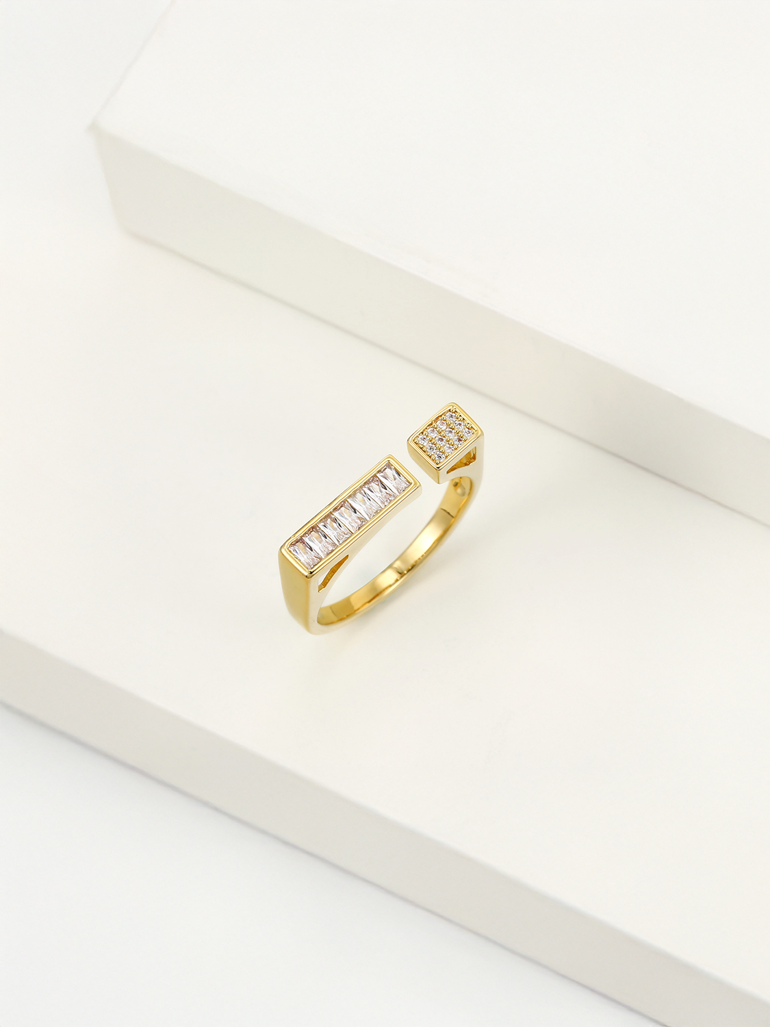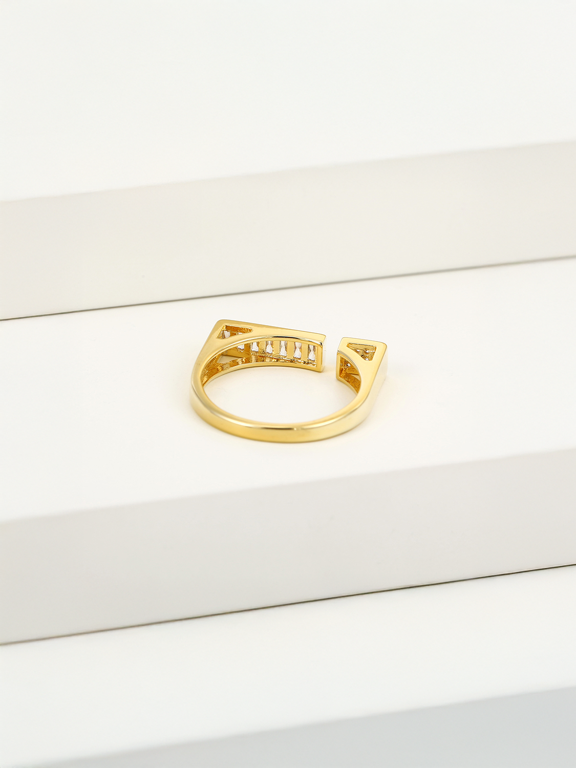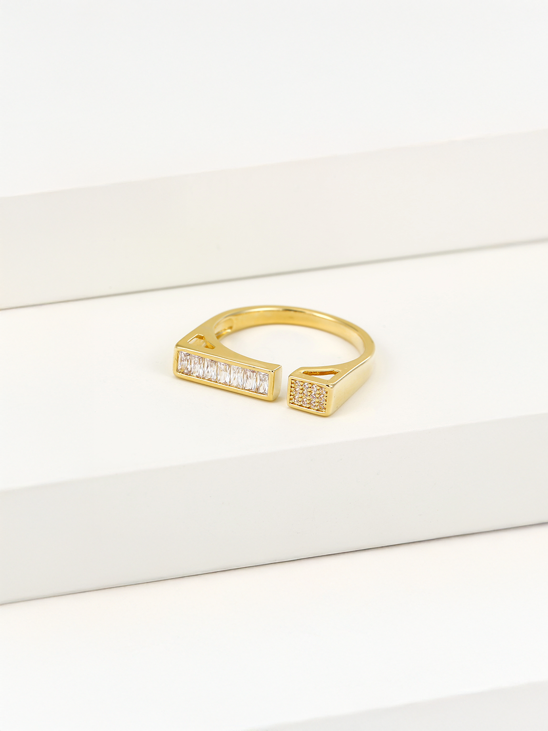 Το Luxe Geometry είναι ένα μοντέρνο και εκλεπτυσμένο δαχτυλίδι που αποπνέει διαχρονική κομψότητα. Κατασκευασμένο από οικολογικό χαλκό σε απόχρωση χρυσού 14Κ, διαθέτει γεωμετρικό σχεδιασμό που συνδυάζει λιτές γραμμές με τη λάμψη των συνθετικών ζιργκόν. Οι πέτρες, κομμένες με ακρίβεια, προσθέτουν μοναδική λάμψη, ενώ το ανοιχτό σχέδιο το καθιστά ιδανικό για κάθε δάχτυλο και περίσταση. Ένα σύγχρονο κόσμο που αναδεικνύει τη minimal πολυτέλεια.