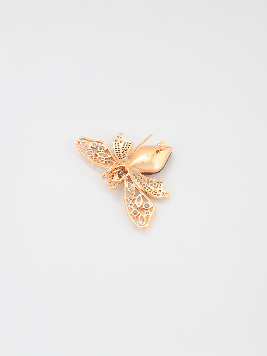 Η καρφίτσα Royal Bee είναι ένα εντυπωσιακό και εκλεπτυσμένο κόσμημα σε σχήμα μέλισσας. Διακοσμημένη με λαμπερούς κρυστάλλους και επιχρυσωμένο σώμα 18Κ χρυσό χρώμα, αυτή η καρφίτσα προσδίδει μοναδική λάμψη και πολυτέλεια σε κάθε εμφάνιση. Ιδανική για να αναδείξει κάθε σακάκι, φόρεμα ή φουλάρι, προσφέροντας μια νότα κομψότητας και φινέτσας.