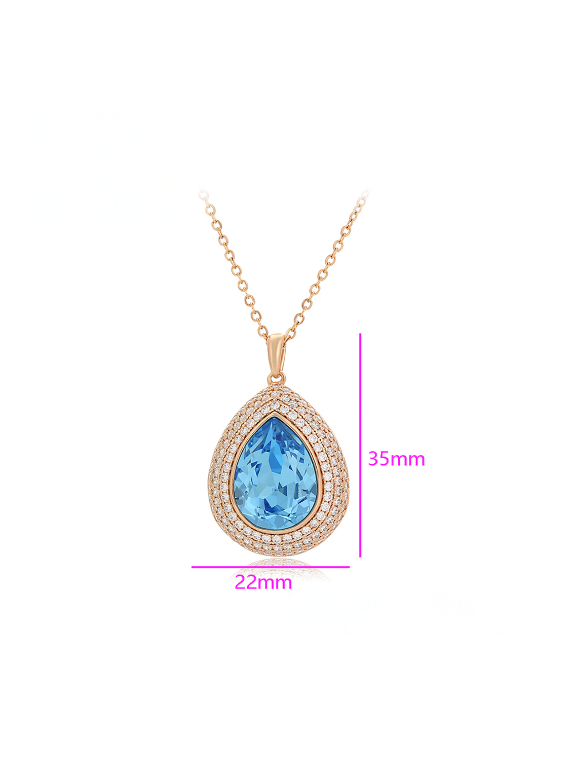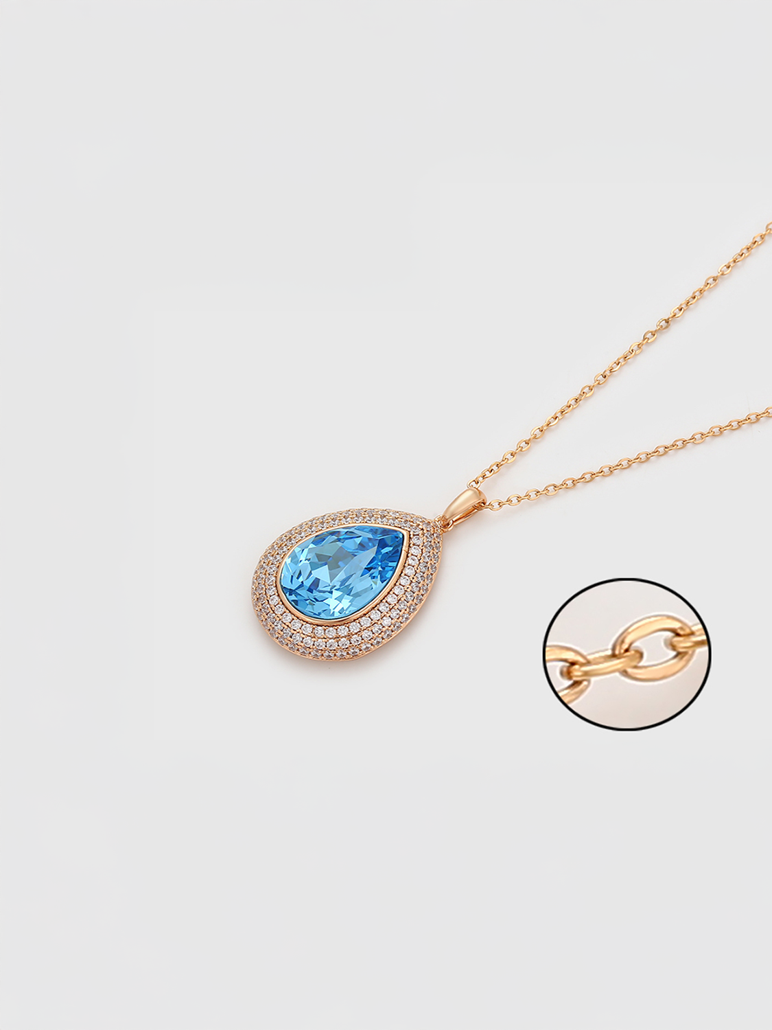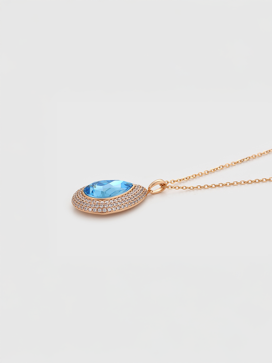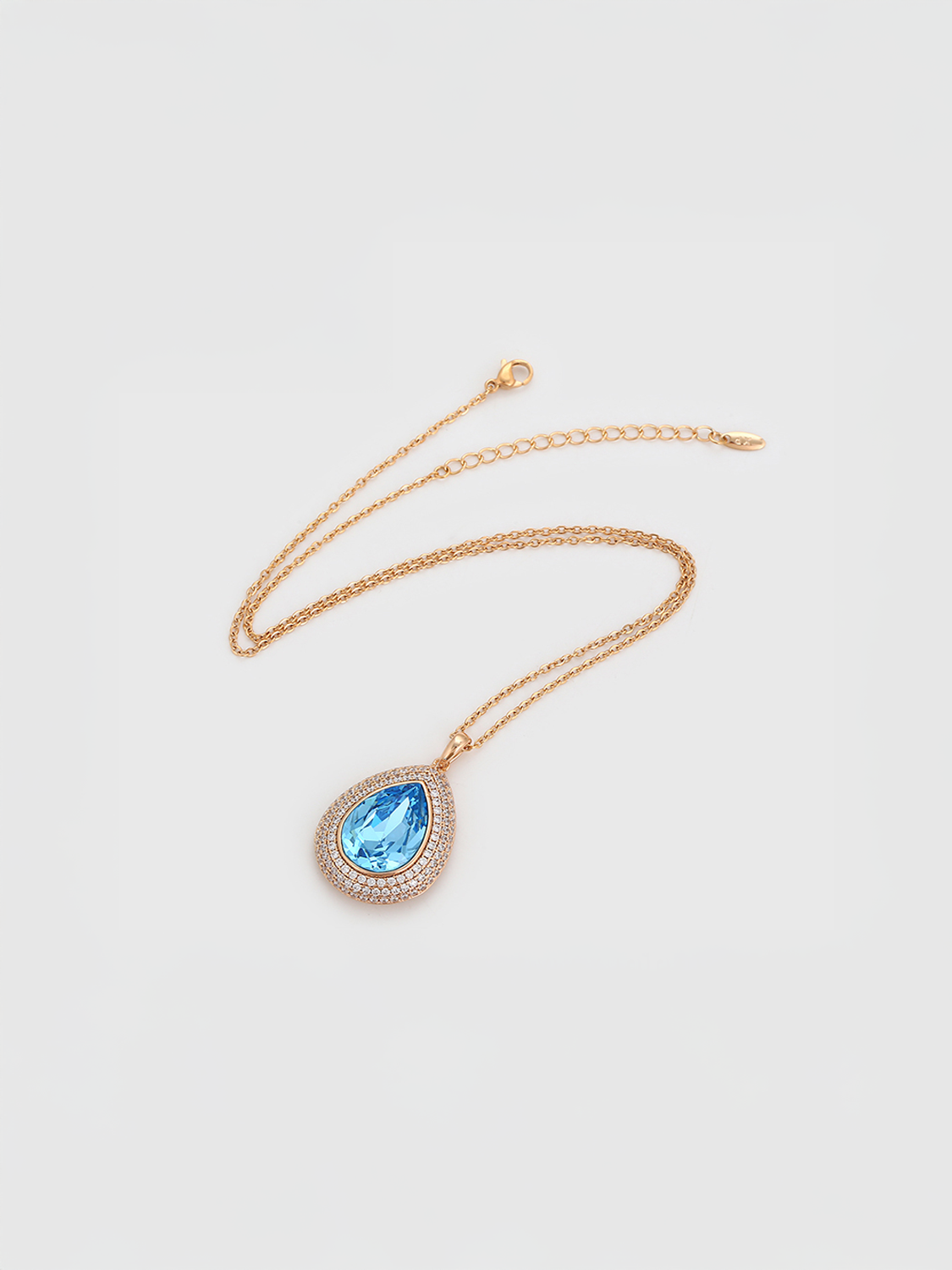Το Blue Aurora είναι ένα εντυπωσιακό μενταγιόν που μαγνητίζει το βλέμμα με την εκθαμβωτική μπλε πέτρα σε σχήμα δάκρυ, η οποία περιβάλλεται από δύο σειρές λαμπερών μικρών κρυστάλλων. Η αριστοκρατική του αύρα ενισχύεται από την επιμετάλλωση με χρυσό χρώμα 18Κ και την εκλεπτυσμένη αλυσίδα, δημιουργώντας ένα κόσμημα που συνδυάζει διαχρονική κομψότητα και μοντέρνα λάμψη. Ιδανικό για ιδιαίτερες περιστάσεις ή ως ένα πολυτελές δώρο.