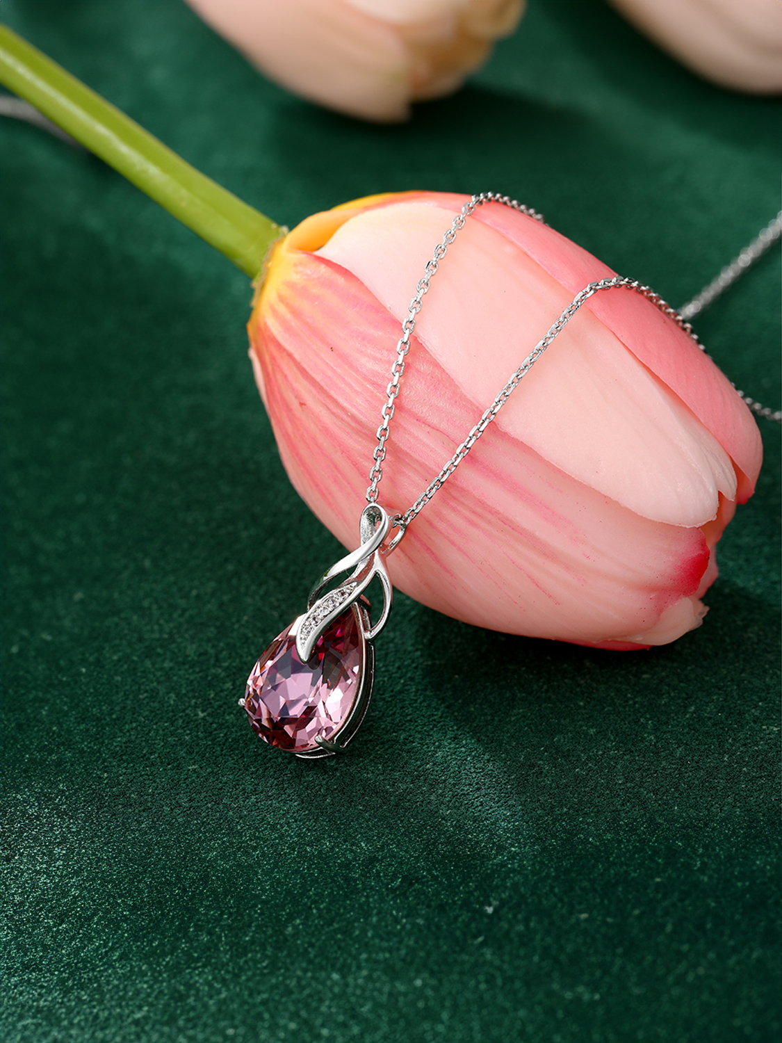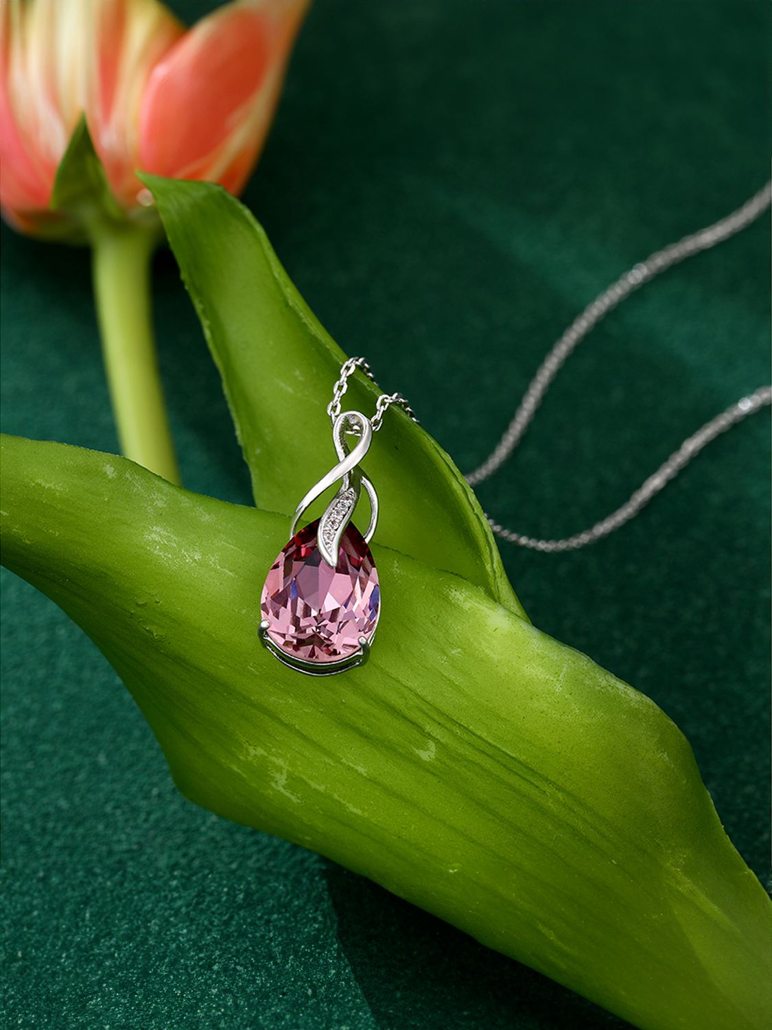 Κεντρική Πέτρα: Ροζ Κρύσταλλο σε σχήμα σταγόνας (14*10 mm)