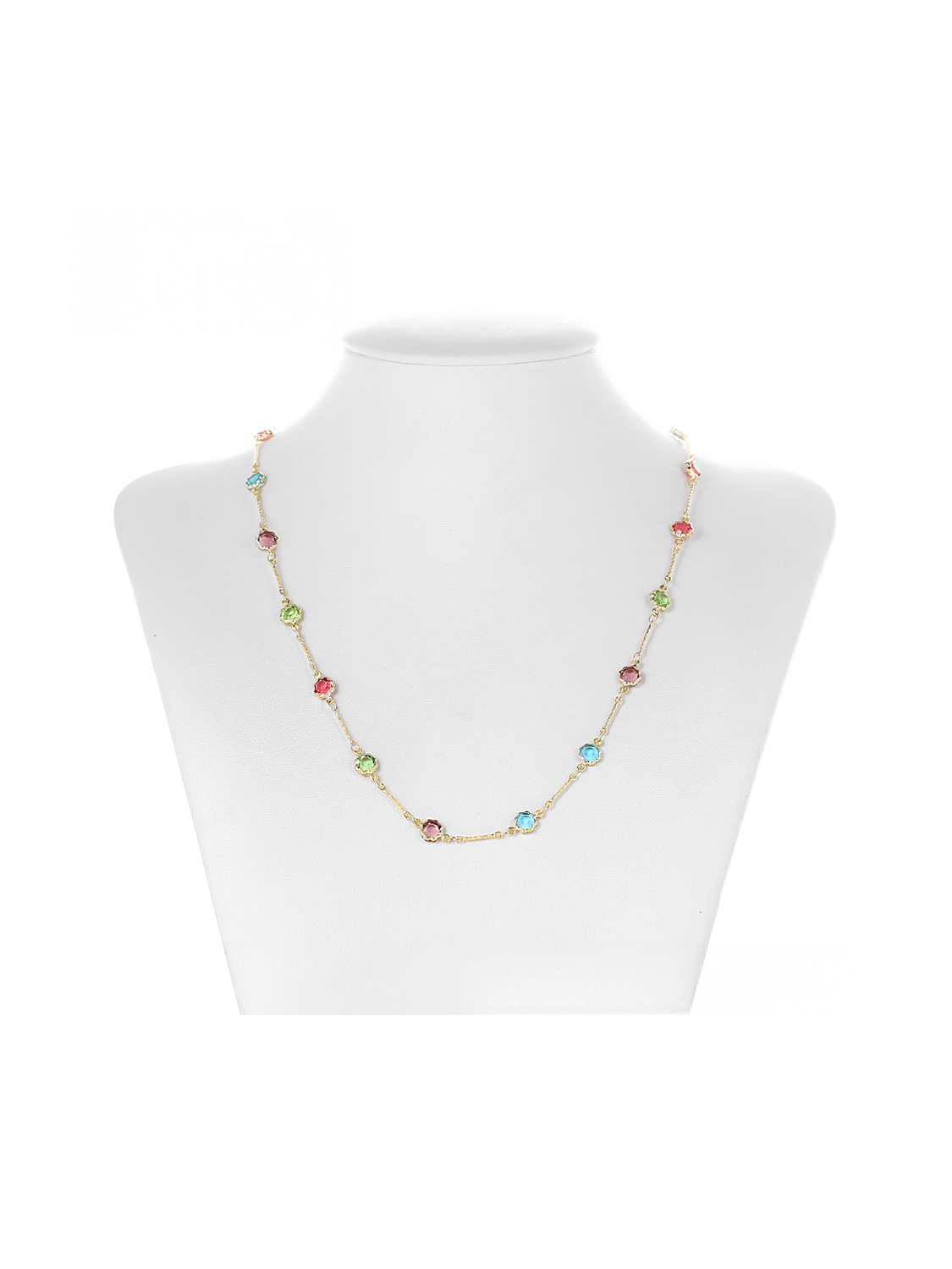 Το Color Gem Harmony είναι ένα εκλεπτυσμένο μακρύ γυναικείο κολιέ, ιδανικό για layering ή εντυπωσιακή σόλο εμφάνιση. Κατασκευασμένο από οικολογικό χαλκό και επιχρυσωμένο με 14K χρυσό χρώμα, διαθέτει πολύχρωμες συνθετικές πέτρες ζιργκόν σε σχήμα λουλουδιού που χαρίζουν ζωντάνια και κομψότητα. Με μήκος 91.5cm και πέτρες 7mm, αυτό το κολιέ αποπνέει φρεσκάδα και στυλ για καθημερινή ή βραδινή χρήση.