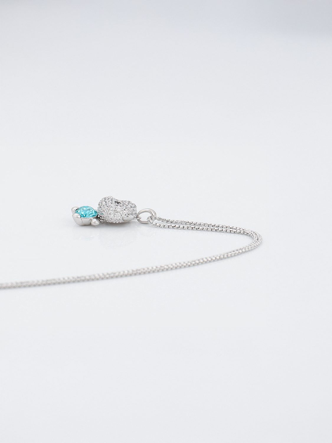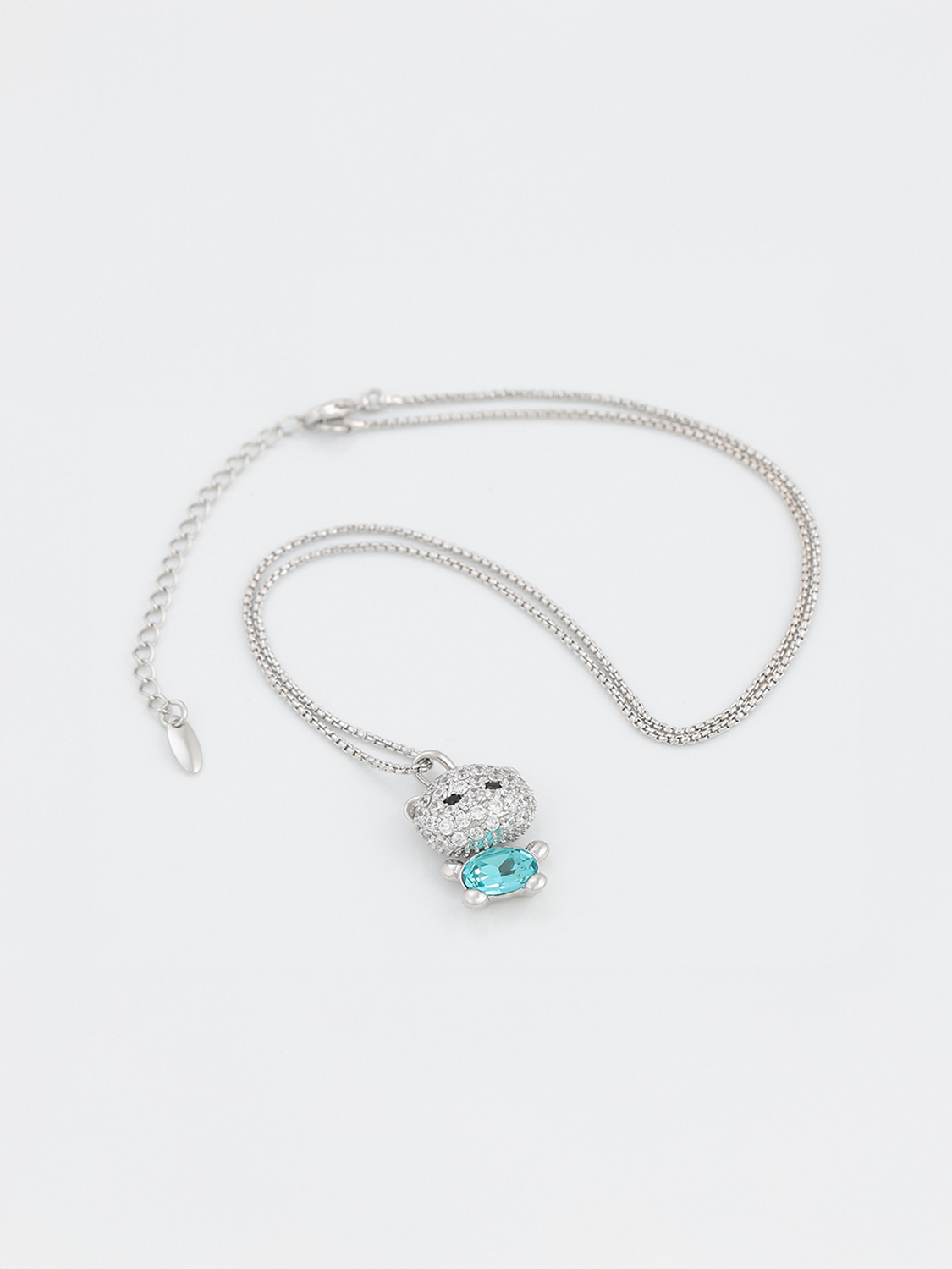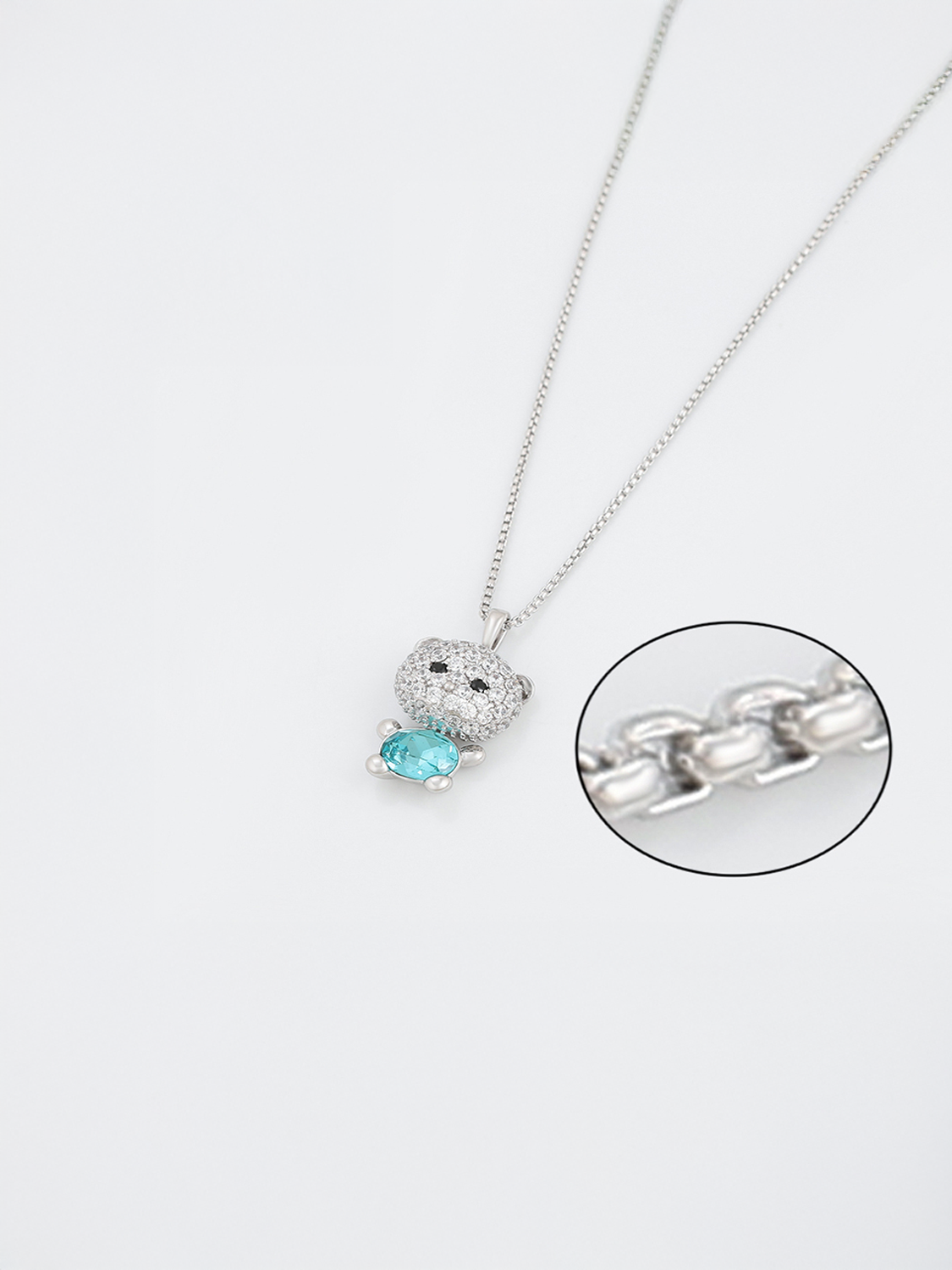 Το Crystal Bear είναι ένα χαριτωμένο παιδικό κολιέ με διακοσμητικό αρκουδάκι, κατασκευασμένο από φιλικό προς το περιβάλλον κράμα μετάλλου και επιπλατινωμένο για αστραφτερό φινίρισμα. Το αρκουδάκι είναι διακοσμημένο με λευκά και μαύρα ζιρκόνια και διαθέτει μία μεγάλη μπλε κρυσταλλίνη πέτρα στο σώμα του. Ιδανικό για κορίτσια που λατρεύουν τις παιχνιδιάρικες λεπτομέρειες και τα λαμπερά κοσμήματα.