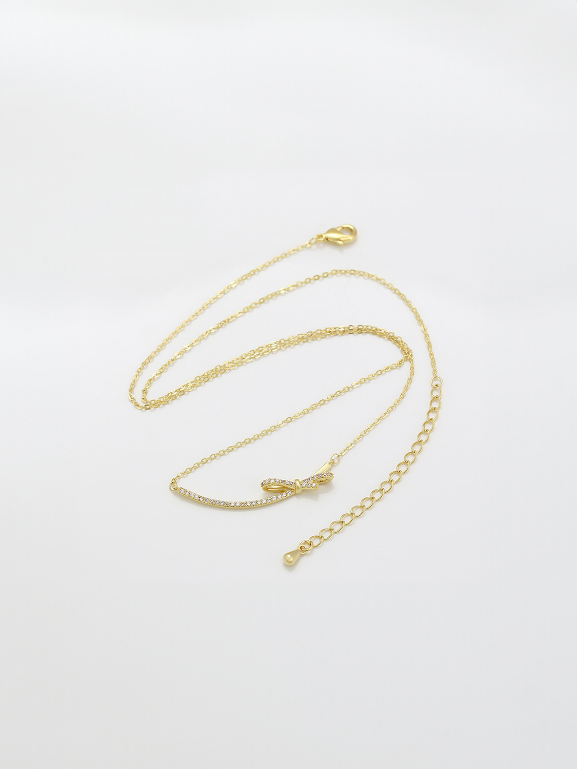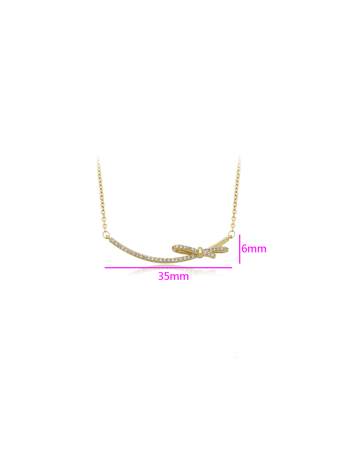 Το κολιέ Elegant Bow Touch αποπνέει διαχρονική κομψότητα με μια πινελιά παιχνίδι. Κατασκευασμένο από οικολογικό χαλκό με επίστρωση 14K χρυσού, αυτό το κολιέ διαθέτει ένα λεπτό σχέδιο φιόγκου, διακοσμημένο με λαμπερούς συνθετικούς λίθους CZ. Το μήκος της αλυσίδας των 440 mm, με επιπλέον προέκταση 50 mm, επιτρέπει τέλεια εφαρμογή για κάθε περίσταση. Ελαφρύ και άνετο, αυτό το κολιέ είναι η επιλογή για να αναδείξετε την εμφάνισή σας.