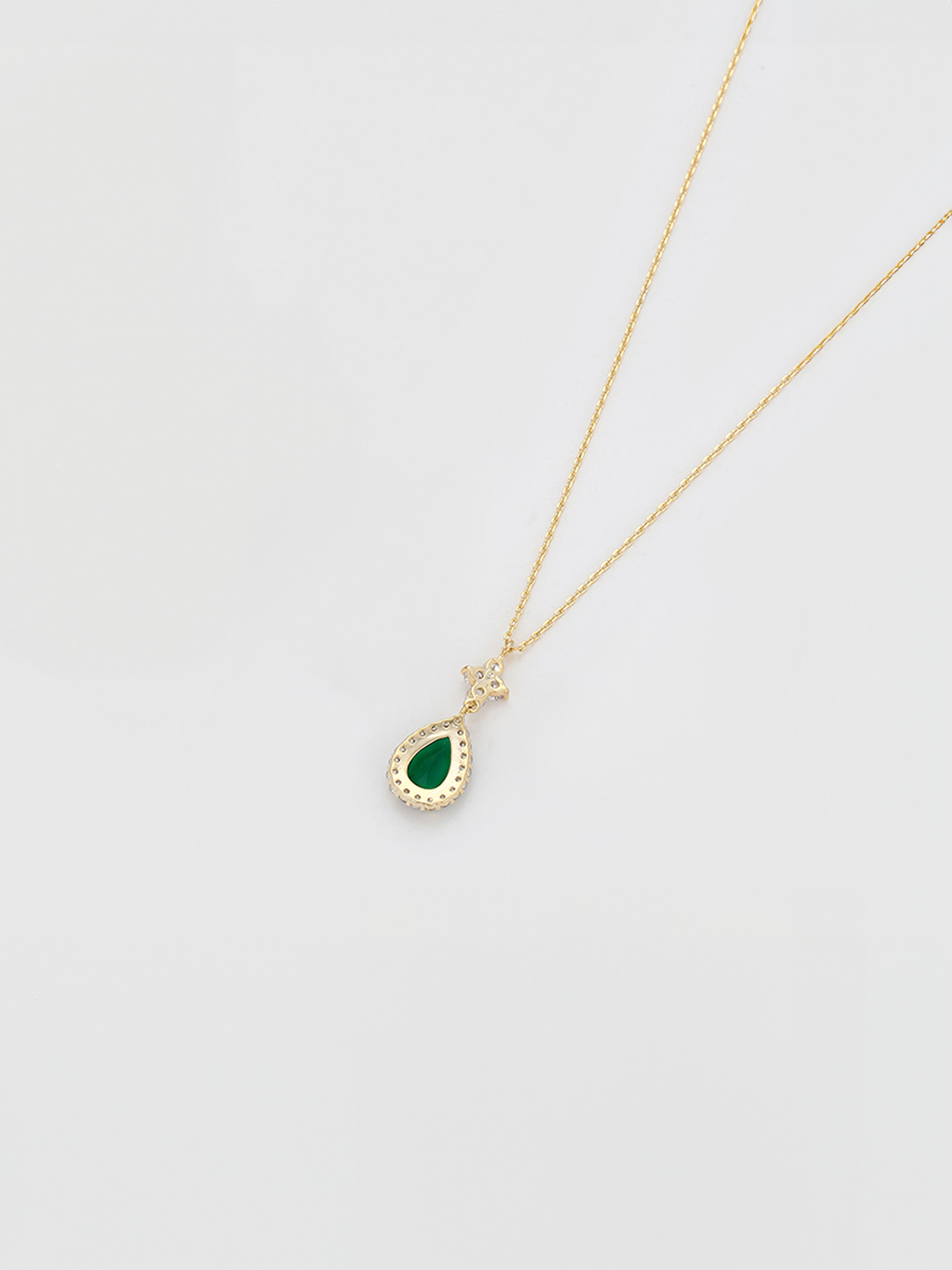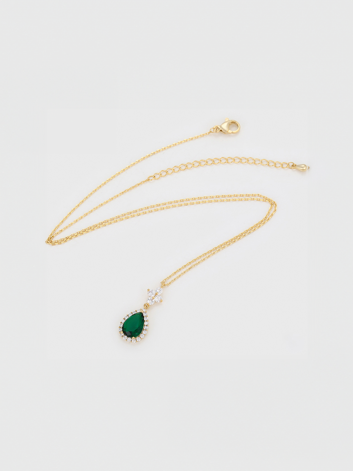 Το Κολιέ Emerald Glimmer αποπνέει κλασική κομψότητα με μια μοντέρνα πινελιά, ιδανικές για γυναίκες που θέλουν να ξεχωρίσουν με διακριτικά στυλ. Κατασκευασμένο από οικολογικό χαλκό με απόχρωση 14Κ χρυσού, αυτό το υπέροχο κολιέ διαθέτει ένα εντυπωσιακό πράσινο κρύλλο σε σχήμα δάκρυ, διαστάσεων 9x7 mm, που περιβάλλεται από λαμπερά μικρά κρύσταλλα που αιχμαλωτίζουν το φως, προσφέροντας αίσθηση πολυτέλειας. Είναι ιδανικό για επίσημες εμφανίσεις, αλλά και για να προσθέσετε μια λαμπερή πινελιά σε καθημερινές εμφανίσεις.