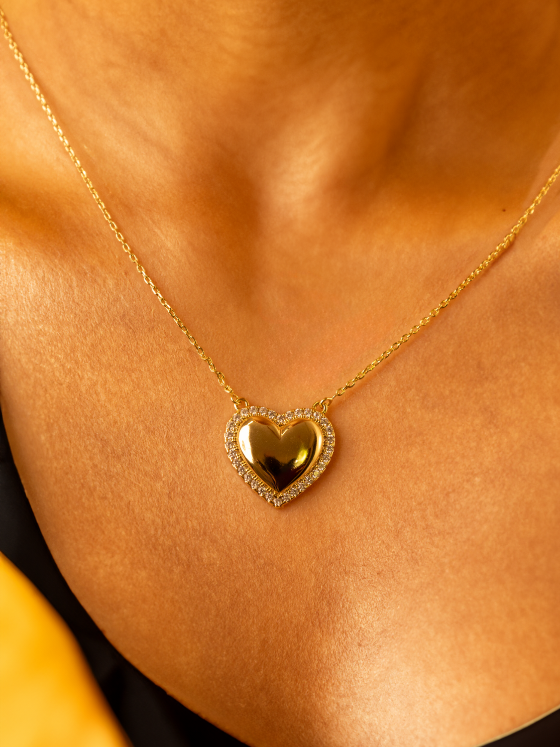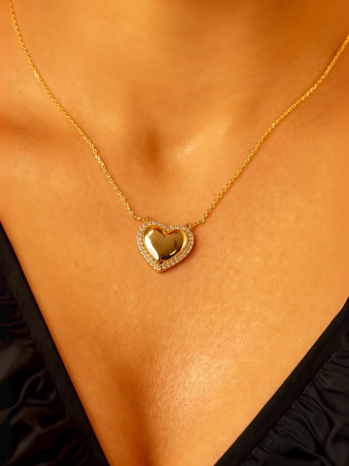 Αναδείξτε την αιώνια αγάπη και την κομψότητα σας με το κολιέ "Eternal Heartbeat". Το κολιέ διαθέτει μια λαμπερή καρδιά, διακοσμημένη με μικρές, συνθετικές πέτρες ζιργκόν (CZ), που προσδίδουν μια εκθαμβωτική λάμψη. Το κόσμημα αυτό είναι κατασκευασμένο από οικολογικό χαλκό, επιχρυσωμένο με χρώμα 14Κ χρυσού, κάνοντάς το ιδανικό για κάθε περίσταση.