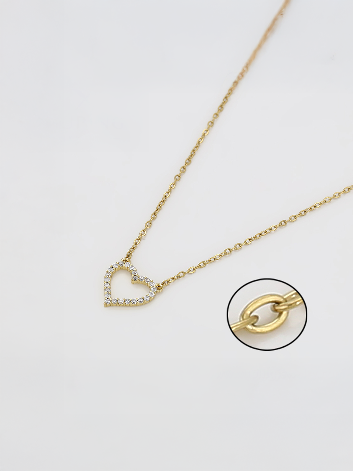 Το Golden Heart Glow είναι ένα κομψό γυναικείο κολιέ με διαχρονικό σχέδιο καρδιάς, στολισμένο με λαμπερά λευκά ζιρκόνια που χαρίζουν μοναδική λάμψη. Το μενταγιόν δένει με αλυσίδα σε απόχρωση χρυσού 14Κ, προσδίδοντας μια ρομαντική αλλά και πολυτελή πινελιά στο look σας. Ιδανικό για καθημερινές αλλά και ιδιαίτερες εμφανίσεις.