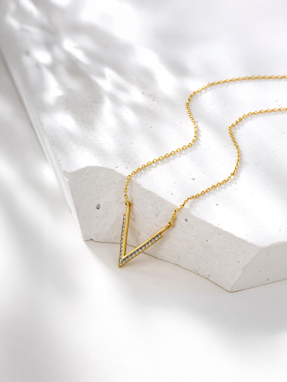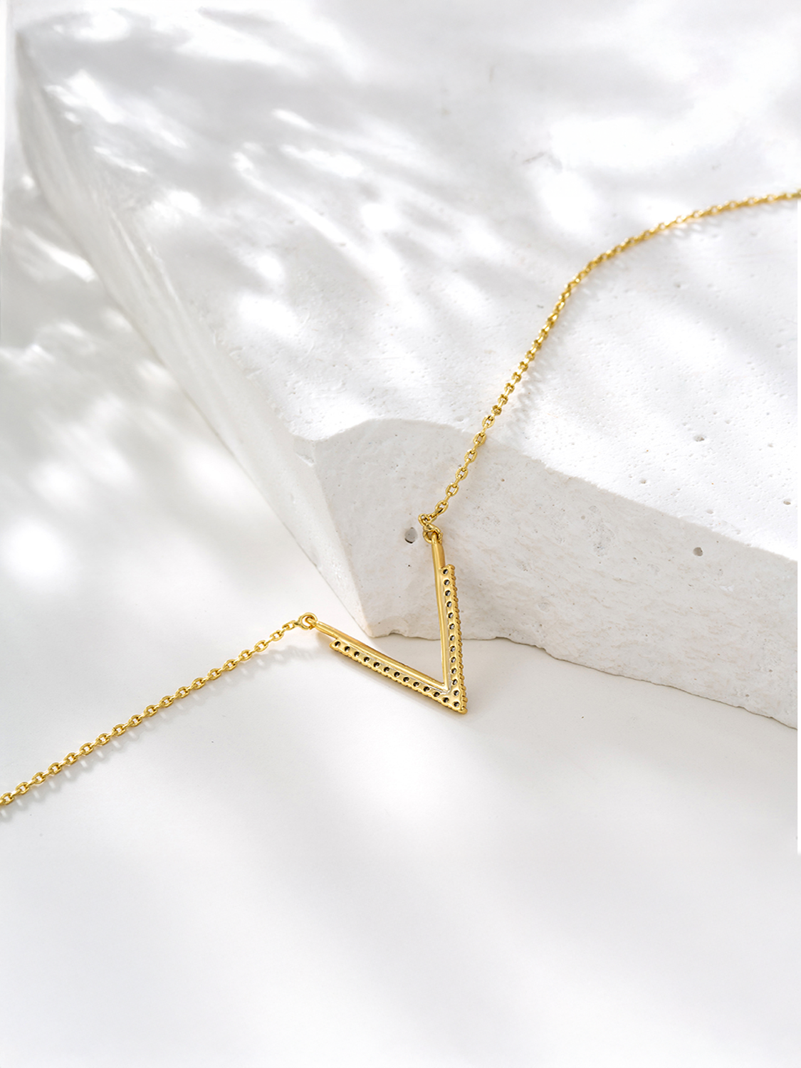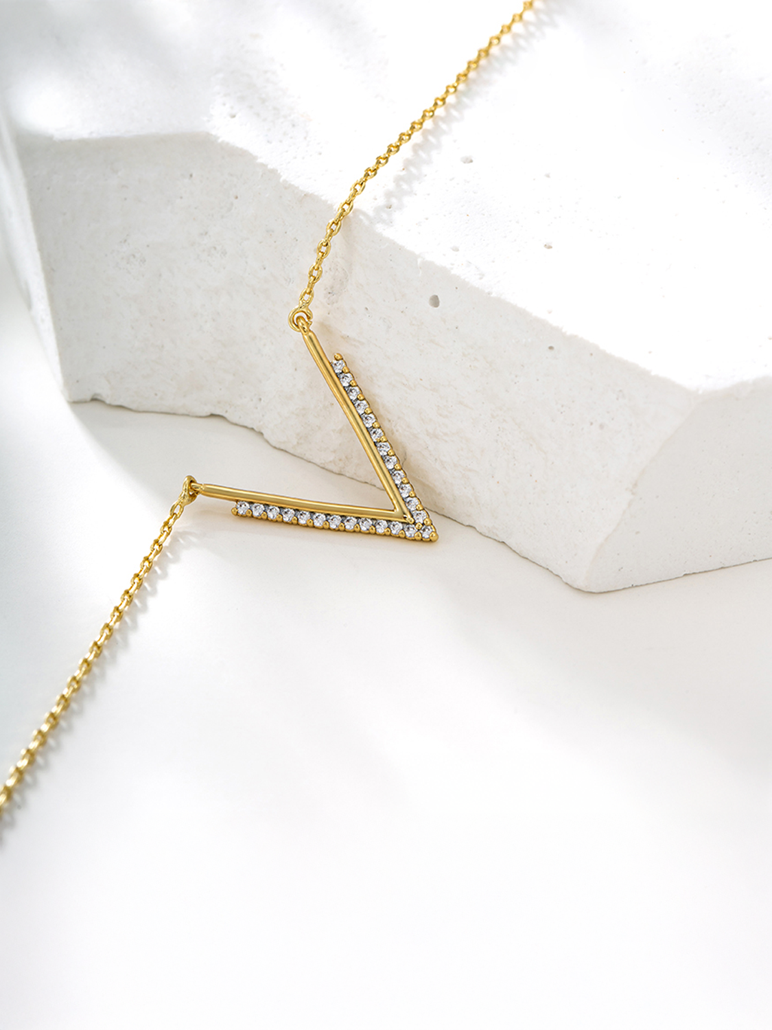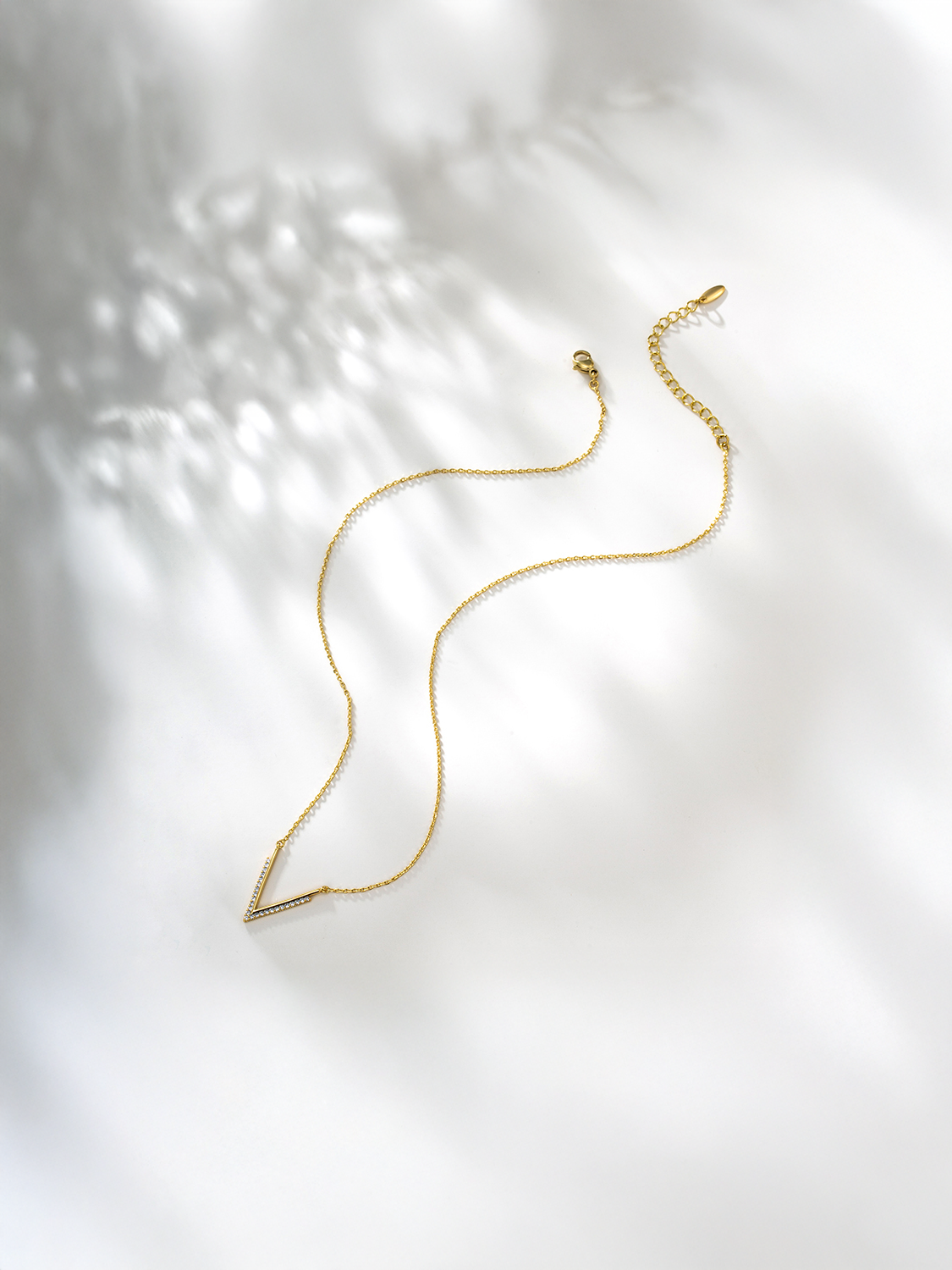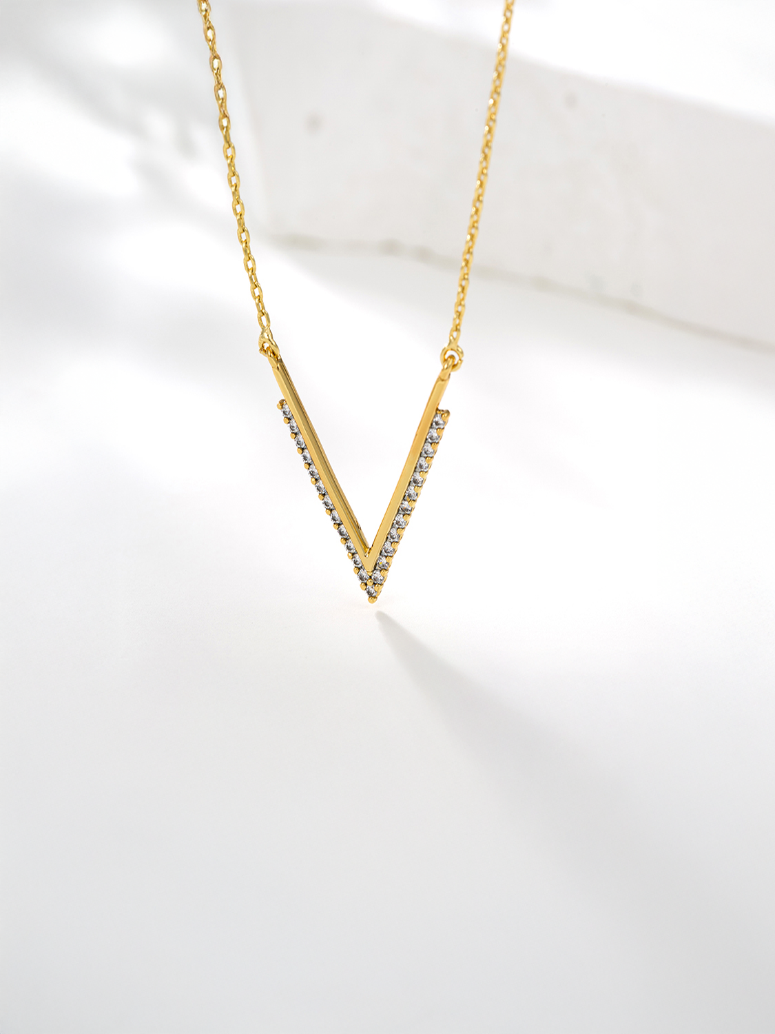 Το Golden V Charm είναι ένα κομψό και διακριτικό κολιέ που δείχνει τη θηλυκότητα και την απλότητα. Κατασκευασμένο από οικολογικό χαλκό σε απόχρωση14Κ χρυσού και διακοσμημένο με λαμπερά συνθετικά ζιργκόν, αυτό το κόσμημα προσφέρει μία διαχρονική εμφάνιση που μπορεί να συνδυαστεί με διαφορετικά στυλ. Το λεπτό του σχέδιο το καθιστά ιδανικό τόσο για καθημερινές εμφανίσεις όσο και για ειδικές περιστάσεις.