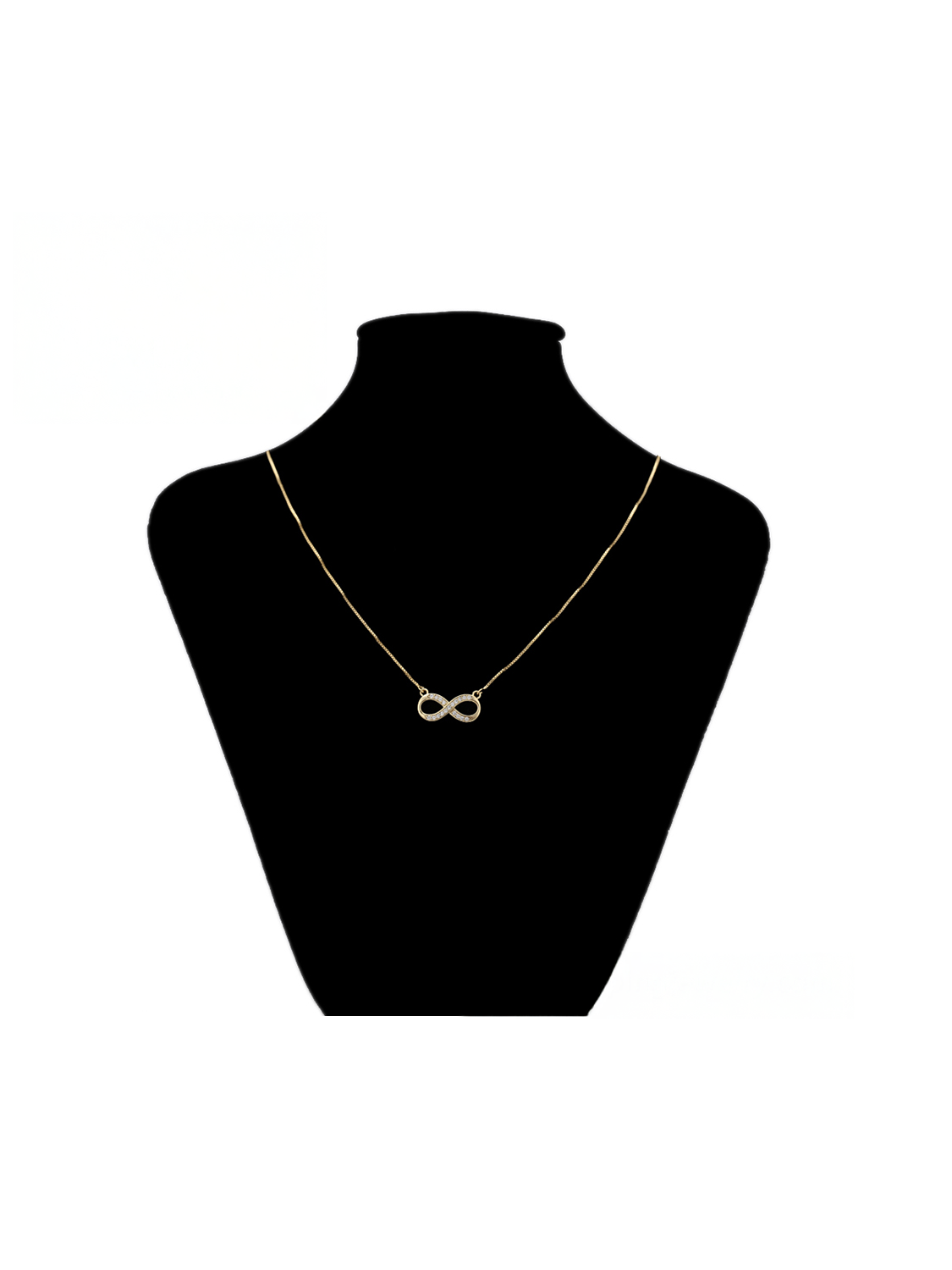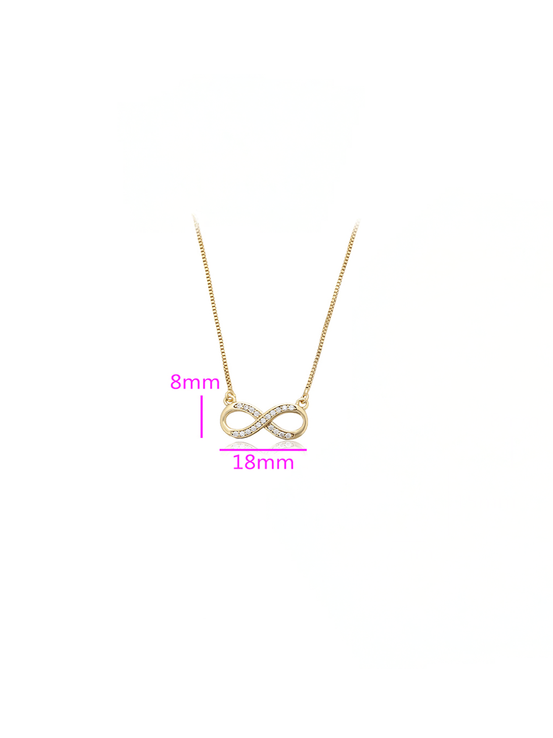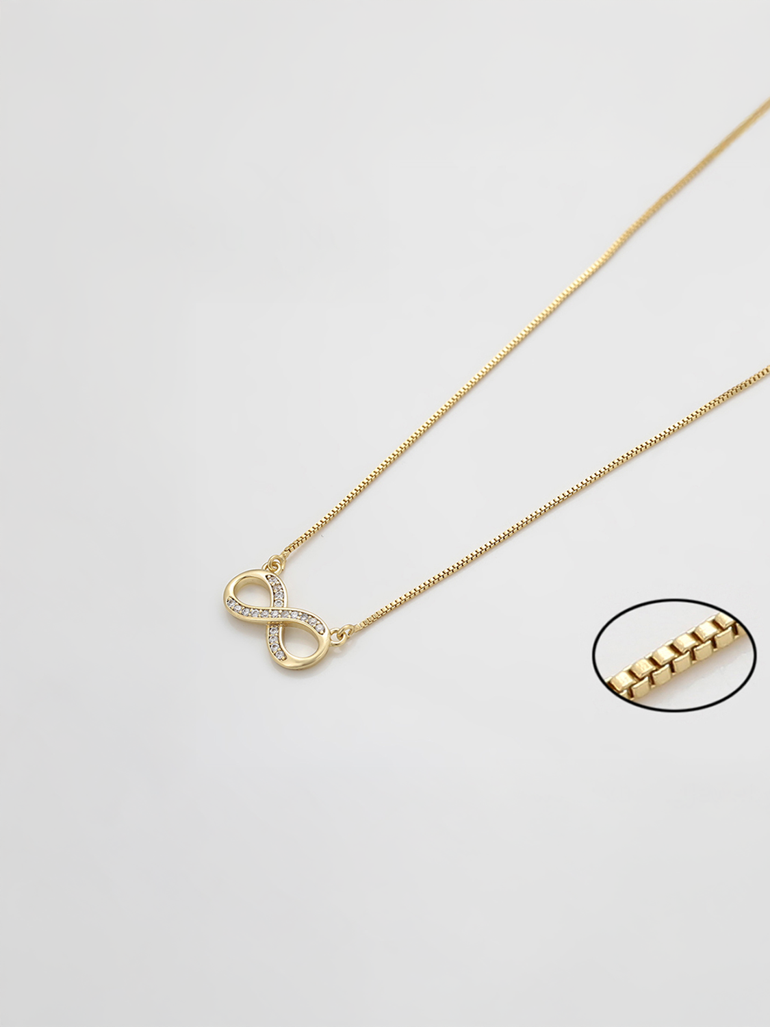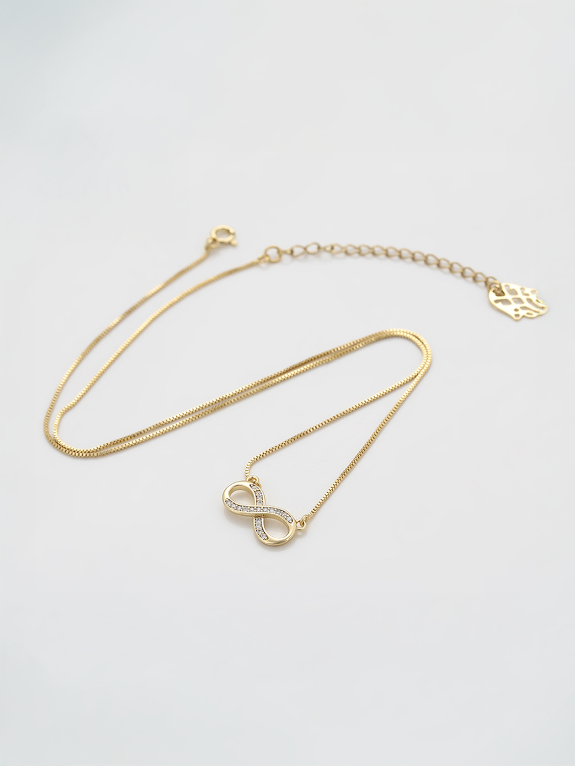 Το Infinity Embrace είναι ένα κομψό χρυσό κολιέ με το σύμβολο του απείρου διακοσμημένο με λαμπερά ζιρκόν. Ένα διακριτικό αλλά εκφραστικό κόσμημα που αποπνέει διαχρονικότητα και συναισθηματική σύνδεση. Ιδανικό για καθημερινή χρήση ή για να το προσφέρεις ως δώρο αγάπης.