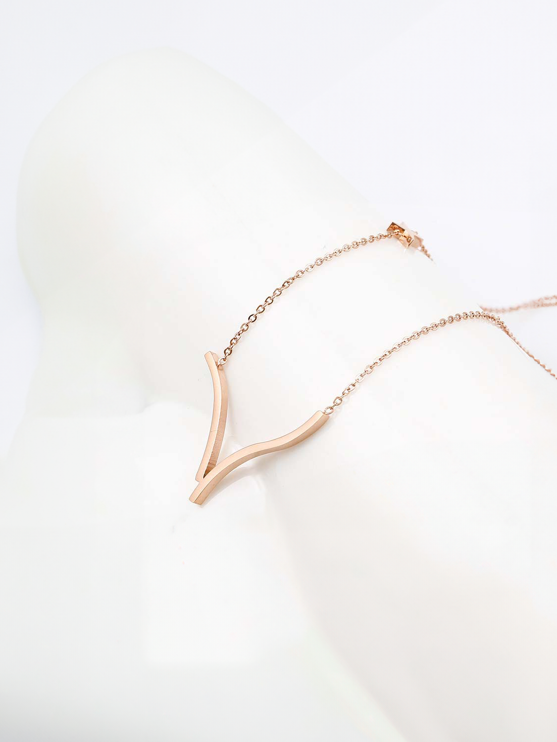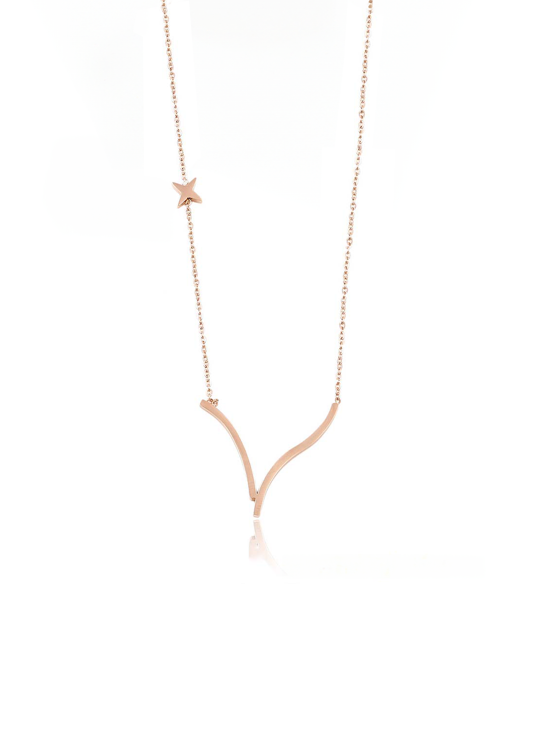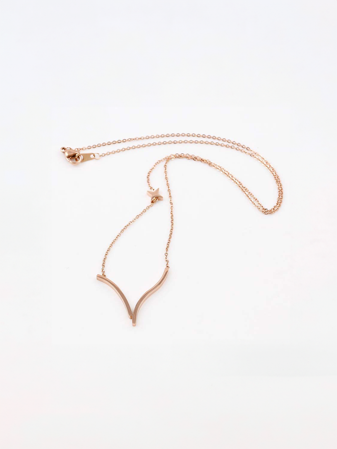 Αναδείξτε τη μοναδική σας κομψότητα με το κολιέ Modern V". Το μοντέρνο σχήμα V και το ροζ χρυσό χρώμα του κάνουν αυτό το κολιέ ιδανικό για κάθε περίσταση.